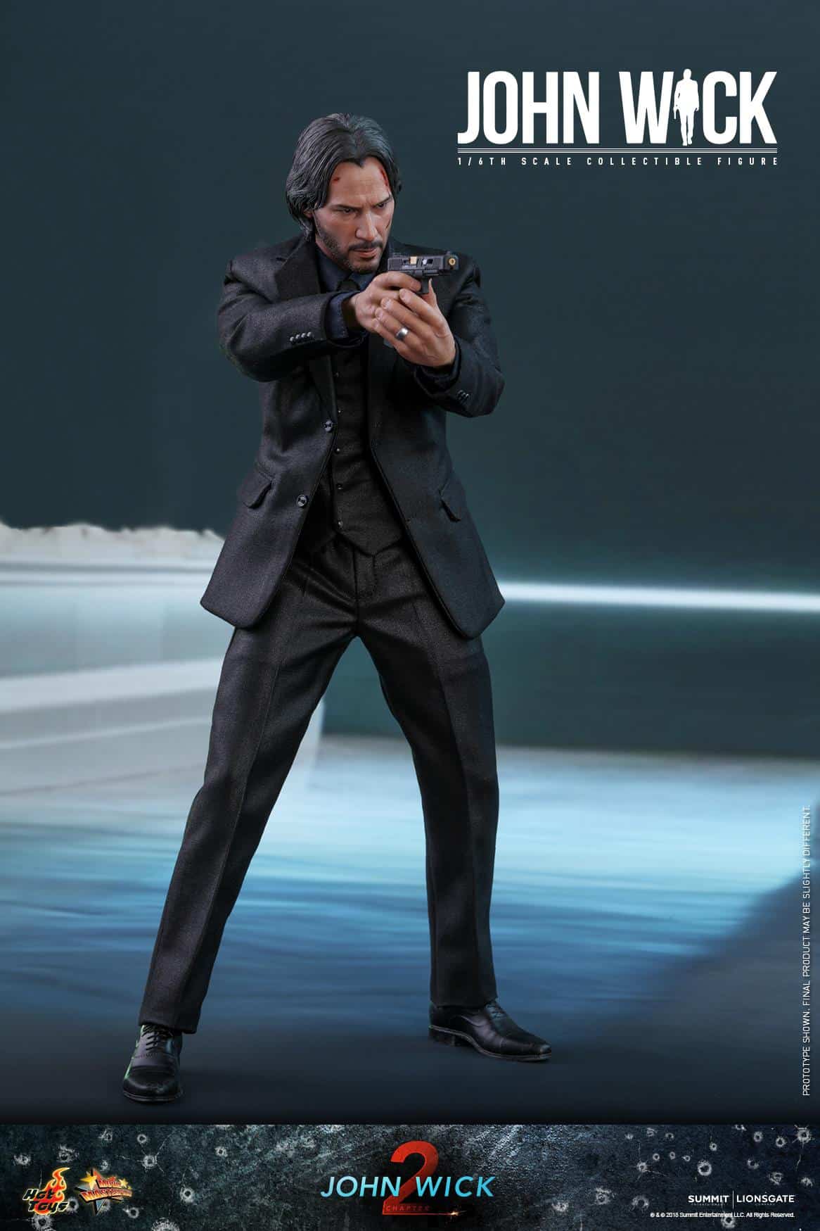 – Newly developed battle damaged head sculpt with authentic and detailed likeness of Keanu Reeves as John Wick® in John Wick: Chapter 2
