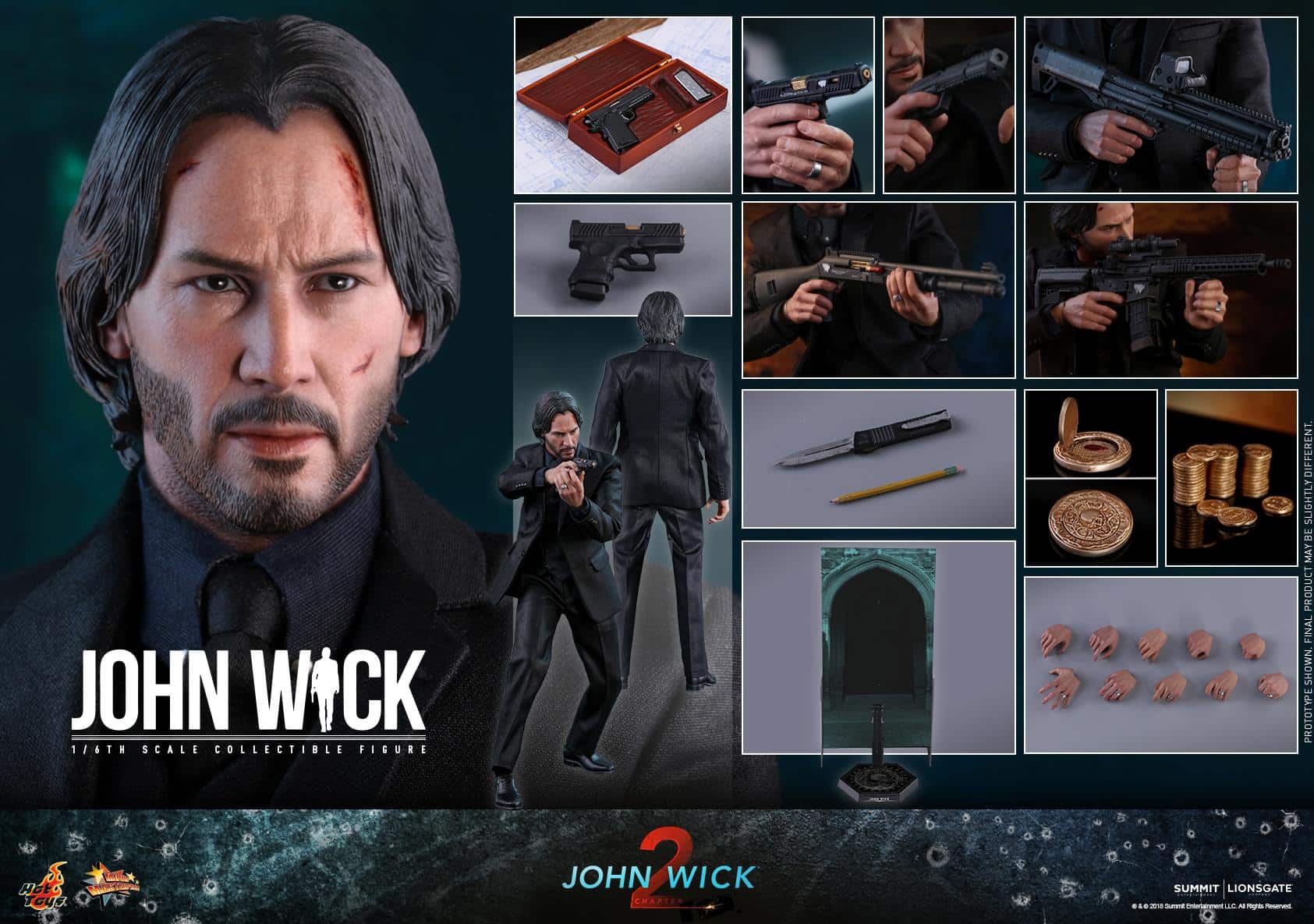 – Head Art Directed by JC. HongThe 1/6th scale John Wick® Collectible Figure specially features: