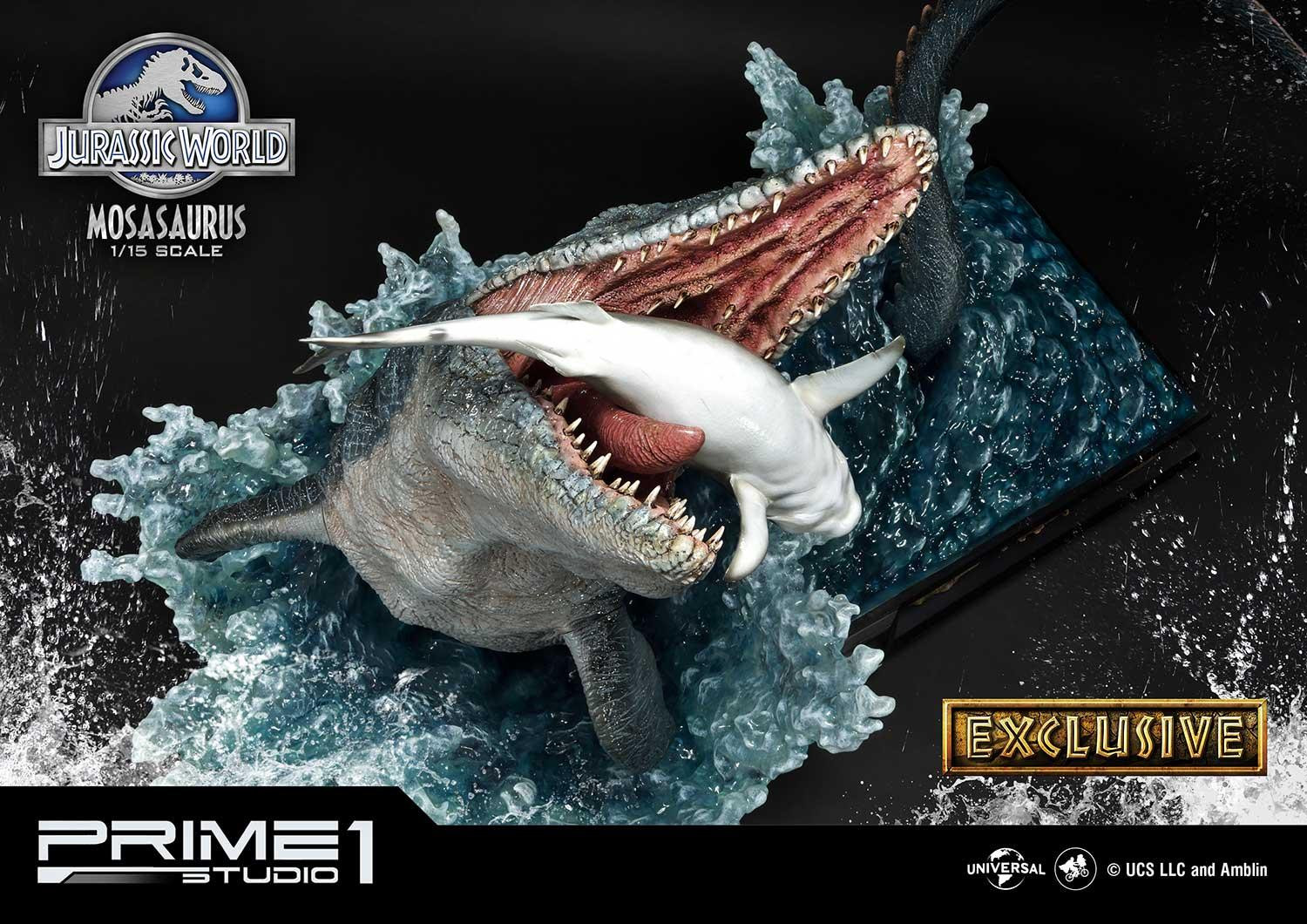 The Jurassic World Mosasaurus 1/15 Scale Statue from Prime 1 Studio is set to release between March and June 2021. The price for the standard version is $1599 and can be found here. The exclusive version with the added shark is priced at $1649 and can be found here.