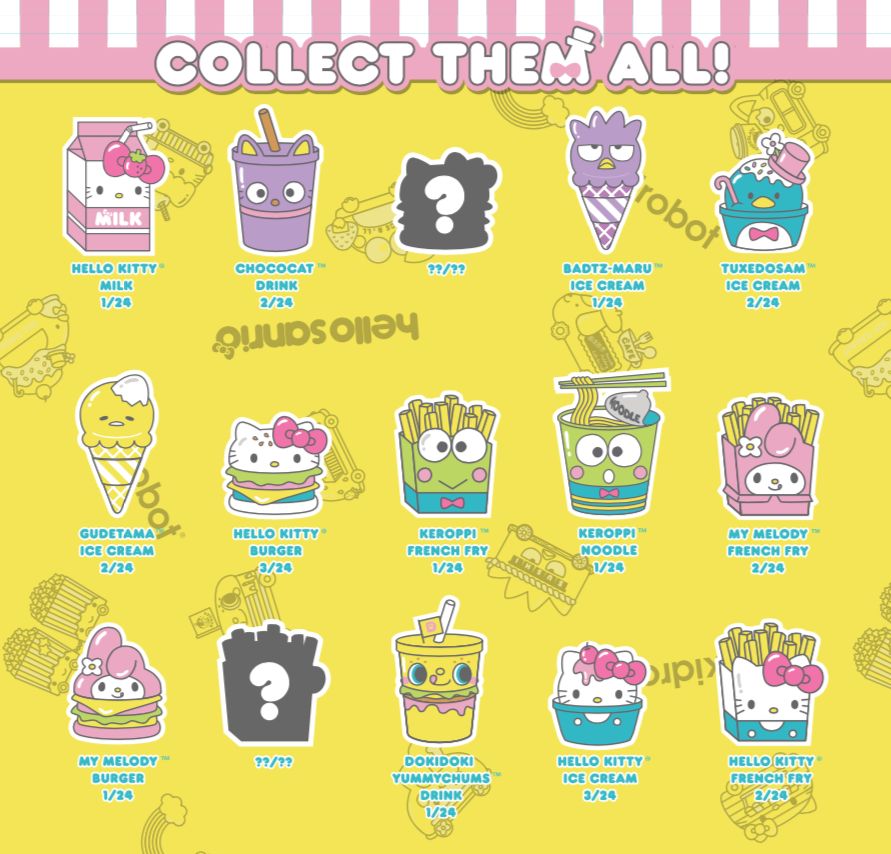 Kidrobot x Sanrio where food meets fun! Who's hungry for a serving of delectable and collectable 3" vinyl? We are!!! Kidrobot x Sanrio is here to satisfy your cuteness cravings with this new blind box mini series featuring your Hello Kitty fan favorites in flavorful food form. From fries to burgers & shakes, you'll never have to sit at a table for one again! Collect all 15 mini figures today at Kidrobot.com!