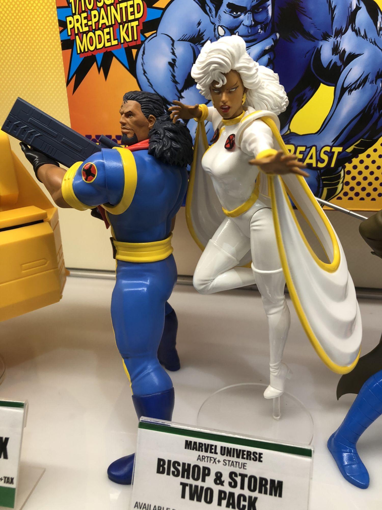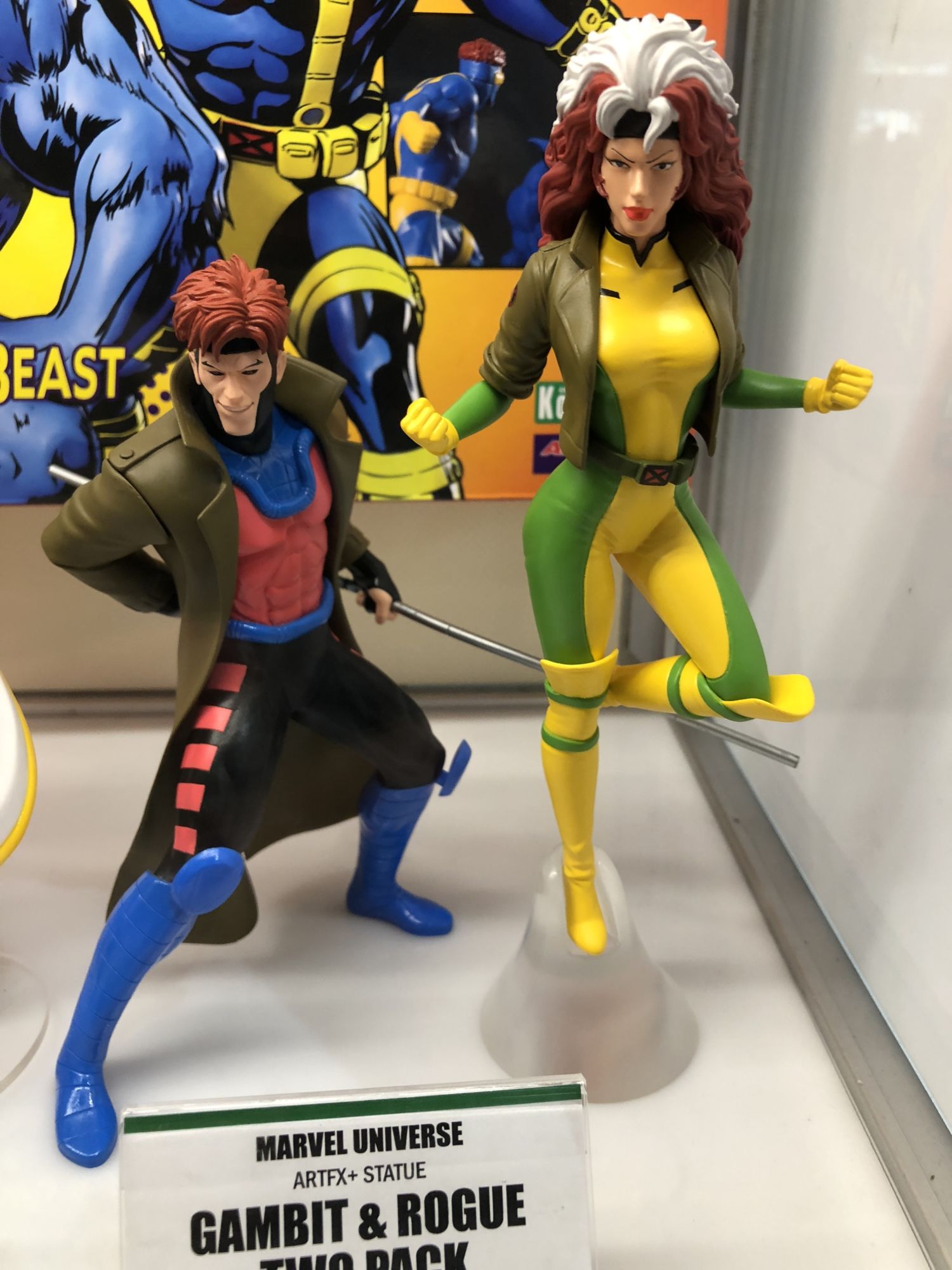 Kotobukiya has its traditional booth location on the show floor by Diamond this year, and in their cases were new statues from DC Comics, Marvel, horror, anime, video games, and more! Their Ikemen DC line continues with a new Damien Wayne statue, plenty of new Avengers and X-Men 92 statues are coming, the horror Bishoujo line gets Halloween and Hellraiser entries, anime statues abound, and the Street Fighter ladies continue to impress. Check out a full gallery below, along with the teases in the cases for what's to come!