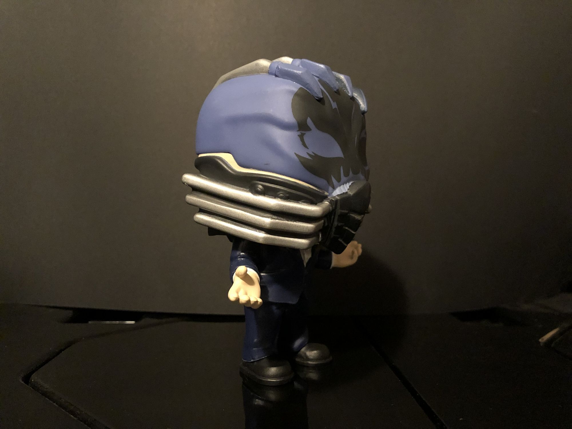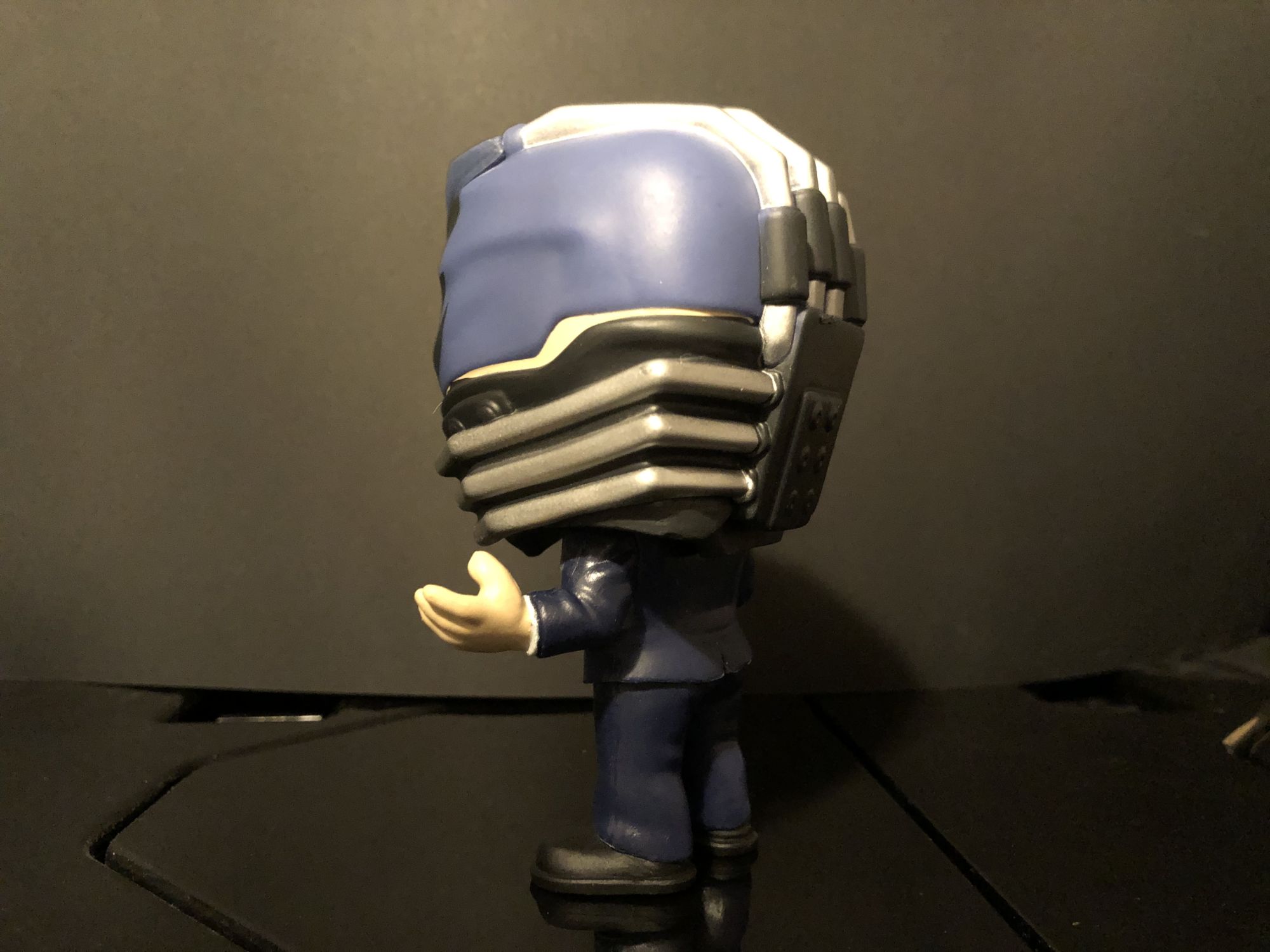 The figure itself is super unique, as his mask is designed remarkably well and is something else. I did notice that his head can't fully turn left and right with only small turns of 45 degrees. This is because the front part of the mask stops that movement. The mask is pretty unique though as it grabs the anime style that we see with the face hidden underneath the mask. The design of the helmet/mask that covers the face with the shadowed face beneath the mask. The valves and pipes on the mask are nicely done too as they go around and come up with the backside of the mask.