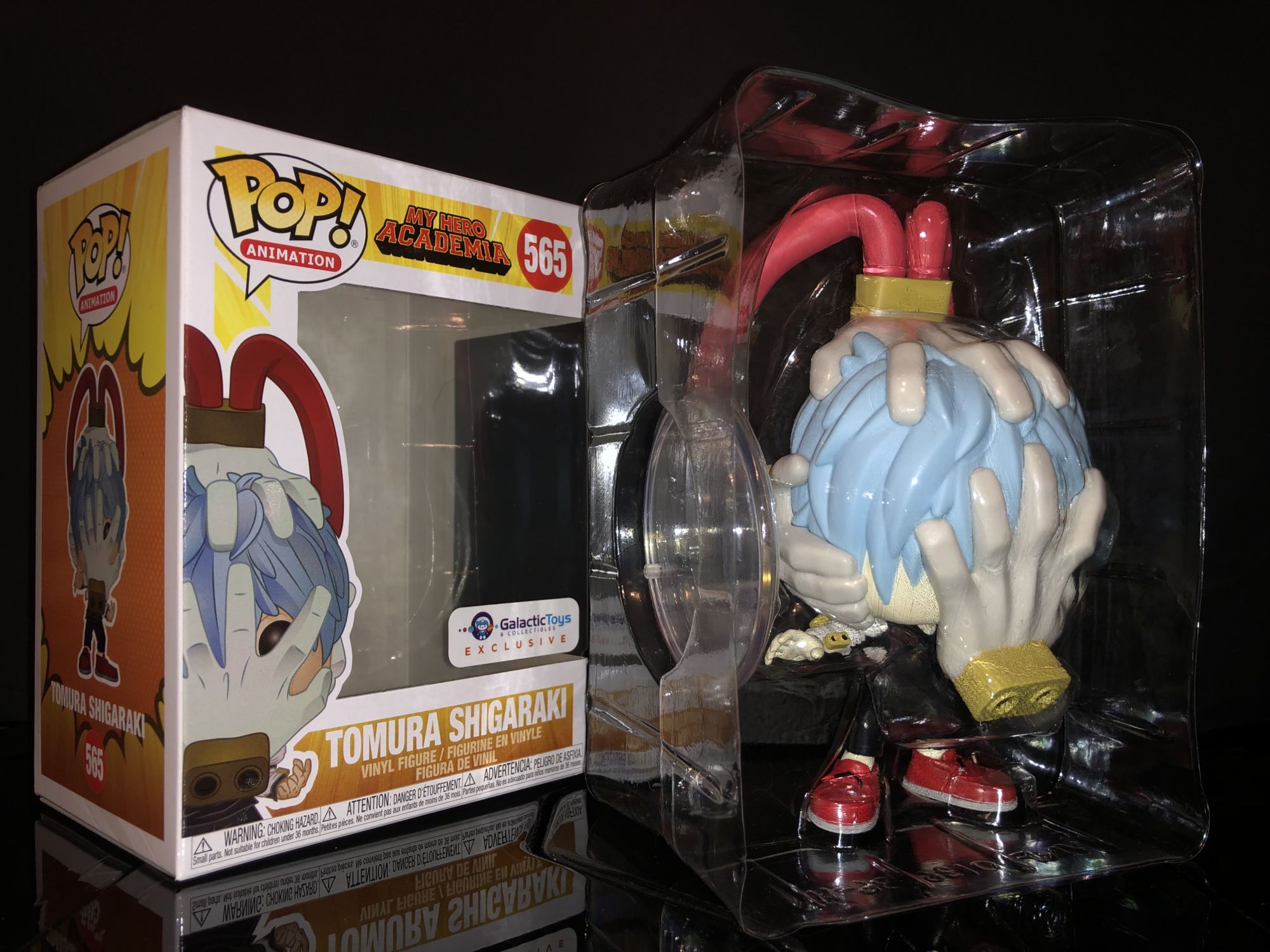 This figure is definitely unique and was a much-needed addition to the My Hero Academia Funko Pop series. I hope we can see more villains come out of the League of Villains so we have more figures us collectors can own and show off our love for the series. Next up is the Galactic Toys exclusive Tomura Shigaraki. This character design is so unique is probably one of my favorite My Hero Pop Vinyl in the series. Nothing is special about this box except for the Galactic Toys exclusive sticker placed on the front of the box.