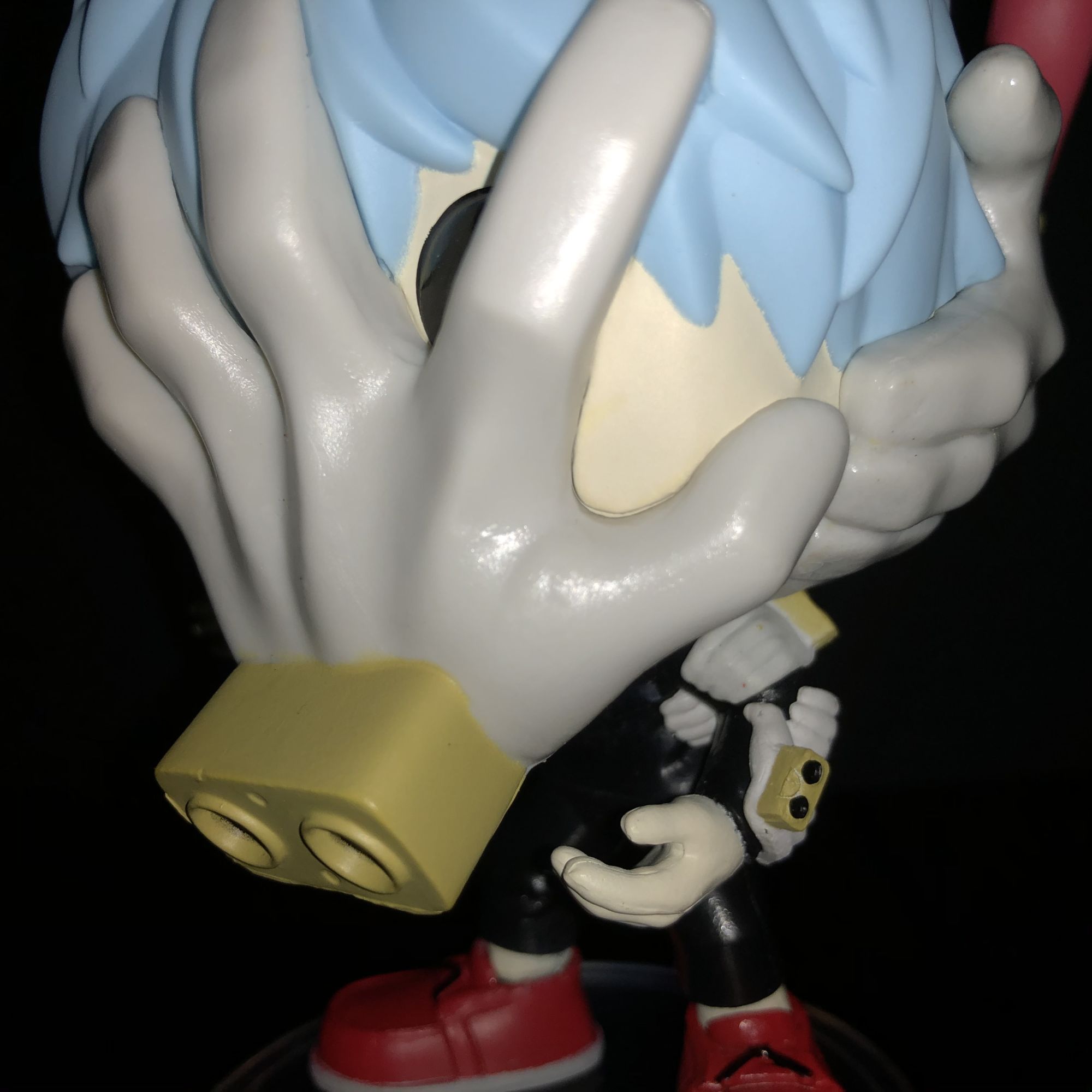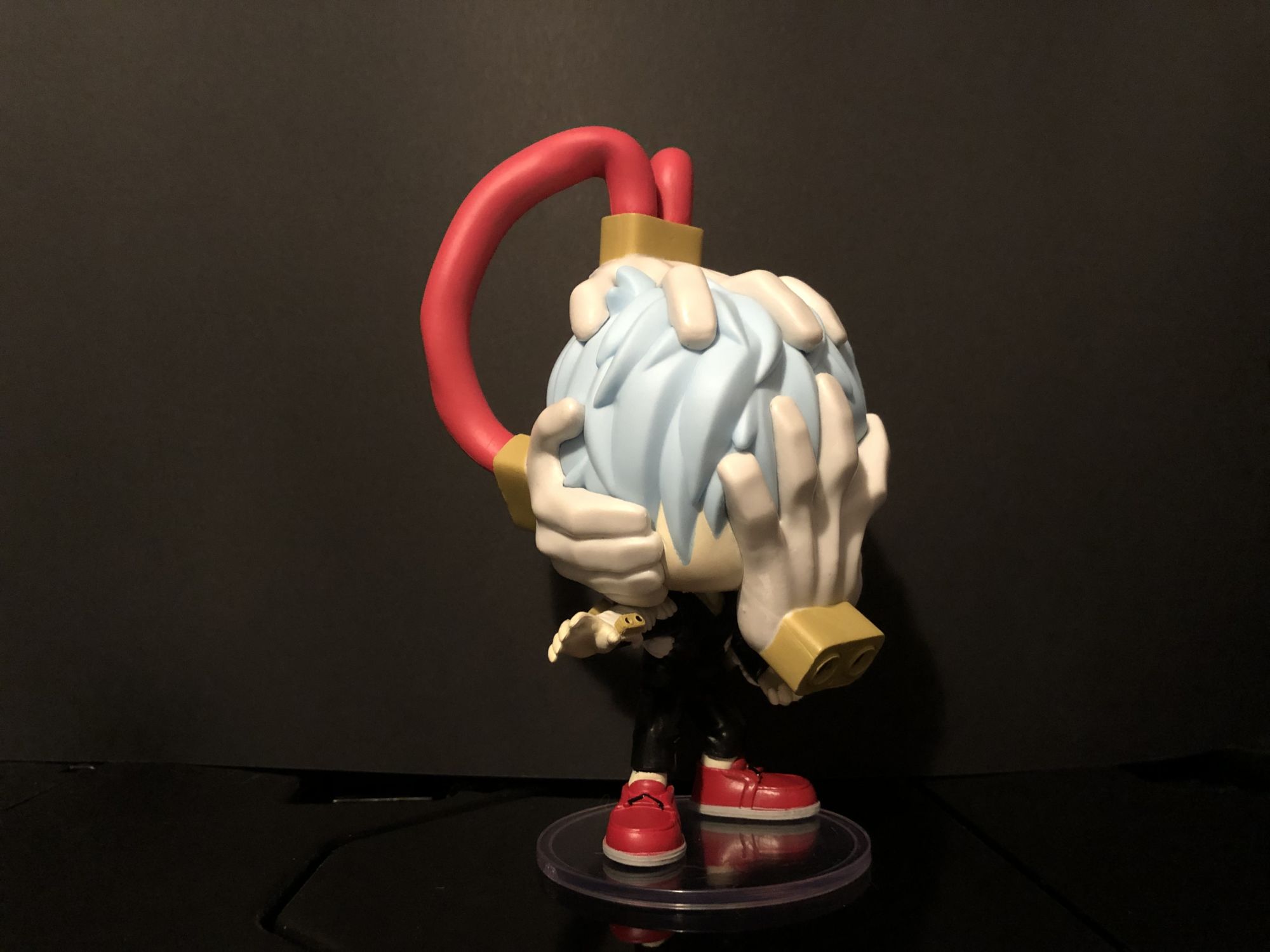 Completely based on his look in the television show, Tomura is covered in decaying hands. This League of Villains character is amazing and I love how you can see his Pop versioned eye looking between two of the fingers on that hand. This figure does hold a lot of weight as you can see there's a lot of plastic here. It is very uniquely designed with all the little hands on his arms and the bigger ones surrounding his head. I love the colors here too, as the light blue hair shines well with this style and it makes a perfect Funko Pop exclusive.