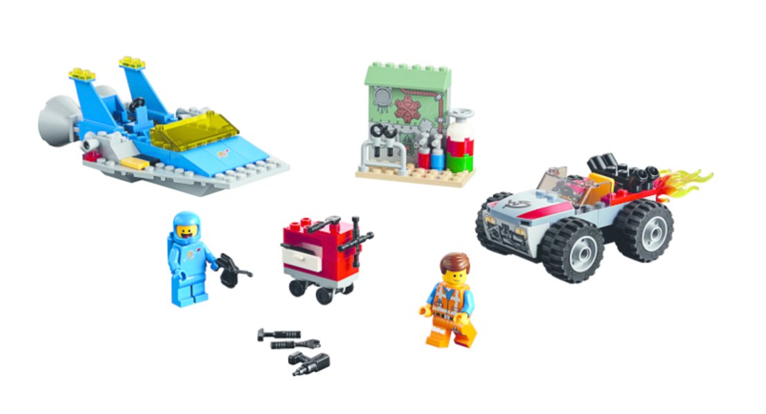 Specially designed for younger builders ages 4 and up, this playset lets kids use the tools to fix Benny's Spaceship and Emmet's Escape Buggy. Kids can "pump gas" into the vehicles and launch them into orbit, then use the spaceship's buggy to explore new planets! Includes Emmet and Benny minifigures.