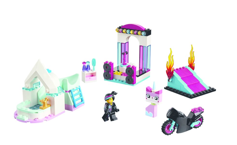 Give your young master builder hours of fun with this versatile builder box! This creative toy features 3 buildable models—Lucy's motorcycle with a ramp, a rotating dance stage and the Unikitty spa with spa bath and washstand. Includes a Lucy minifigure and a brick-built Unikitty figure for endless role-play fun.