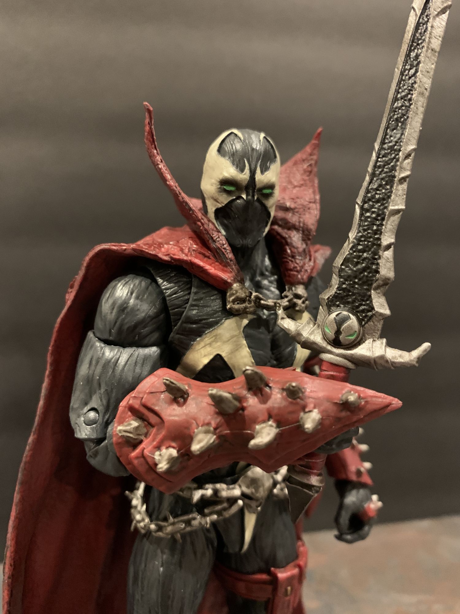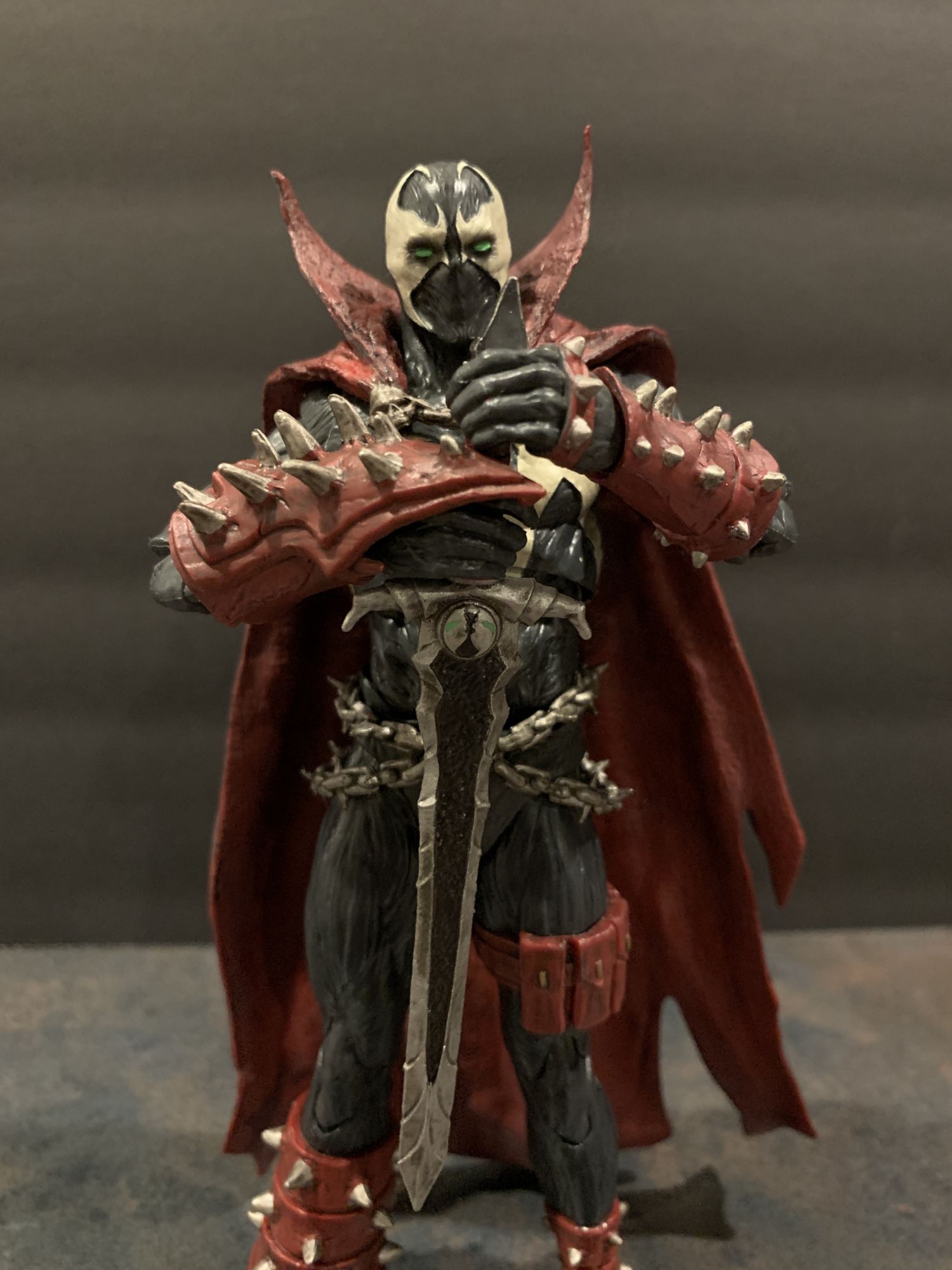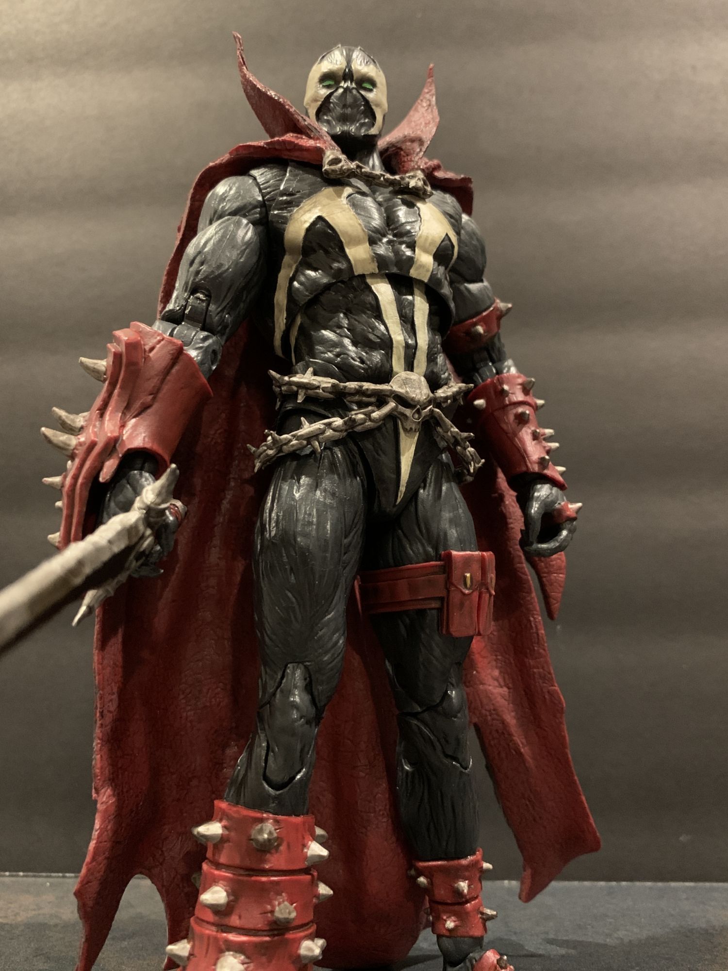 A lot of that has to do with the toe articulation they have been including on figures as of late. It offers an incredible amount of balance when posing.He holds his broadsword well, and I love the little Spawn logo on the hilt. Everything is full of detail and little winks and nods for fans, and Al just LOOKS menacing standing there. All paint lines are clean, and it is clear that a lot of effort and time was put into the design of Spawn here.