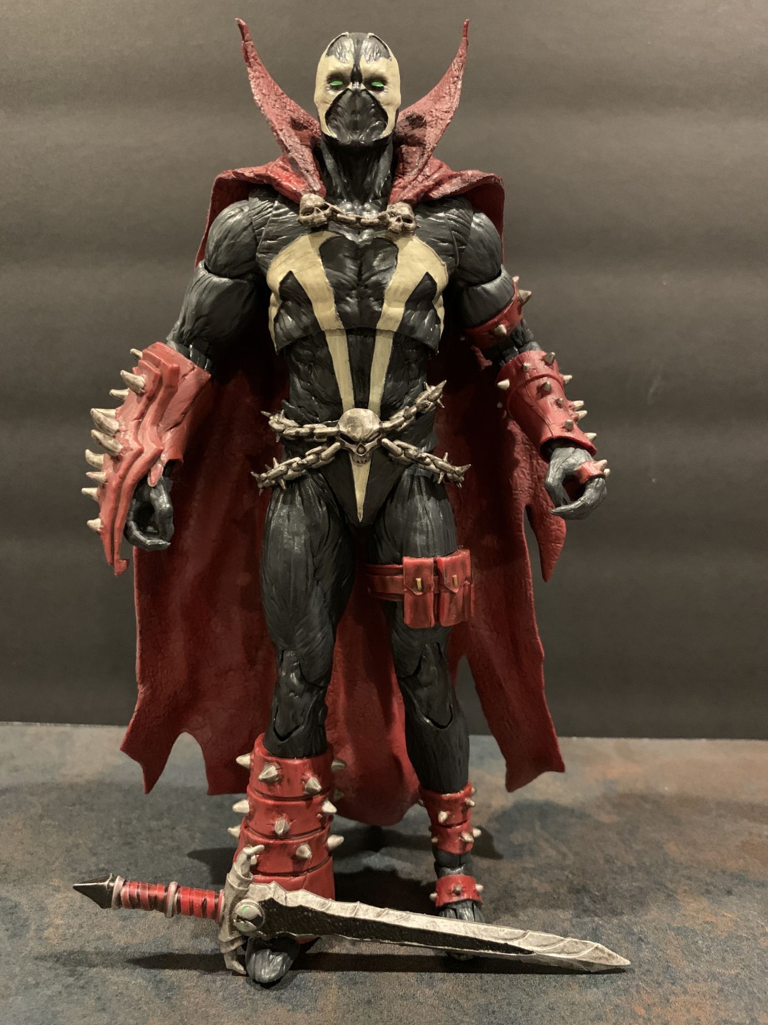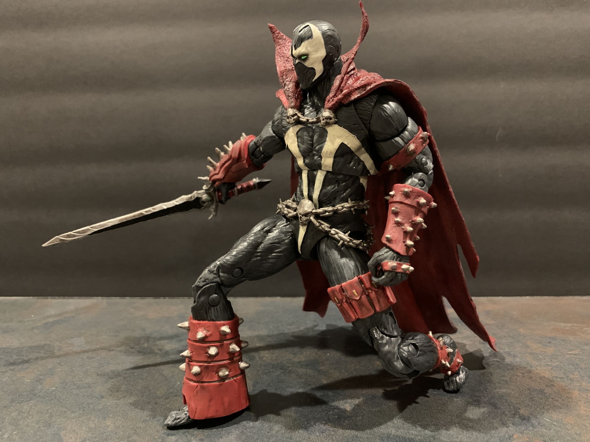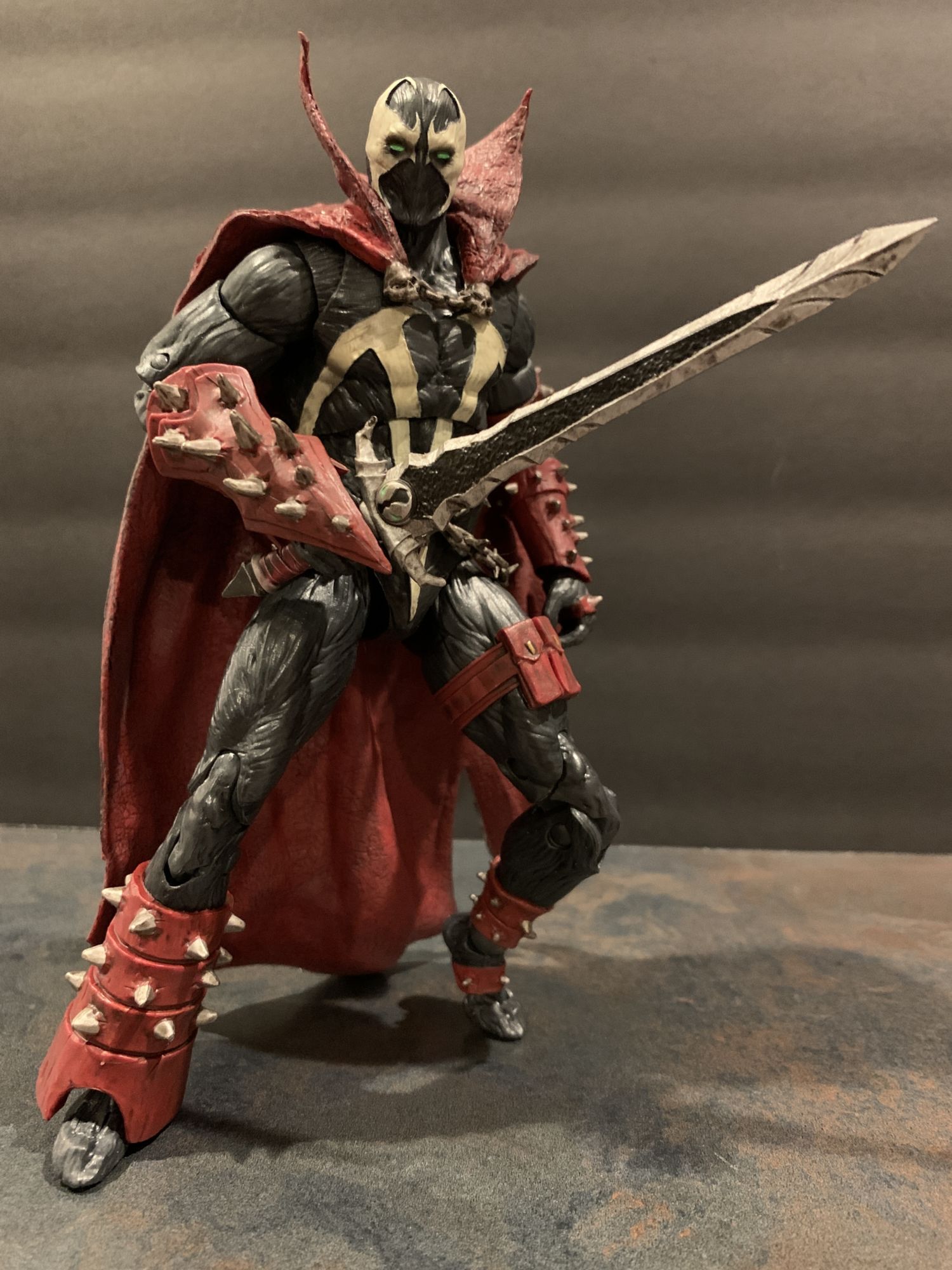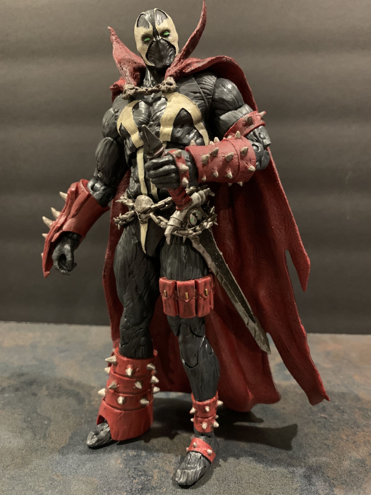 A lot of that has to do with the toe articulation they have been including on figures as of late. It offers an incredible amount of balance when posing.He holds his broadsword well, and I love the little Spawn logo on the hilt. Everything is full of detail and little winks and nods for fans, and Al just LOOKS menacing standing there. All paint lines are clean, and it is clear that a lot of effort and time was put into the design of Spawn here.