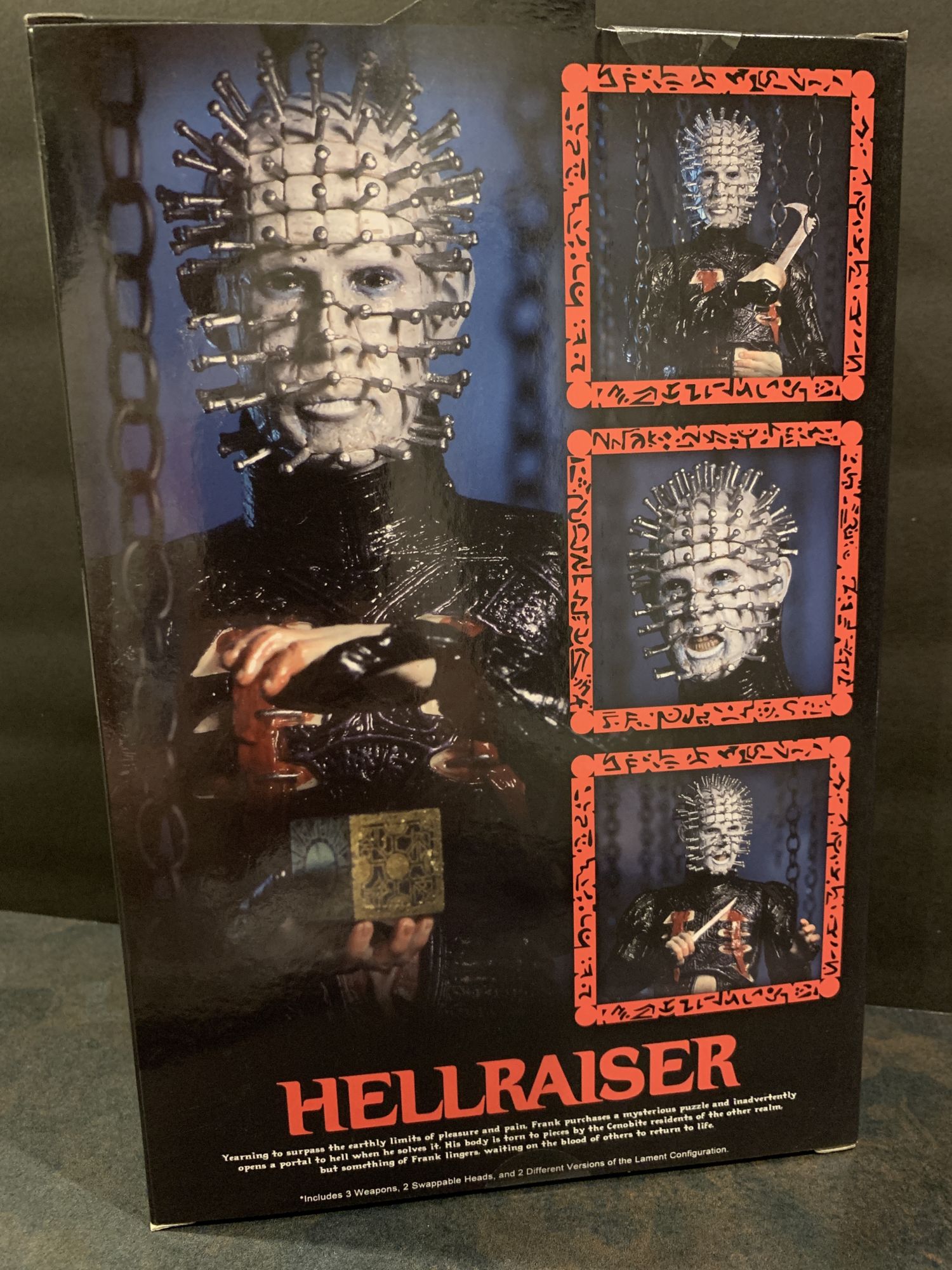 As always, we start with the packaging. Like always, NECA makes it really difficult to open these figures. Featuring poster art on the front, figure shots on the back, and Pinhead on the flap, the box is a work of art like the figures are. Maybe one day I will start buying two of each so I can keep one in the box MOC.