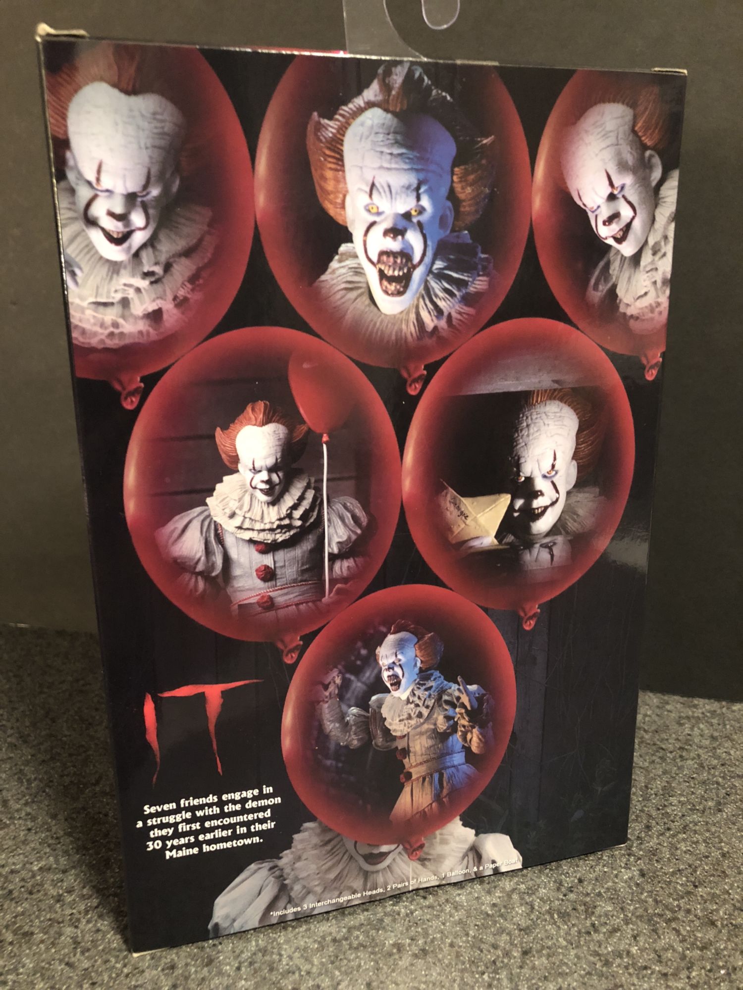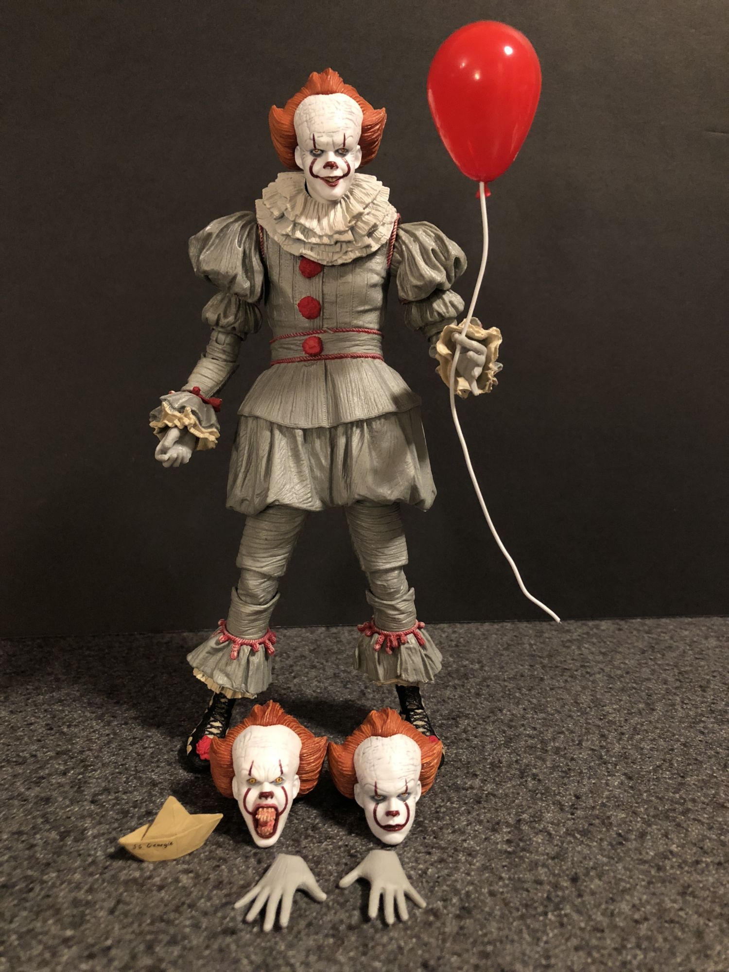 Of the three swappable heads, my favorite is the sinister smile one. Not that the other two don't look great, but there is just something special with the way that Skarsgård smiled as Pennywise that made him that much more unnerving. The one thing I could complain about with this figure is that it is a little bit of a struggle to swap out the hands and heads. Not impossible or anything, just not easy. The balloon is a genius accessory, and it was super simple to feed the wire into his hand so that he can hold it aloft.