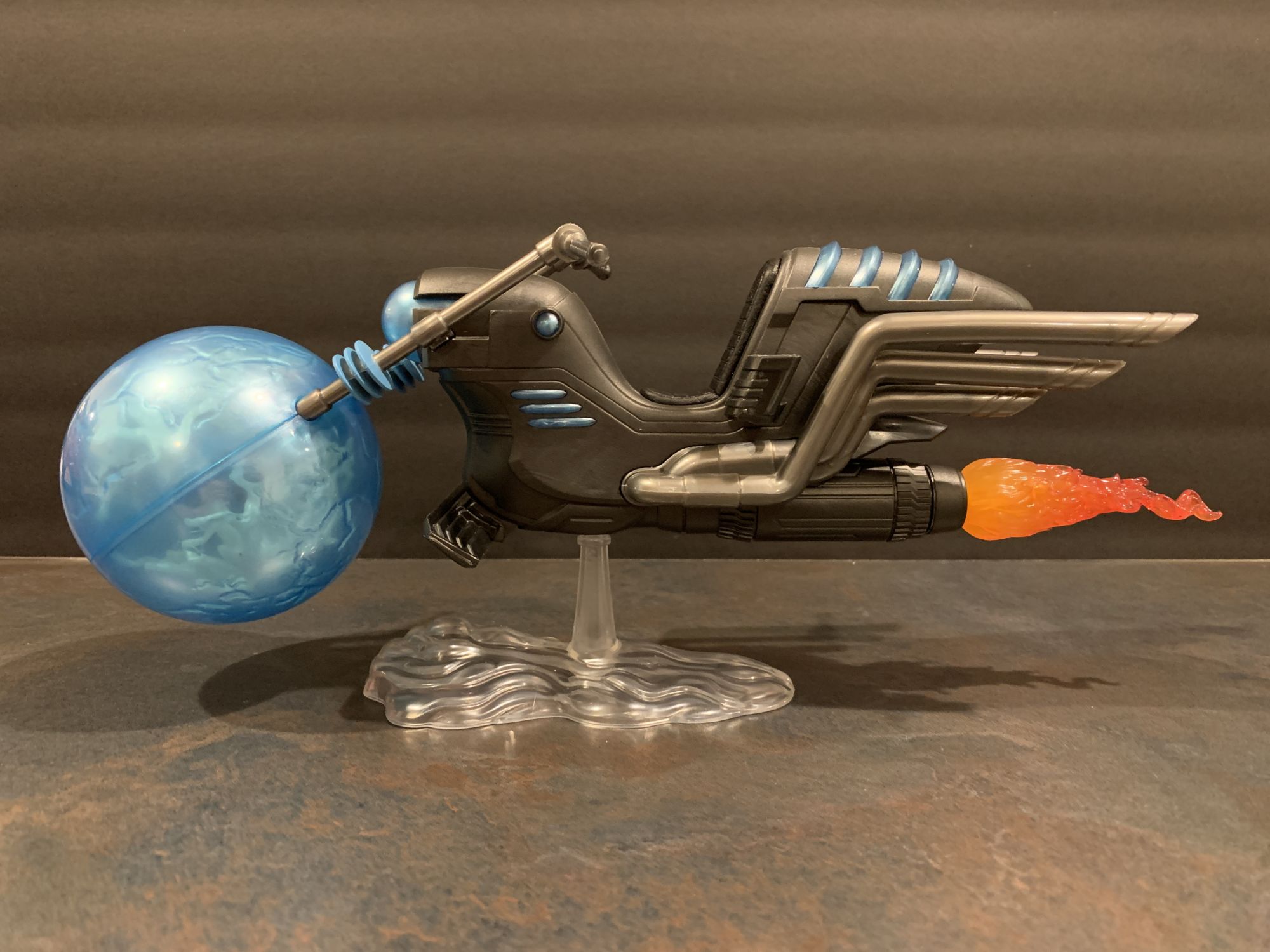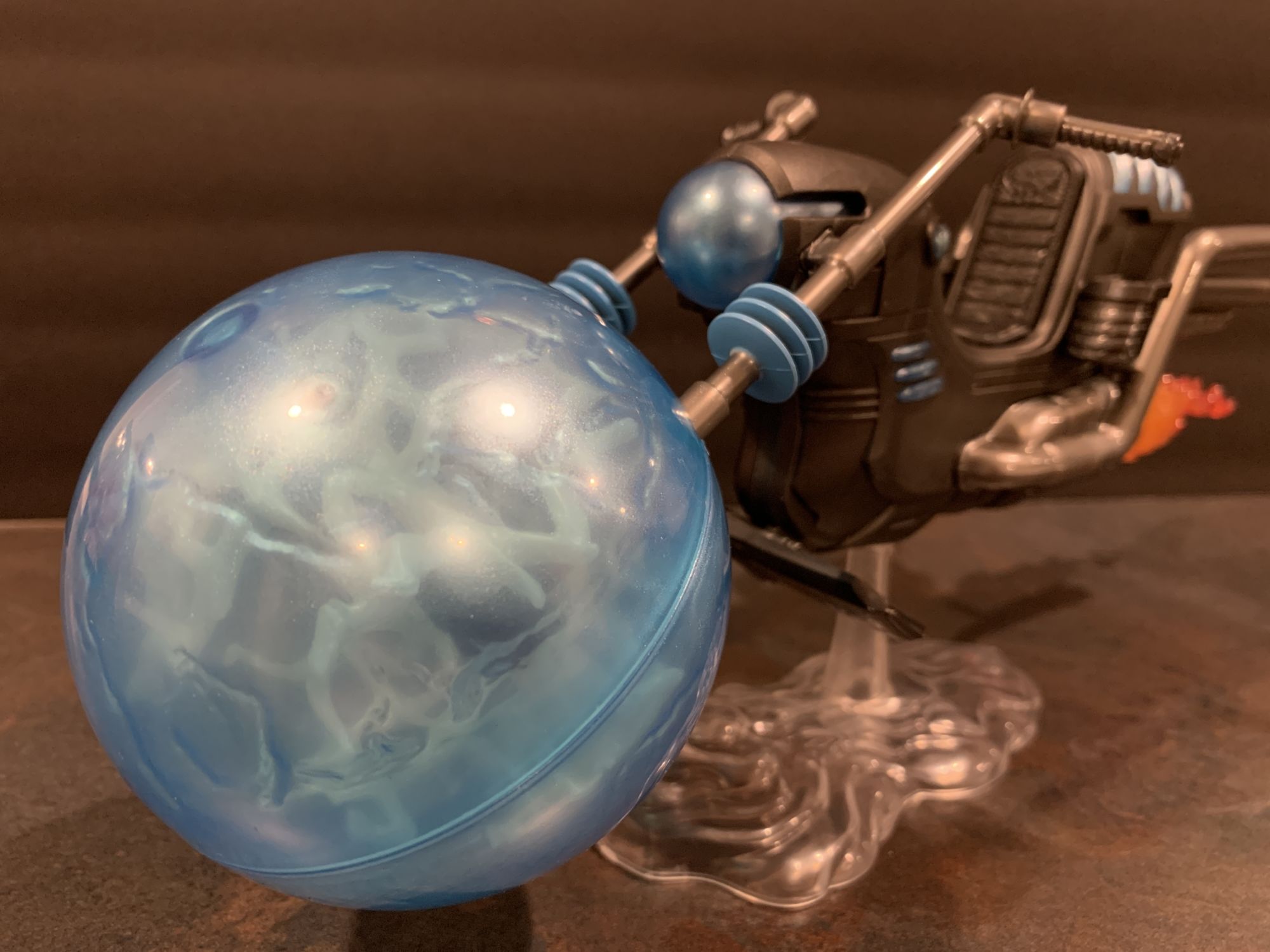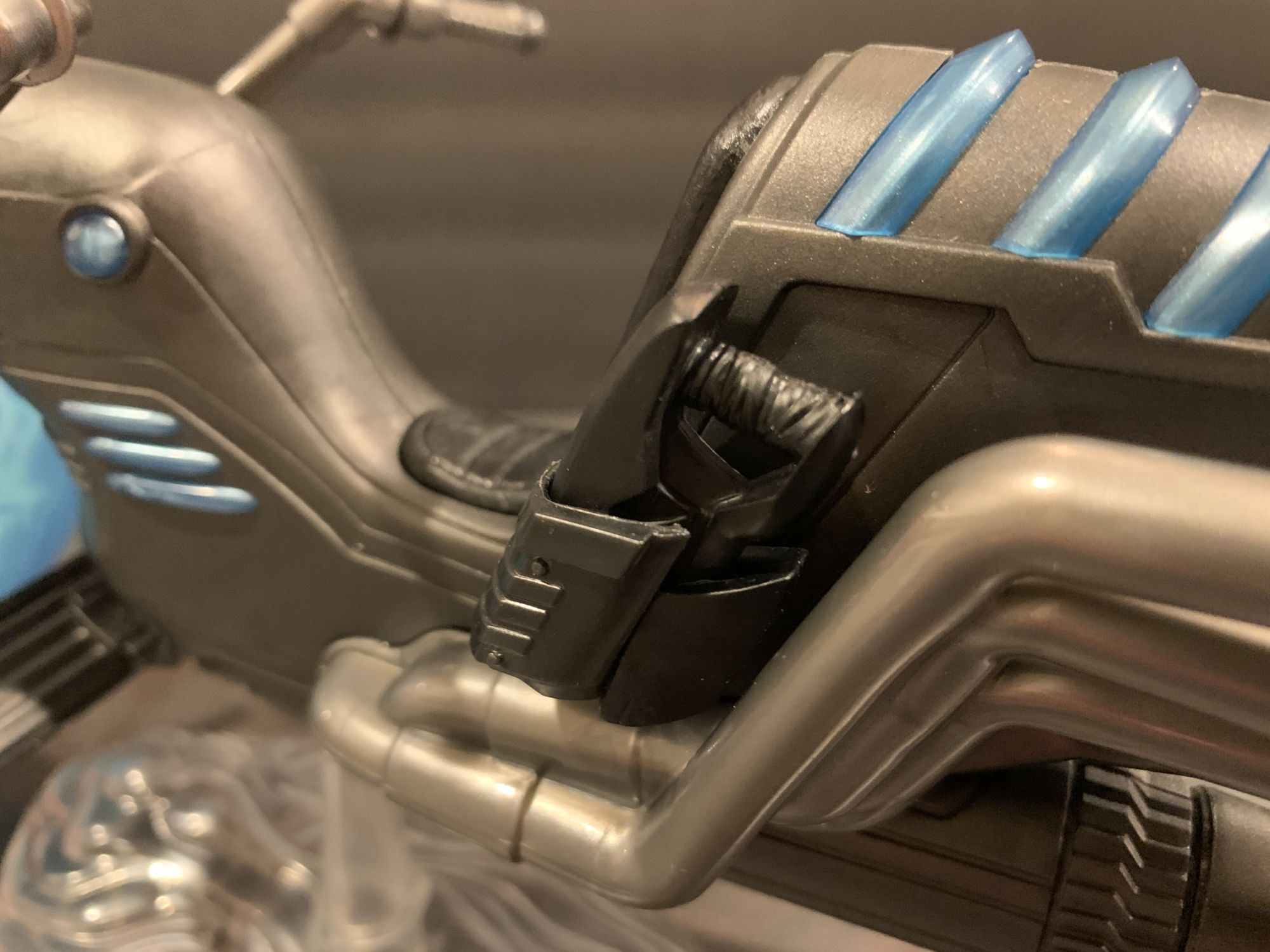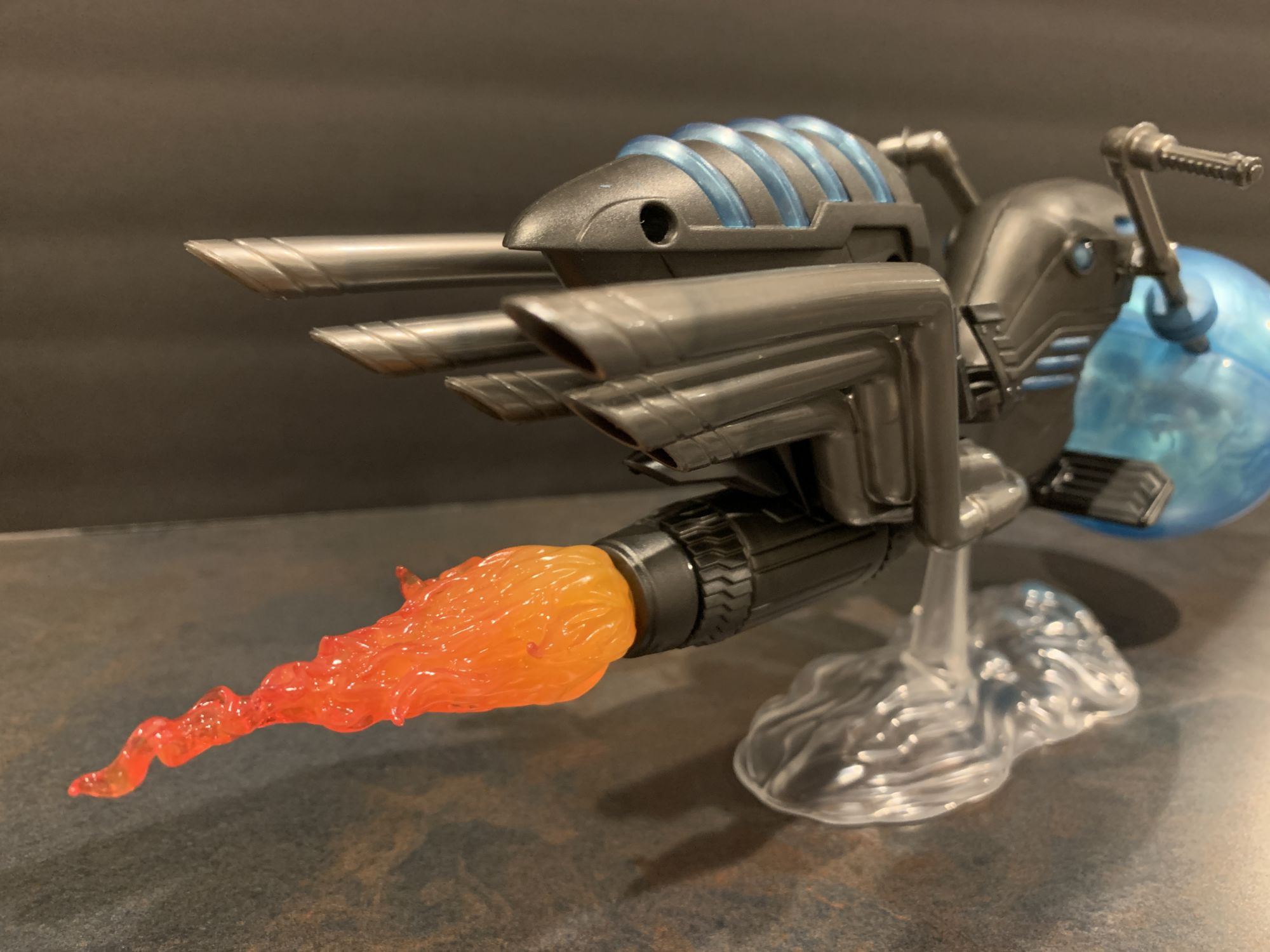 Looking at the bike, it is massive. A little assembly is required, but once you snap the giant front energy ball in place and put this bad boy on the included display stand, it is a marvel to look at. My favorite part are the holsters for the Rider's blasters on the sides by where he sits. Each is specific to each blaster, and it is refreshing for everything that comes in the box to have a purpose and place with the figure while on display. Not enough Marvel Legends do that, I want as much from the contents of the box to be with the figure as I can get. Lots of places on this for paint aps to go wrong, but mine looks pretty flawless. It feels substantial, and that is all you can ask for with these vehicles.
