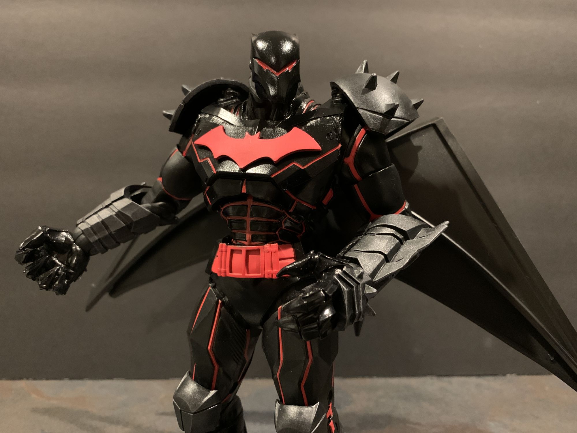 Once Hellbat is unleashed from the package, you can see what a marvel this figure is. he features 22 points of articulation, and each has a great, wide range of motion, except for his head. That swivels a bit but not much. Other than that, he is super simple to get into a variety of poses and remains sturdy in all of them. McFarlane Toys has done a superb job with paint on all of these figures so far as well, and this is their masterpiece. The red is so striking on the black, and it is seamless around the joints and articulation points.