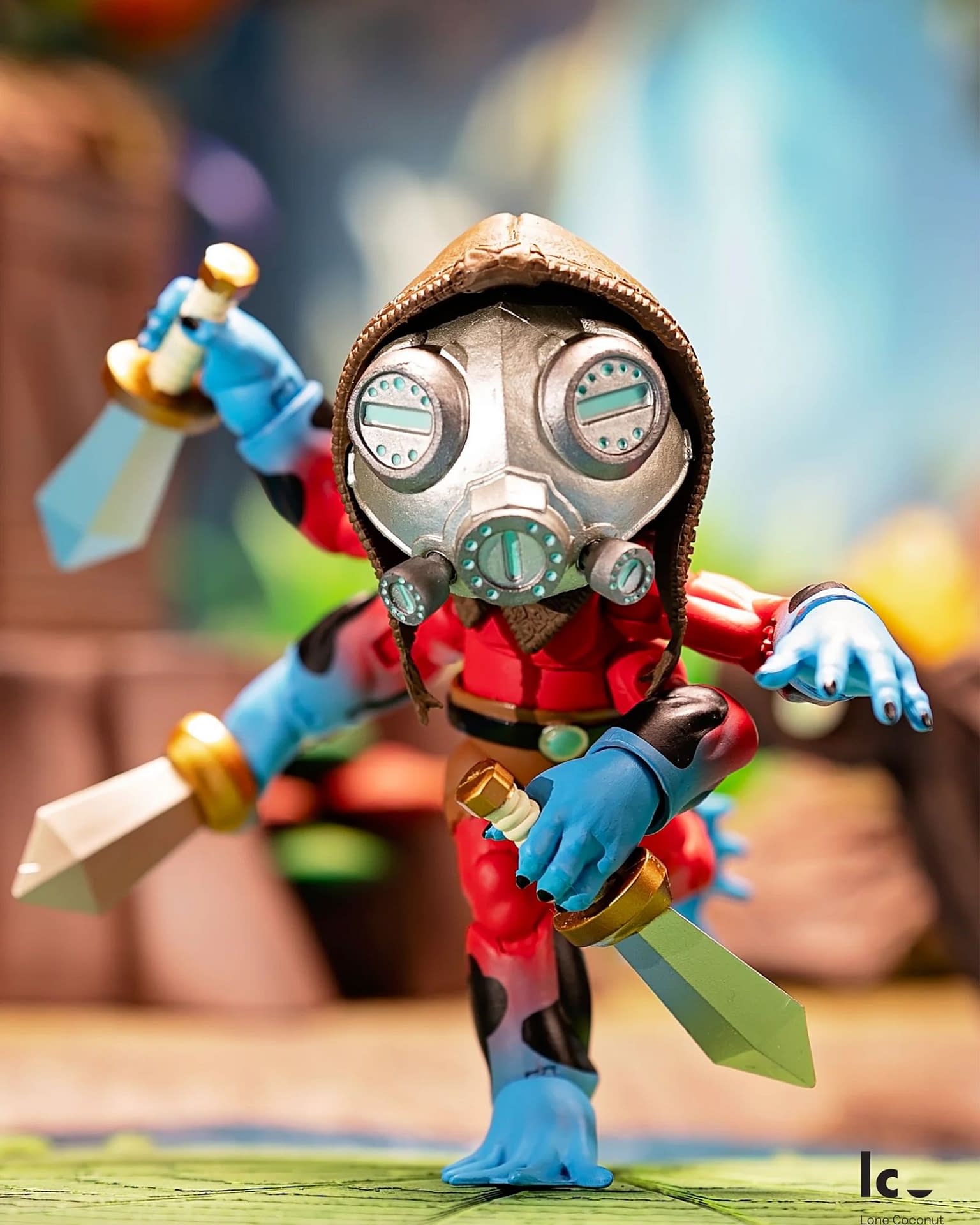 PlunderFrog Nomad Koqui is a brand-new figure that continues to add a tropical twist to Lone Coconuts' pirate-themed action figure line. The PlunderFrogs are reclusive mystics who trade with the locals, and this nomad is a cheerful one who lives deep in the jungle. Koqui features an impressive red-and-blue deco, with two swappable heads, five swords, a mask, a magnetic, removable hood, and four articulated arms! The PlunderFrog Nomad Koqui figure is priced at $34.99, and keep your eyes peeled on BBTS or the Lone Coconut Shop to get yours.