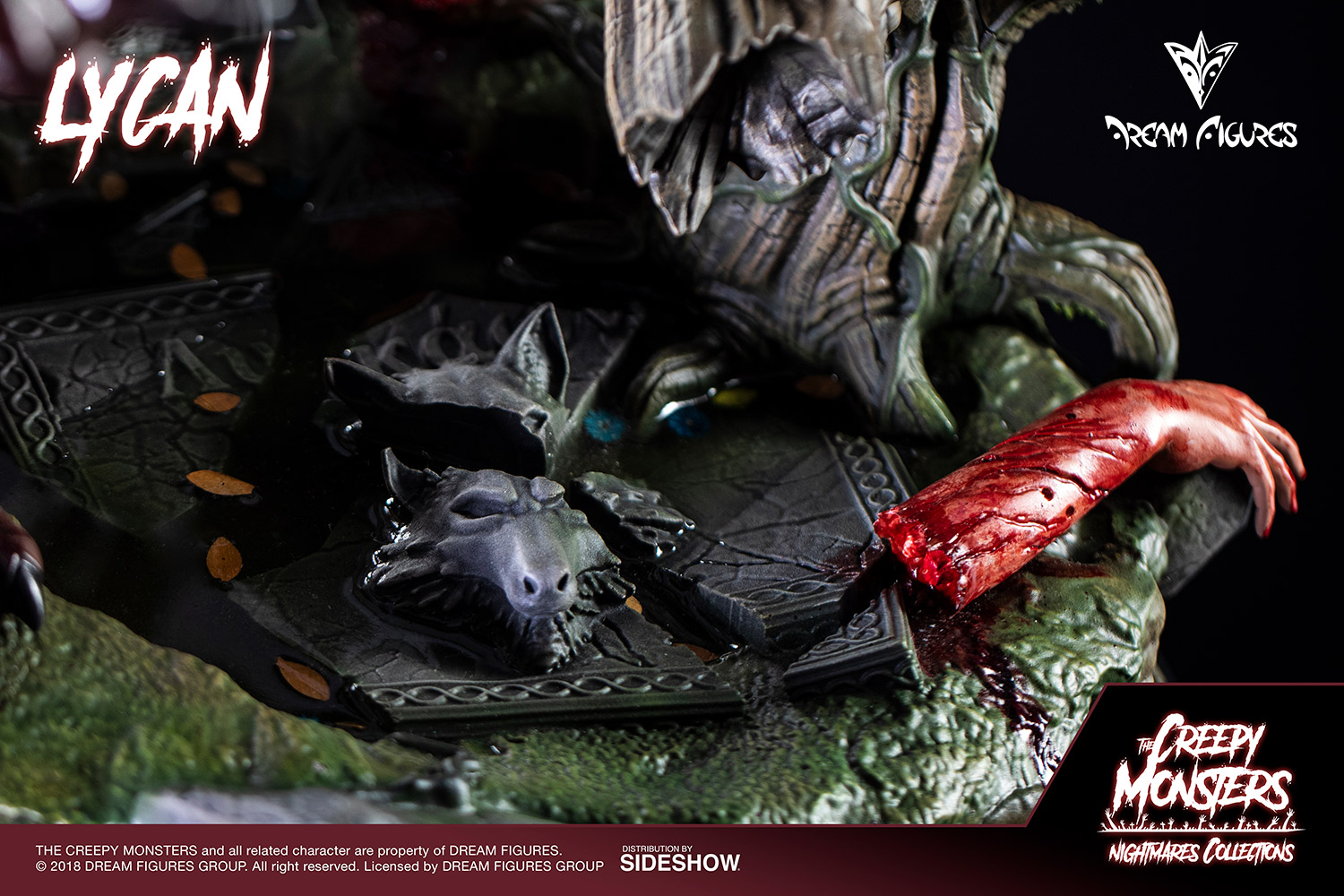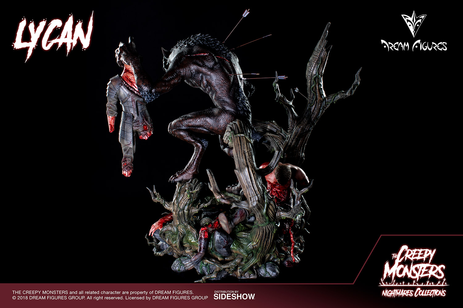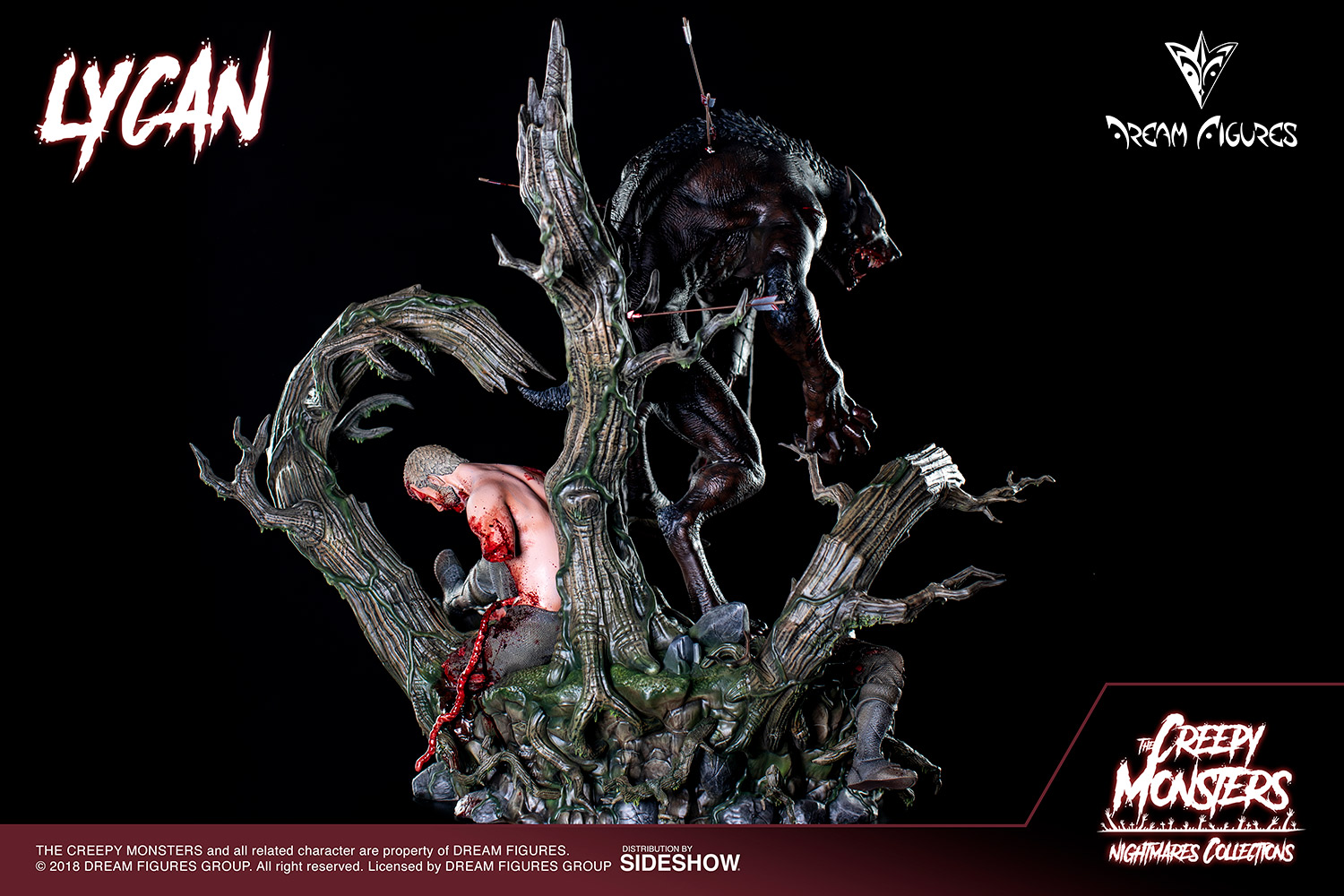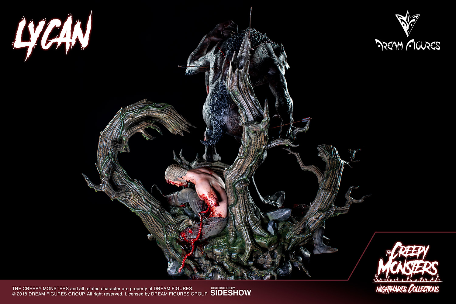 Sideshow and Dream Figures proudly present the second project of Dream Figures' classic terror line. Based on the myths and literature of the monster genre LYCAN is a great statue. This quarter scale centerpiece focuses on the main characteristics of the Monster: brutality, bloody, savage … taking care of all the details and bringing an awesome and terrorific look.