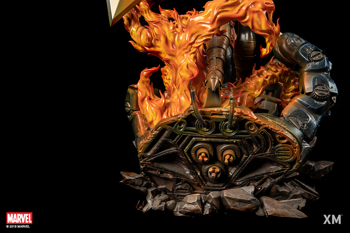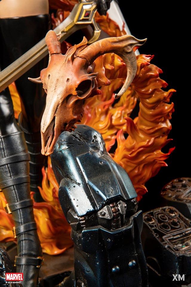 Magik also is known as Illyana Rasputin has gotten the X-Men out of quite a few jams over the years. This powerful meeting debuted in the iconic Giant-Sized X-Men #1. She is the sister of the beloved X-Men Colossus. This time the spotlight is on her brother but her with XM Studio's newest statue. This statue really does bring the heat featuring Magik herself holding her iconic massive sword and another in hand. The statue's base is something to admire itself featuring a robotic hand severed. The hellfire is a piece of art as well with the flaming skulls swirling around below. This statue does feature a secondary head giving her a truly demonic face and feel. This is a statue I would personally love to own. as Magik as one of my favorite characters. Any X-Men or Magik fan would've loved to have this piece in their collection.