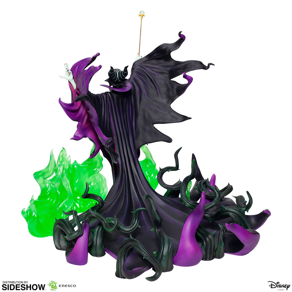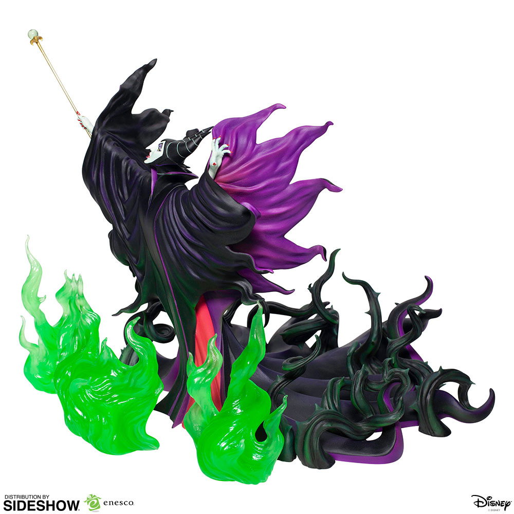 "Sideshow and Enesco are proud to present the Maleficent Figurine from Disney's Sleeping Beauty. Maleficent, The Mistress of Evil, summons all her powers in this spellbinding sculpture from Grand Jester Studios. With 4 separate flames and removable rod, you can arrange the flames for the desired display. This numbered limited edition of just 2,500 units worldwide comes with a Certificate of Authenticity."