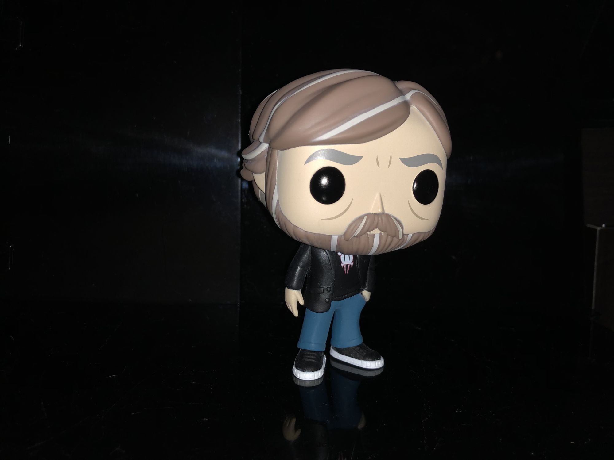 The figure itself is pretty cool and I would've loved to got the Joker version but being a fan of Luke Skywalker a normal one is just fine. The figures featuring the man in a simple outfit with a jacket, pants, and a shirt. This figure supposedly based on his appearance in The Big Bang Theory. One nice little Easter egg is that he is featured wearing his son's design Evil Mouse T-shirt. The hair is an interesting color as it gives some highlights throughout it which doesn't really appear on the box. It's a very simple figure but for being such an iconic person it deserves all the praise.