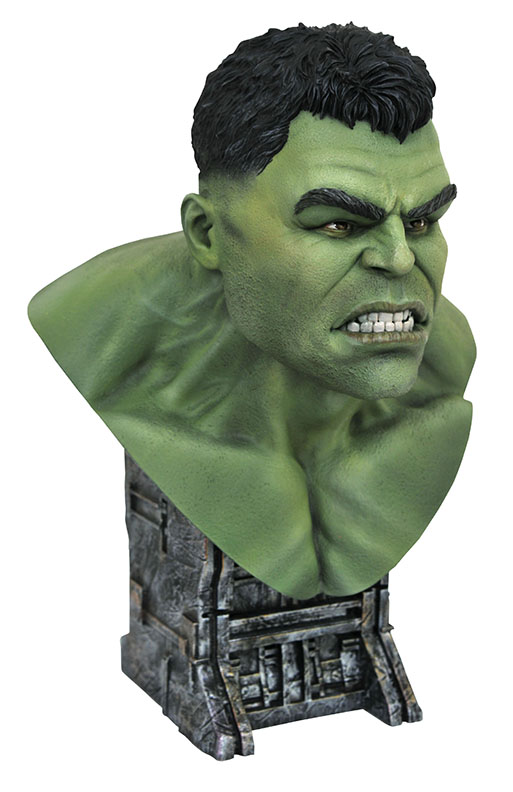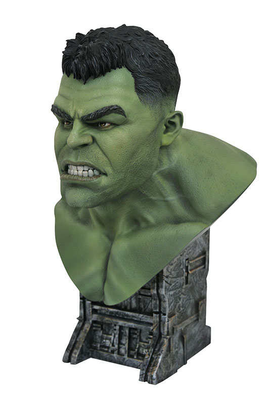 A Diamond Select Toys release! This bust burns like raging fire! Based on his appearance in Avengers: Infinity War, this resin bust of the Hulk is in 1/2 scale, and measures approximately 10 inches tall atop a movie-inspired base. Limited to only 1,000 pieces, it comes packaged with a numbered certificate of authenticity in a full-color box. Designed by Joe Allard, sculpted by Rocco Tartamella. (Item #JUL192670, SRP: $174.99)