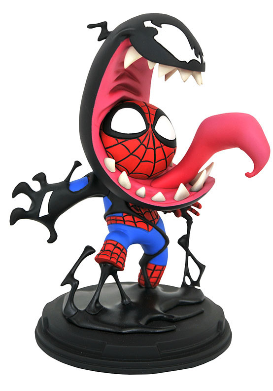 A Diamond Select Toys Release! It's a sticky situation in this new Marvel Animated Statue from Gentle Giant Ltd.! Spider-Man is all wrapped up in the Venom Symbiote in this approximately 5-inch resin sculpture based on official Marvel artwork. Statue comes packaged in a full-color window box. Designed and Sculpted by Gentle Giant Studios. (Item # JUN192393, SRP: $59.99)