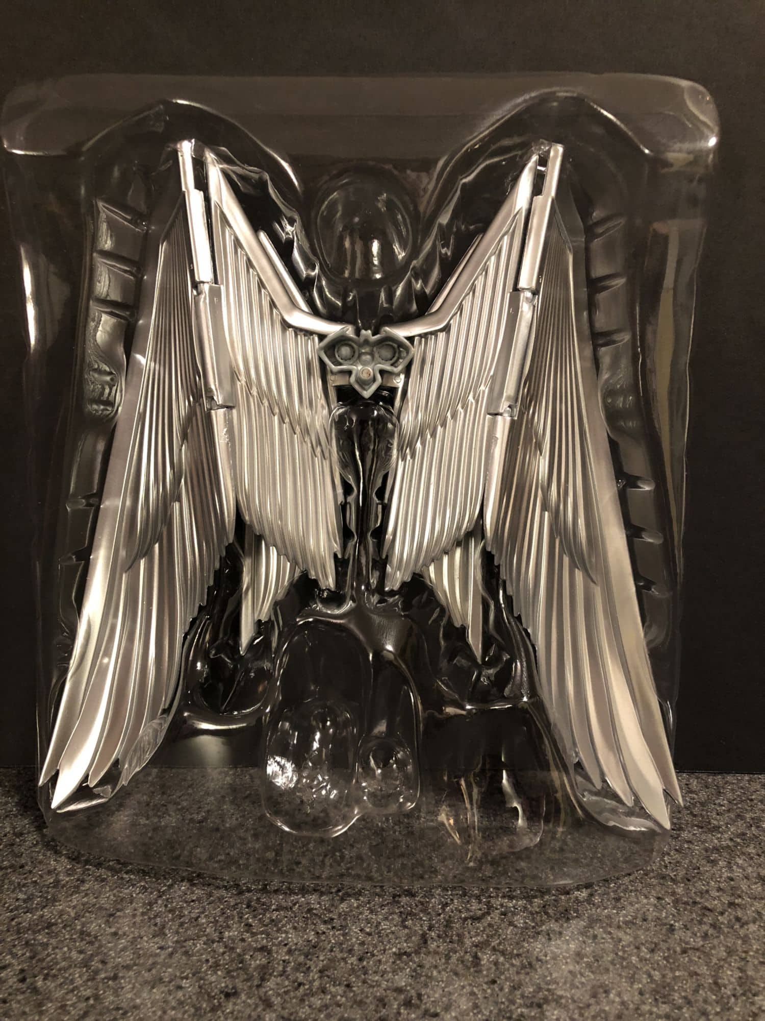 This figure lives and dies with the wings though. Truth be told, they are a mixed bag. When fully extended, they look great. The hinge each one rests on is stronger than it looks, and allows for quite a bit of movement. It is when you are not posing him with the wings fully out that there are some issues. They scrunch up weird and send the figure off balance often. They are so articulated that wrapping the wings around him is really tough to make look natural. Same with his arms, they stick out from underneath a lot when you fold the wings around him.