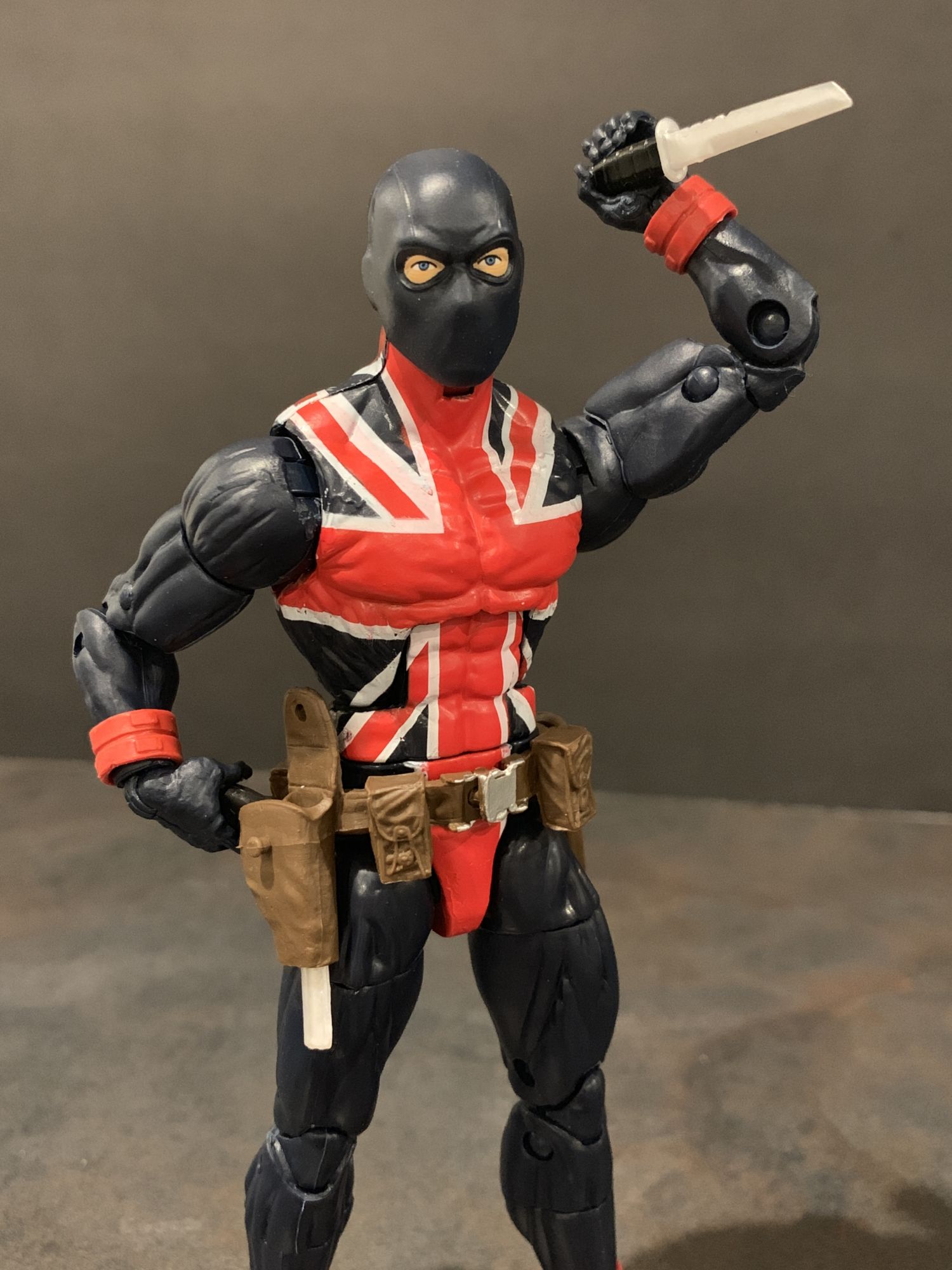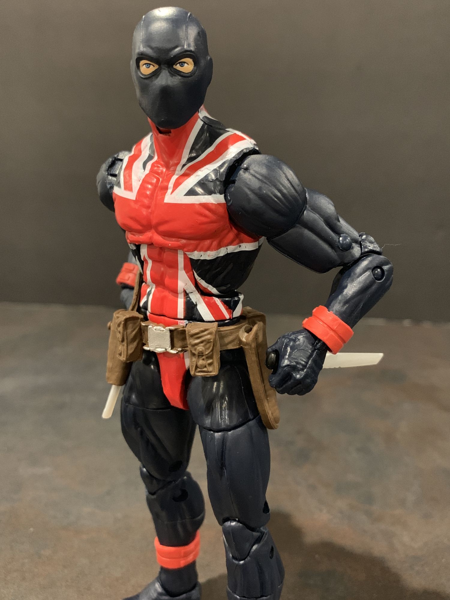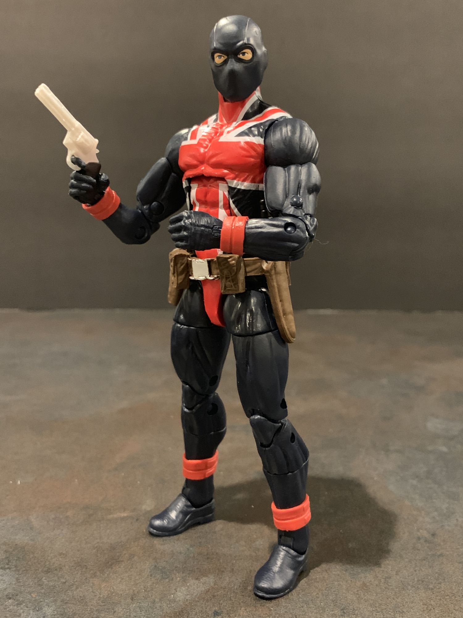 Even better is this version of Union Jack. He comes with a pistol and a knife, and he has huge range of motion on his arms. One of my favorite poses to do on the shelf is the character reaching into the holster to grab the weapon, and if the figure cannot do it it bothers me. I am so glad this one can. Perfectly I might add. They nailed the coloring on the suit as well, the dark blue and the symbol really pop. Great figure.