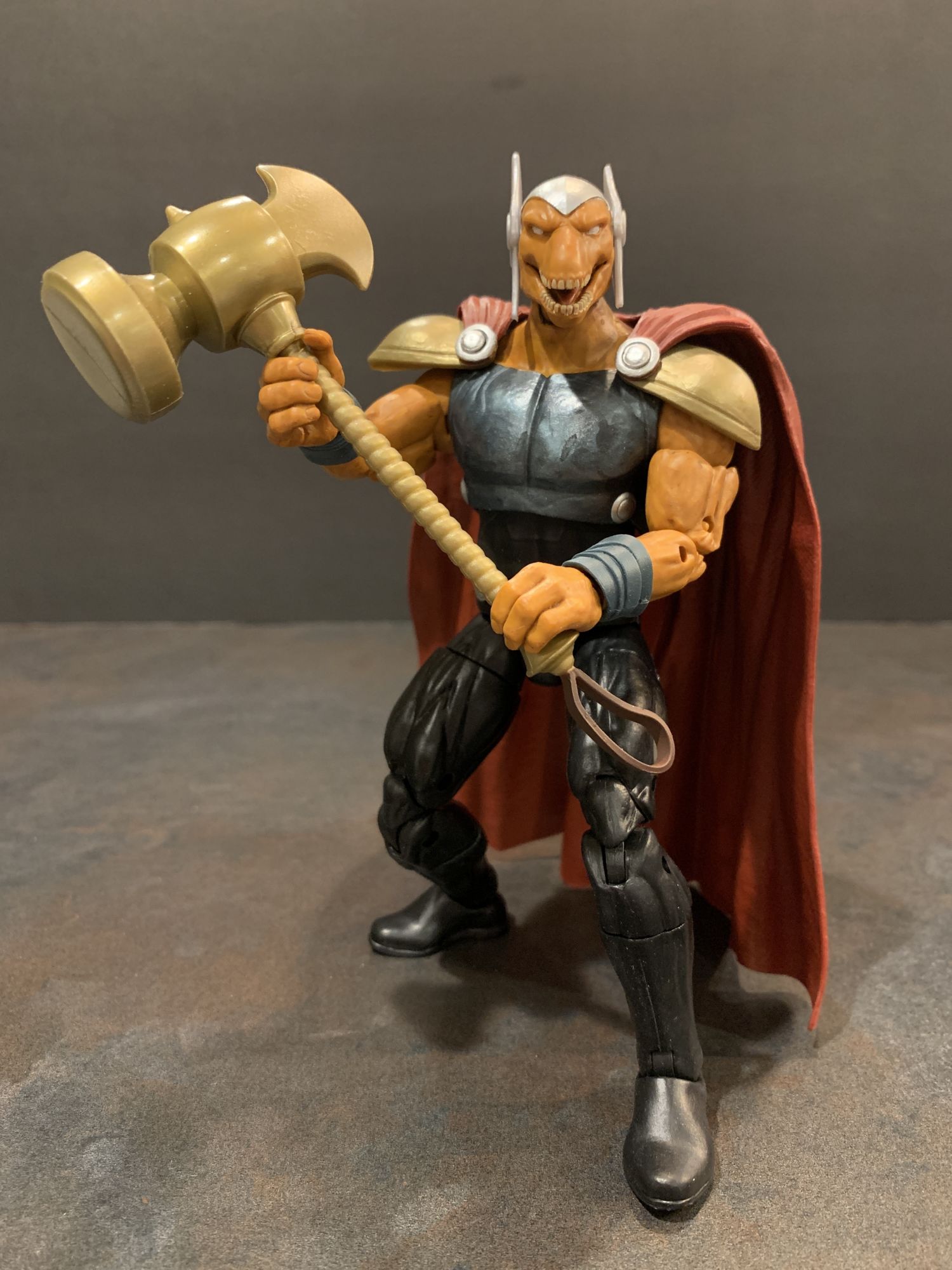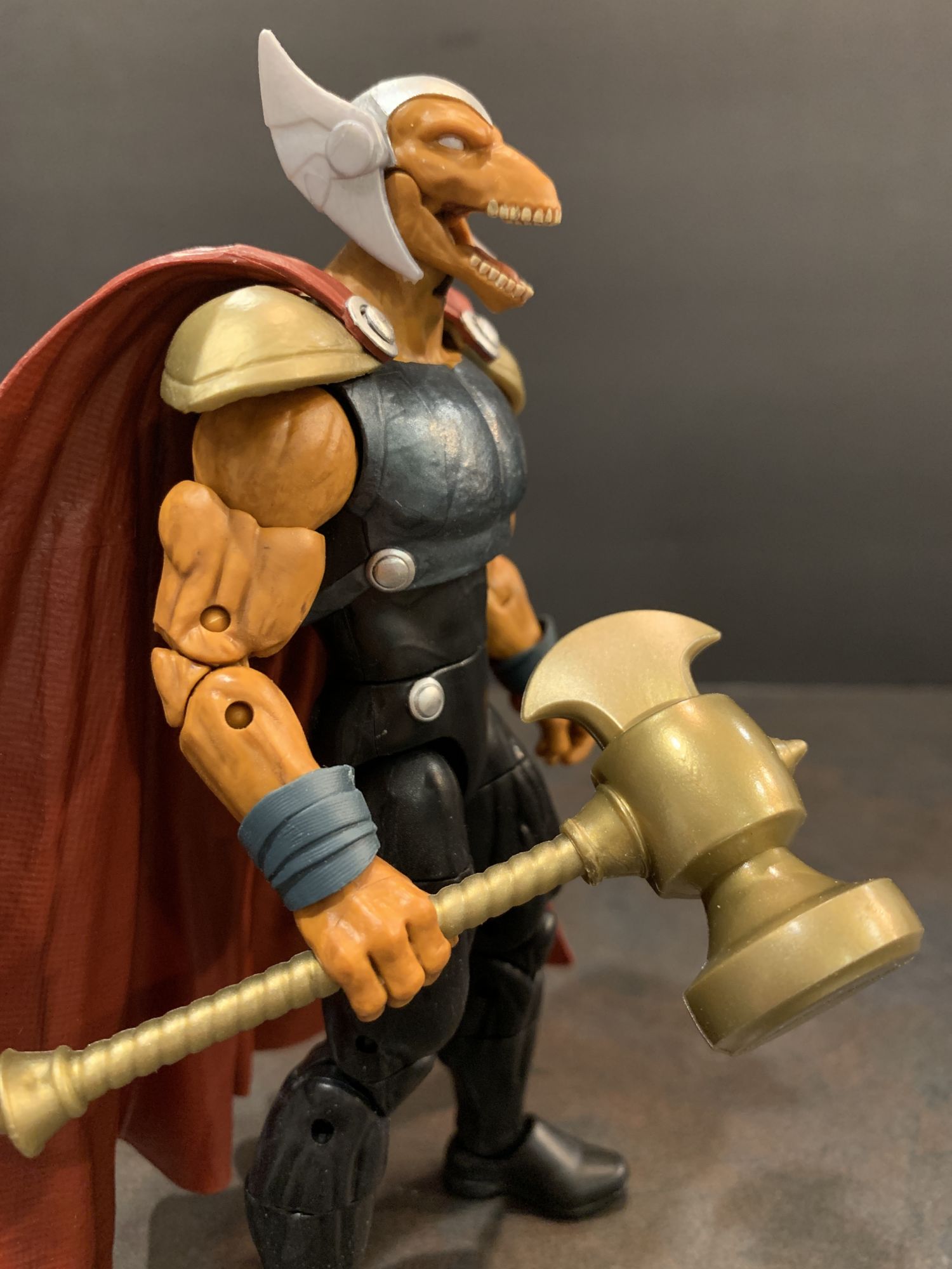 I do have emotional ties to this Beta Ray Bill figure however. What a great figure. The cape is a tad cumbersome, but besides that there are no problems here. He holds his hammer well, he has great range of motion and great poseibility in every limb. And that articulated jaw makes me swoon. This is the best figure of the wave by far.