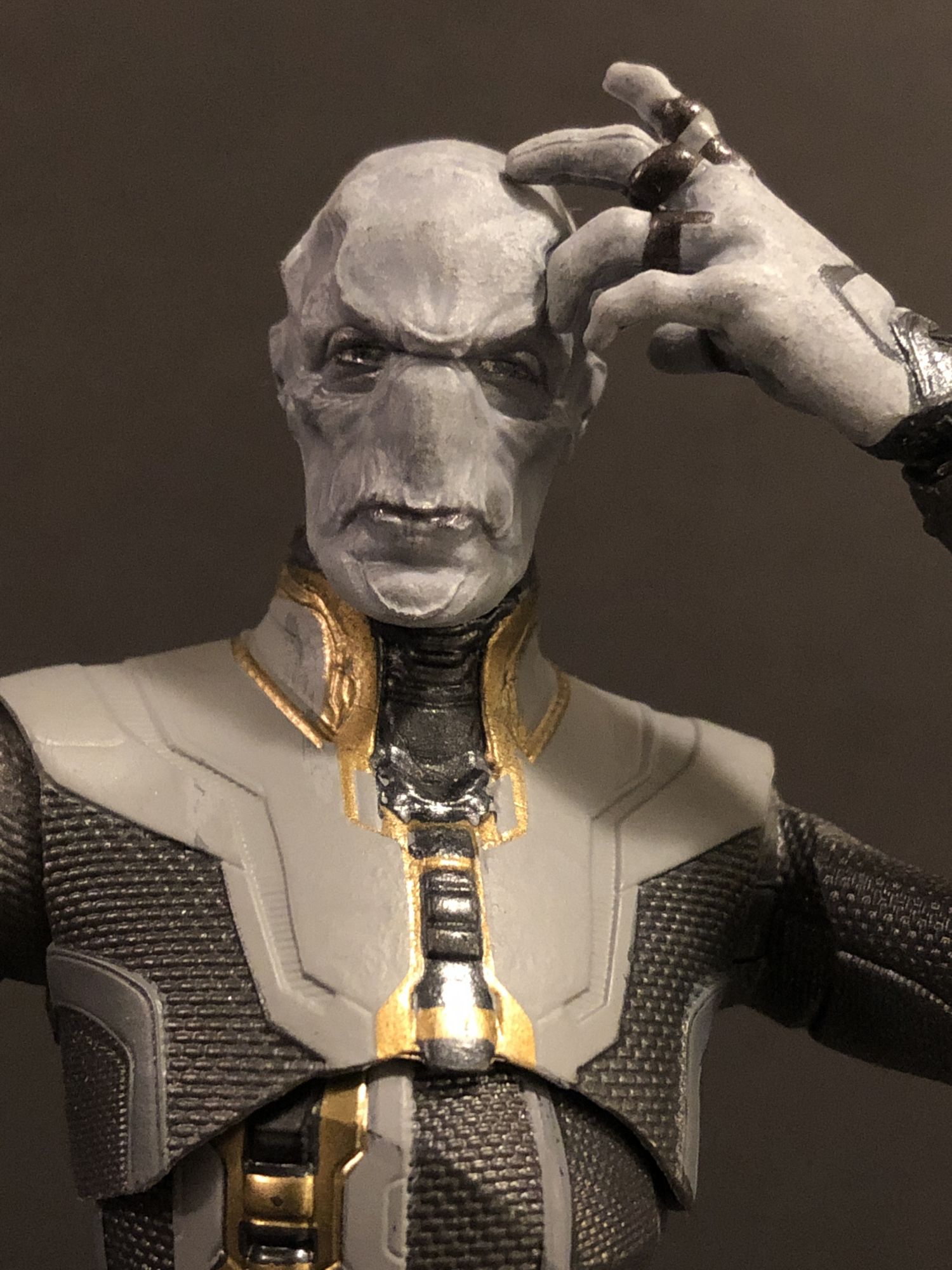 Infinity War's regal Squidward Ebony Maw is next, and he is perfect. One of the best sculpts they have done this year so far, this is a great figure. The paint job on this figure is what really sells it.The grey tones and sunken eyes really match the character as seen on screen, and it is quite easy to get him into his inquisitive poses he always strikes. This is a must-own.