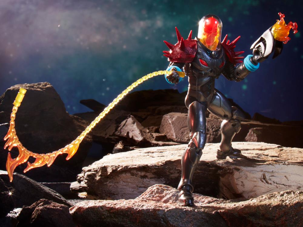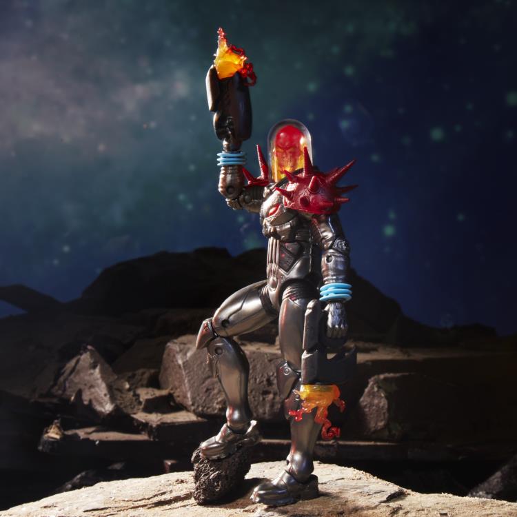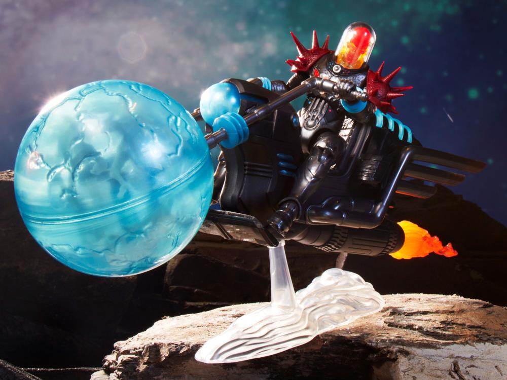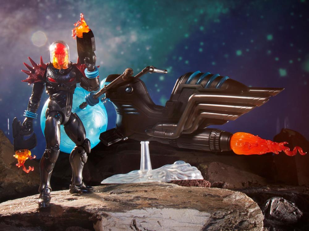 Supernatural powers transform Frank Castle from a force of retribution into an eternal Spirit of Vengeance. This quality 6-inch scale Cosmic Ghost Rider features multiple points of articulation, and comes with his Cosmic Motorcycle, a flame whip and 2 pistols with flame effects! Create flight poses with the included clear stand/base.
