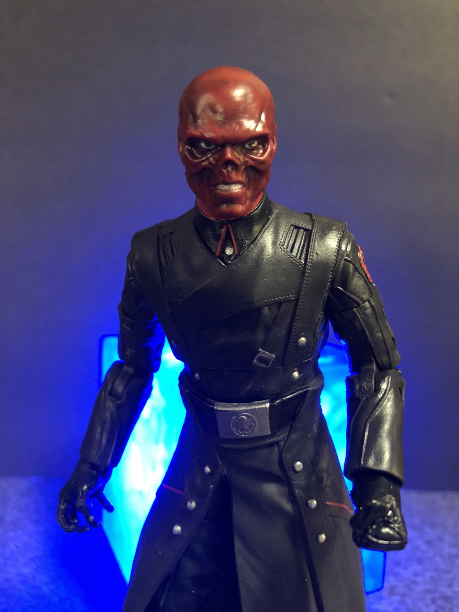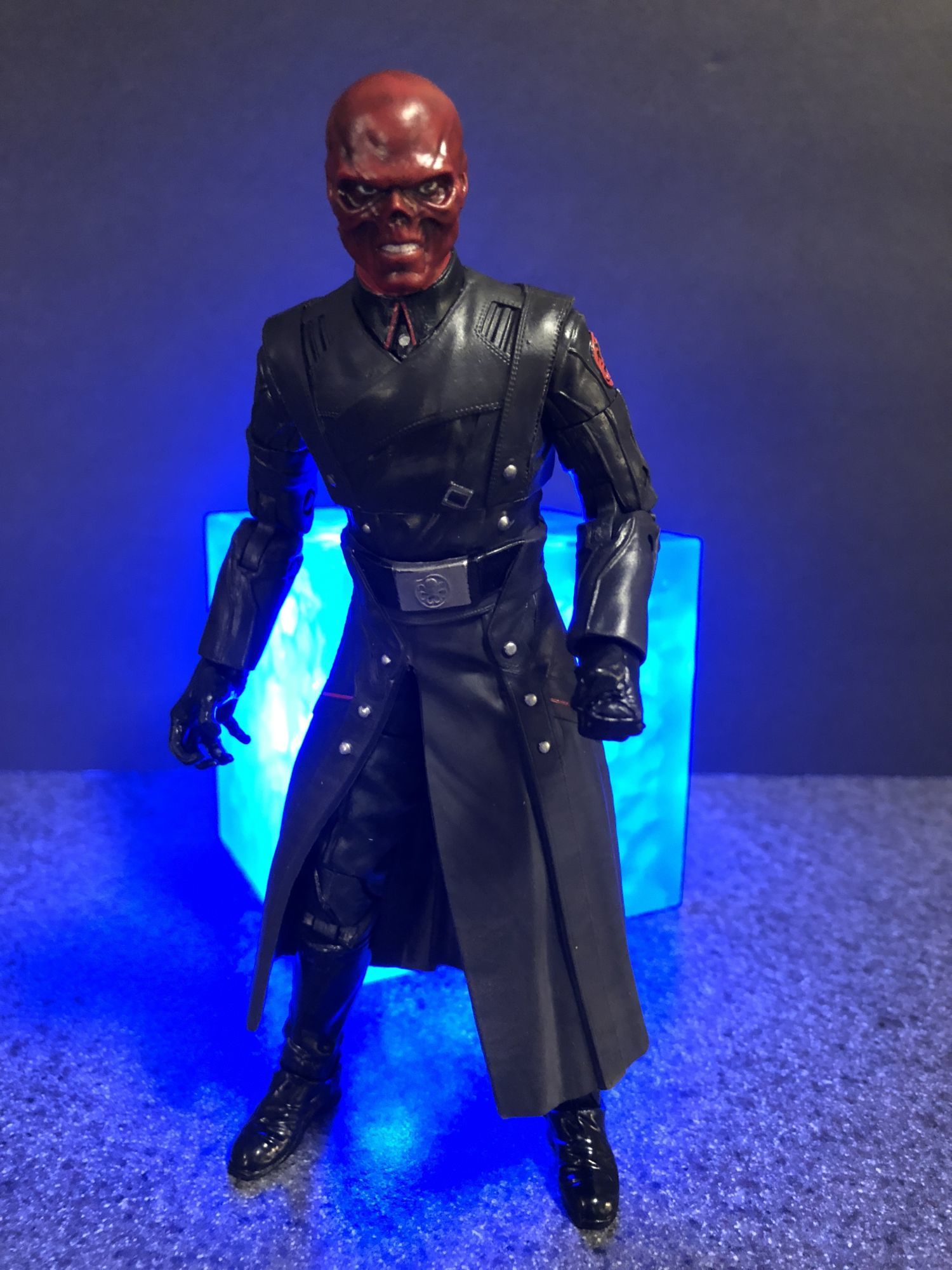 As for Red Skull himself, man am I in love with this figure. This is basically the same one that is seeing general release, with some slight differences. This one comes with only a smaller version of the Tesseract, along with a right hand that can hold it. The regular release will have interchangeable pieces to make Hydra soldiers. I don't mind that those are not here though, this is the Red Skull show. They absolutely nailed the head sculpt on this one, it is one of the best of the year so far, maybe period. His coat does limit his posability a tad, but that's ok. It is a perfect replica of the oncreen look of the character. One of the best Marvel Legends figures of the year.