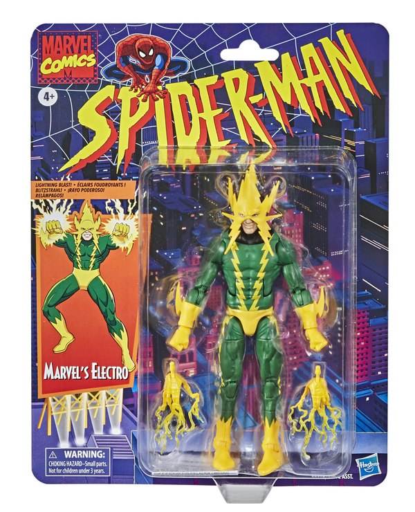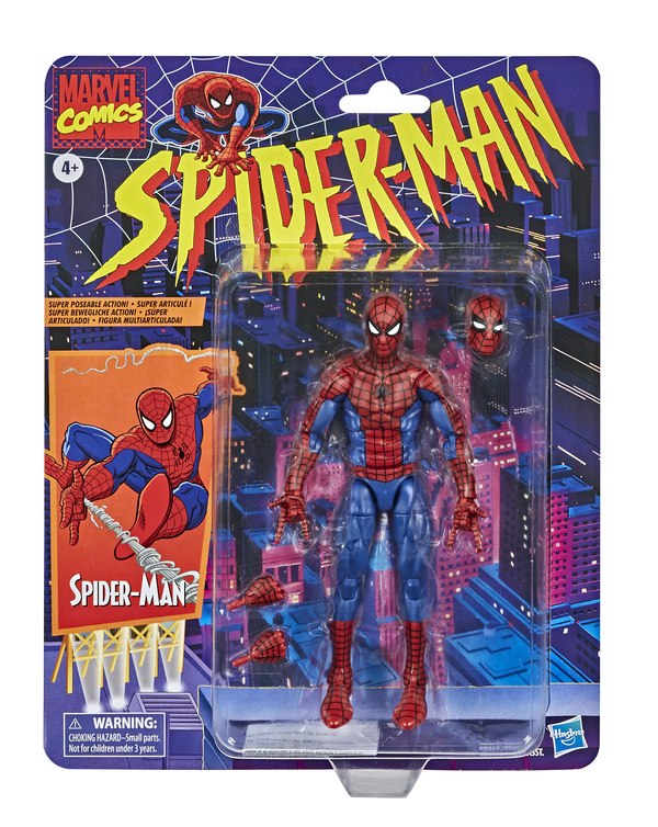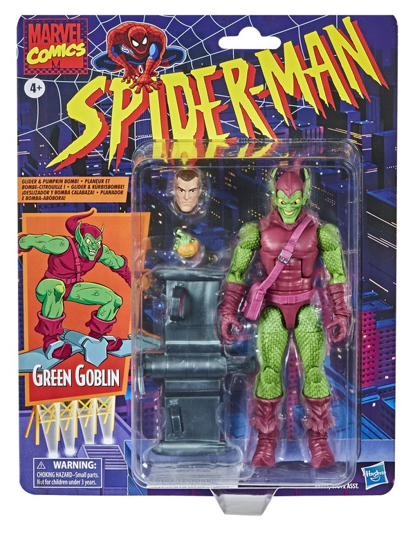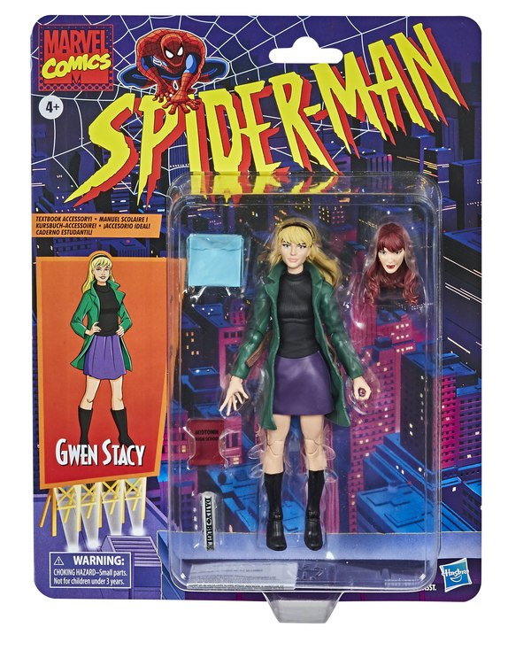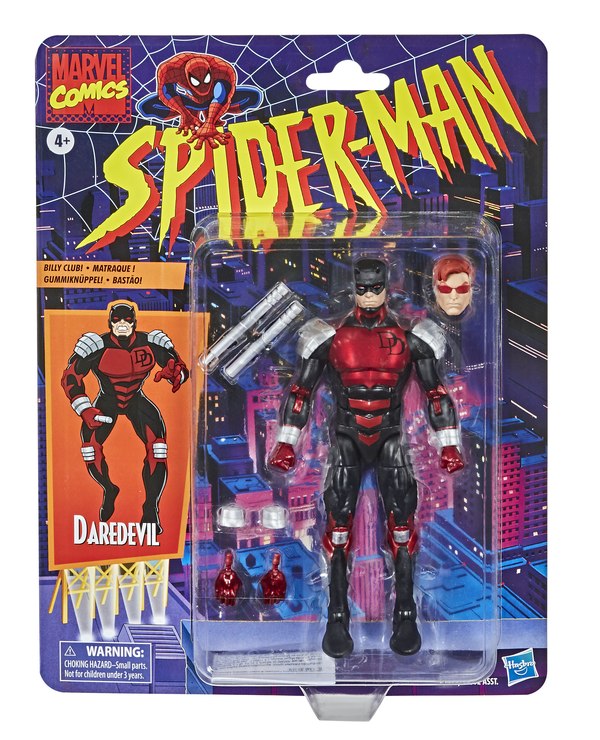 Finally, the full wave of Spider-Man Retro Marvel Legends was shown off. These come on oversized versions of the old ToyBiz card backs and are more classic versions of the characters. We already knew Spidey, Electro, Gwen Stacy (with swappable Mary Jane head), and Peter Parker were coming, and today they revealed a Classic Green Goblin and 90's Daredevil in his armor look, a figure I never thought we would see again. This version of Spidey has updated articulation as well for more posing options.