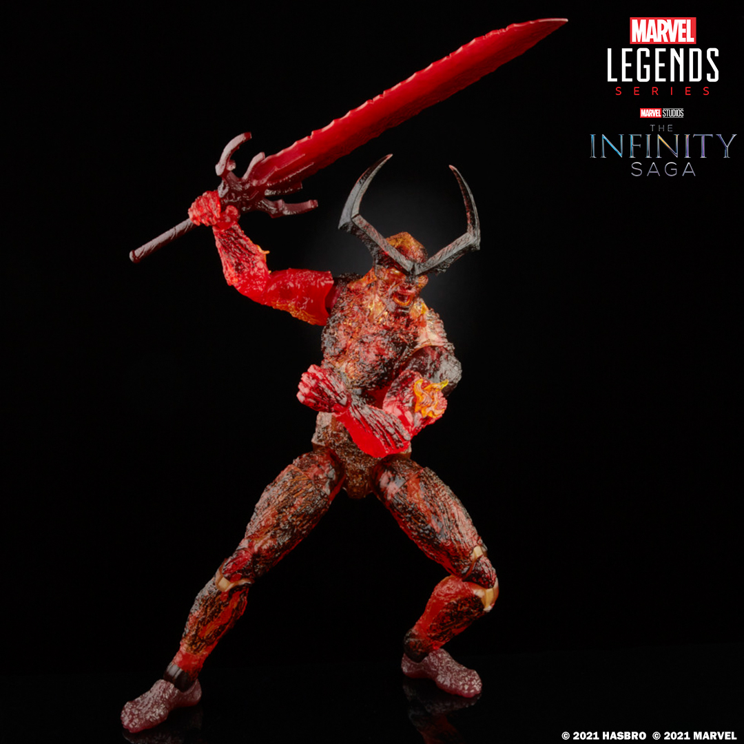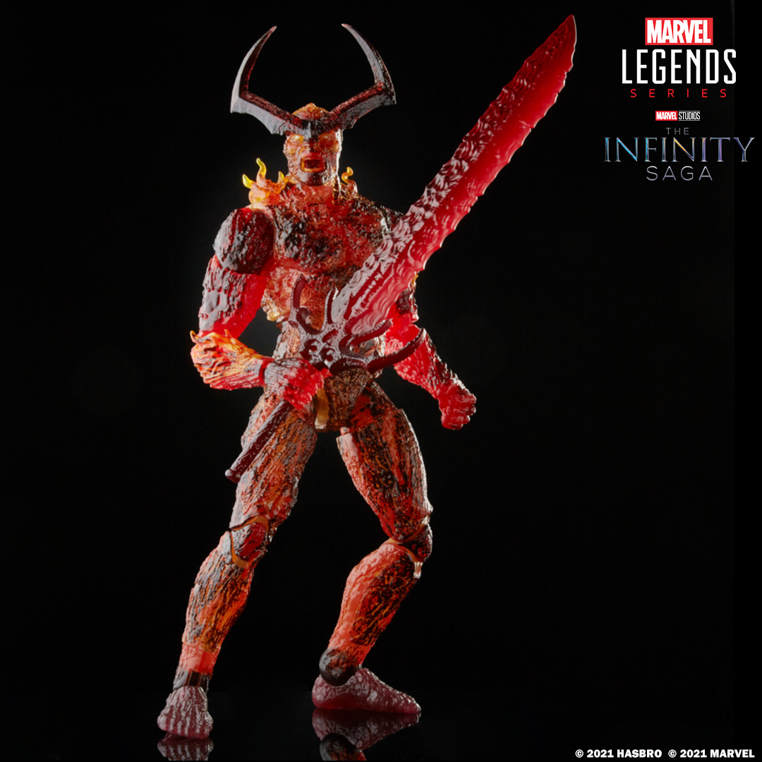 "Fans, collectors, and kids alike can enjoy this MARVEL LEGENDS SERIES 6-INCH-SCALE INFINITY SAGA SURTUR Figure, inspired by the character from MARVEL entertainment. This quality 6- inch-scale figure features premium design, detail, and multiple points of articulation for posing and display in a MARVEL collection. Includes figure and 3 accessories. Available for pre-order at Hasbro Pulse and Amazon."