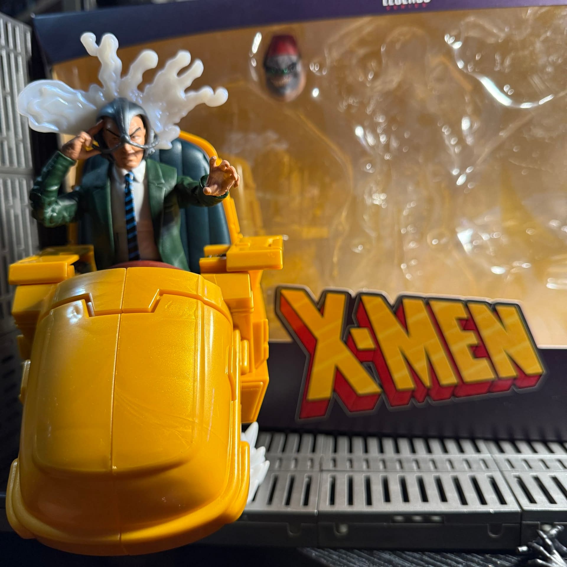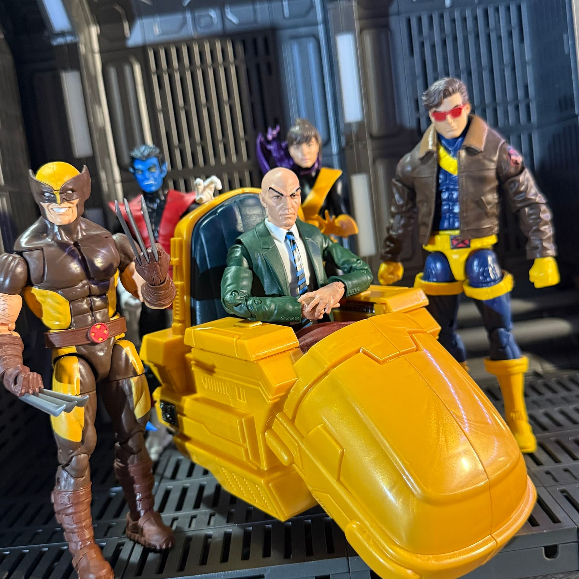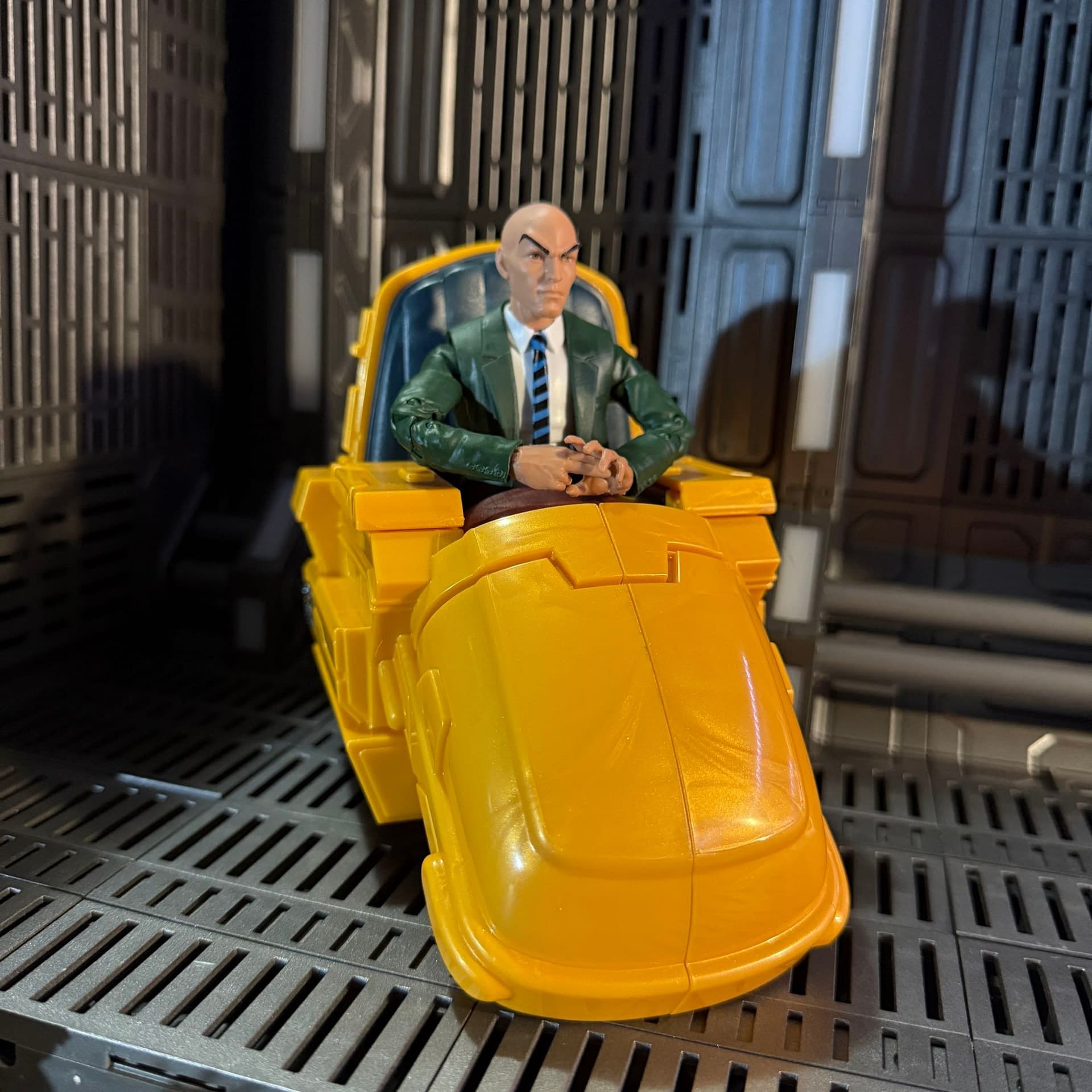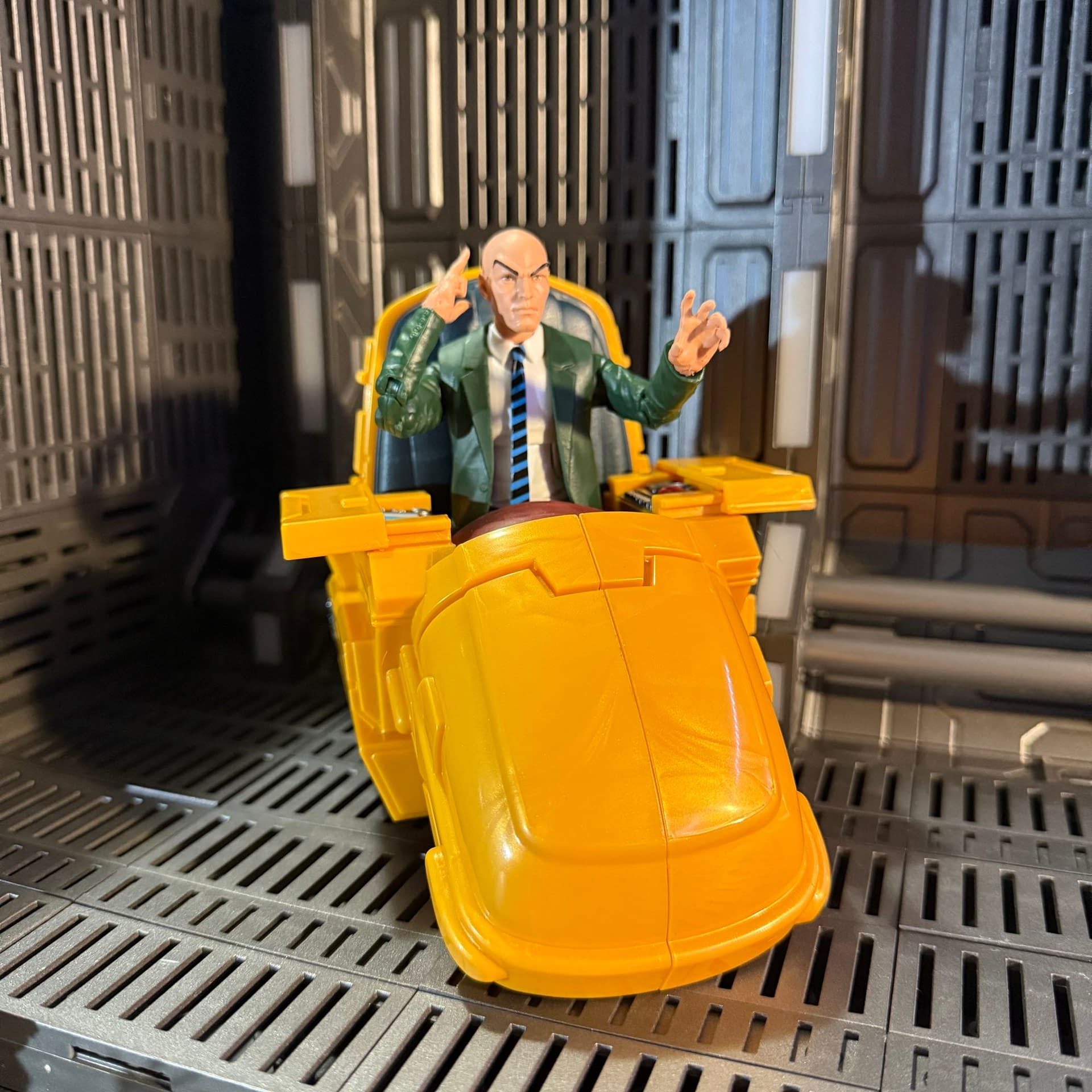 - Features Charles Xavier in his iconic yellow hover chair, inspired by comics and the Animated Series
