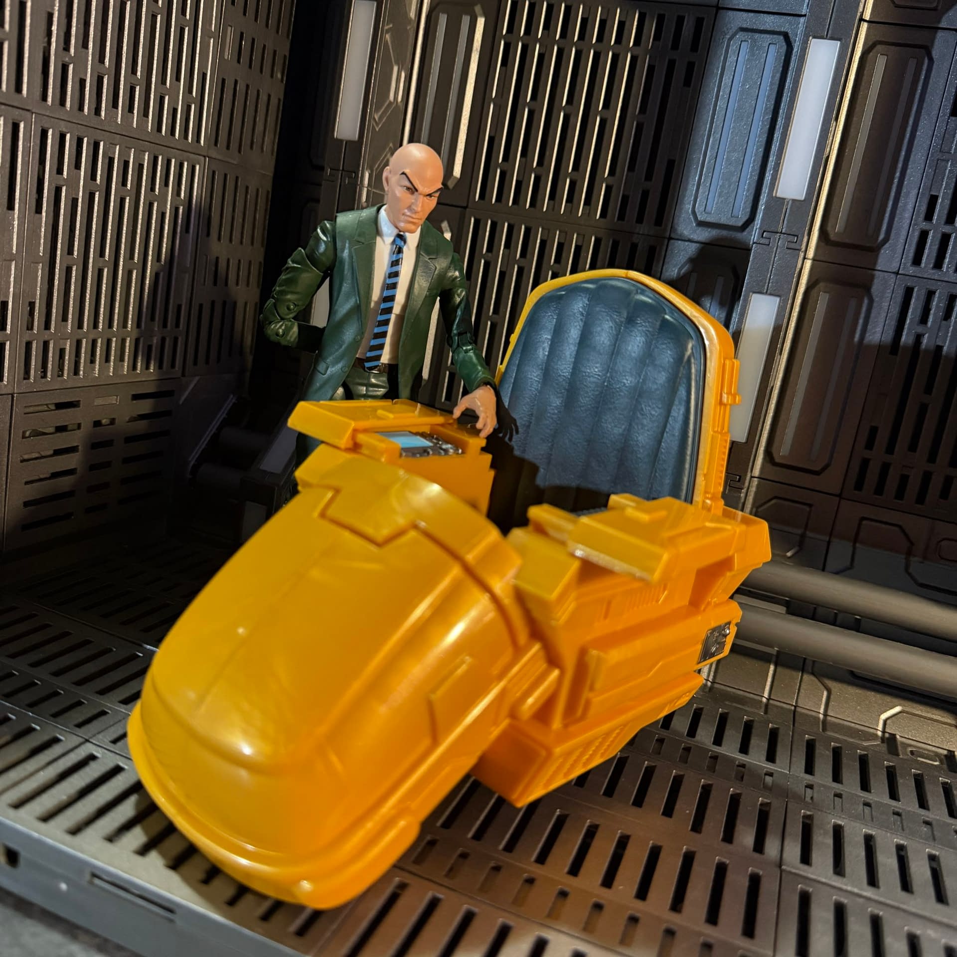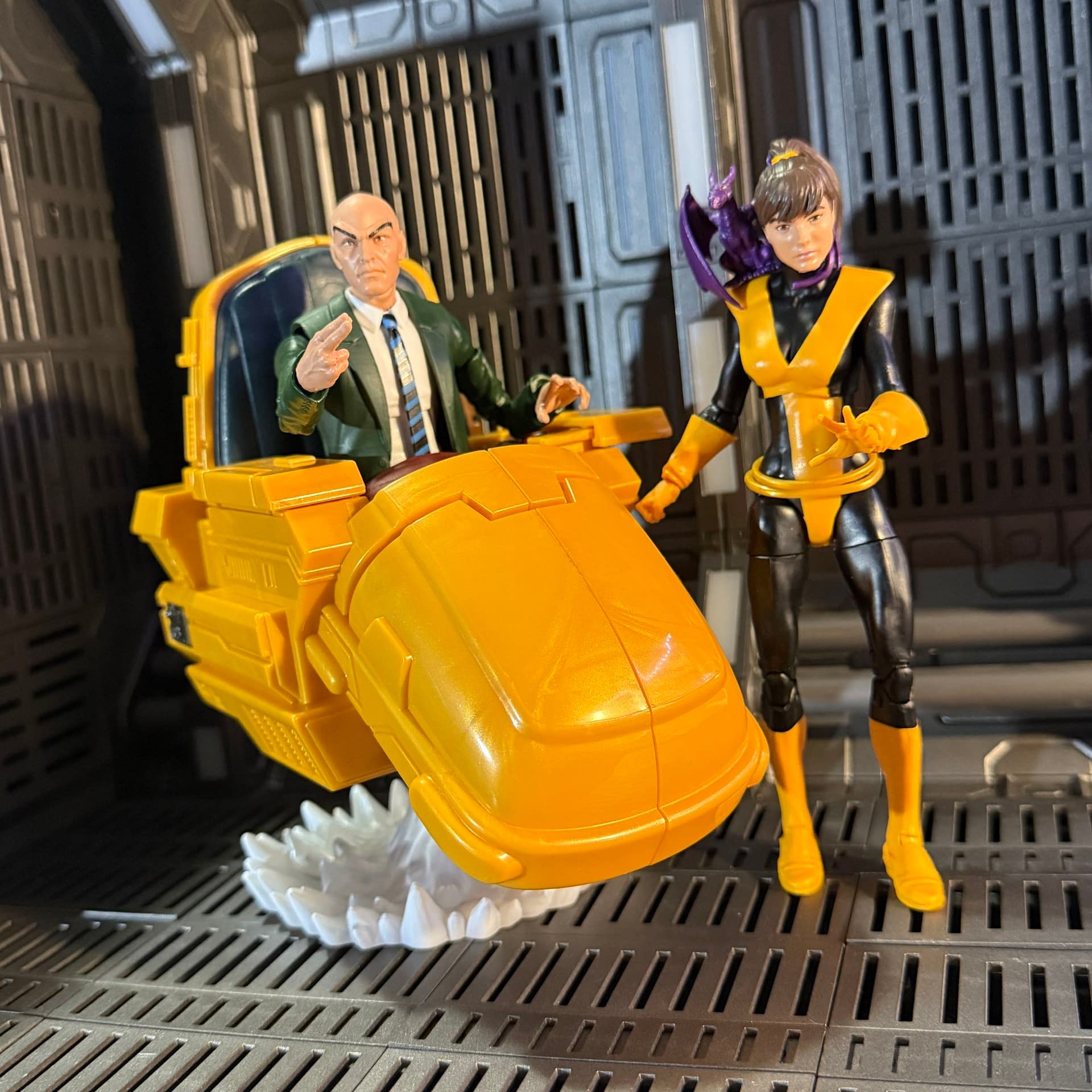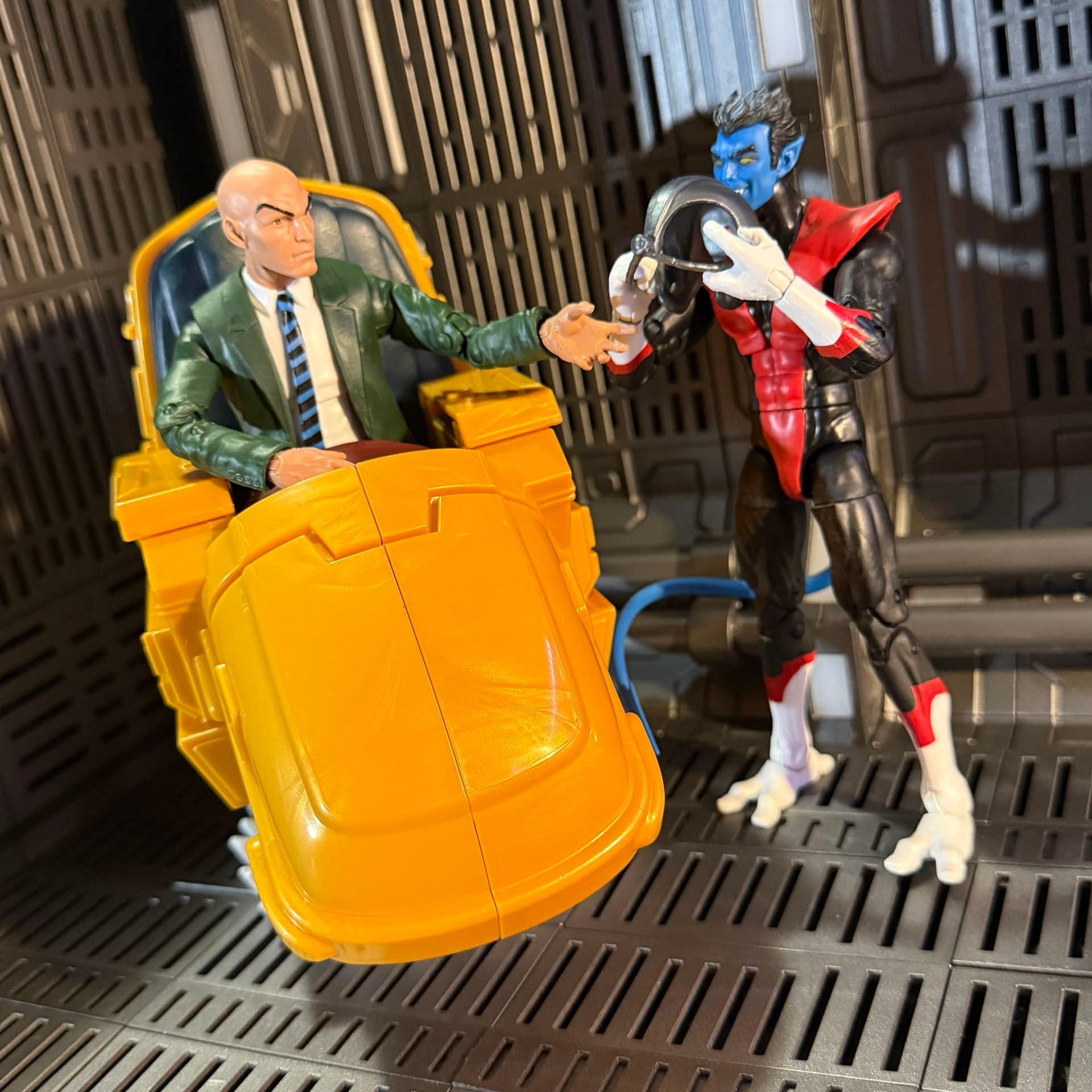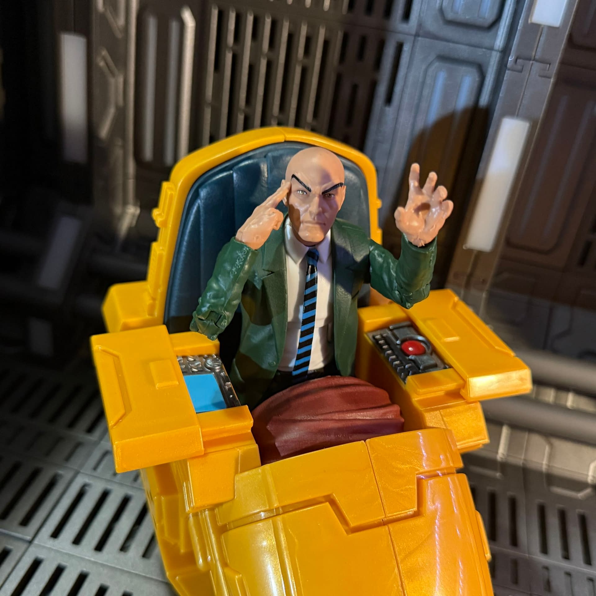 - Features Charles Xavier in his iconic yellow hover chair, inspired by comics and the Animated Series