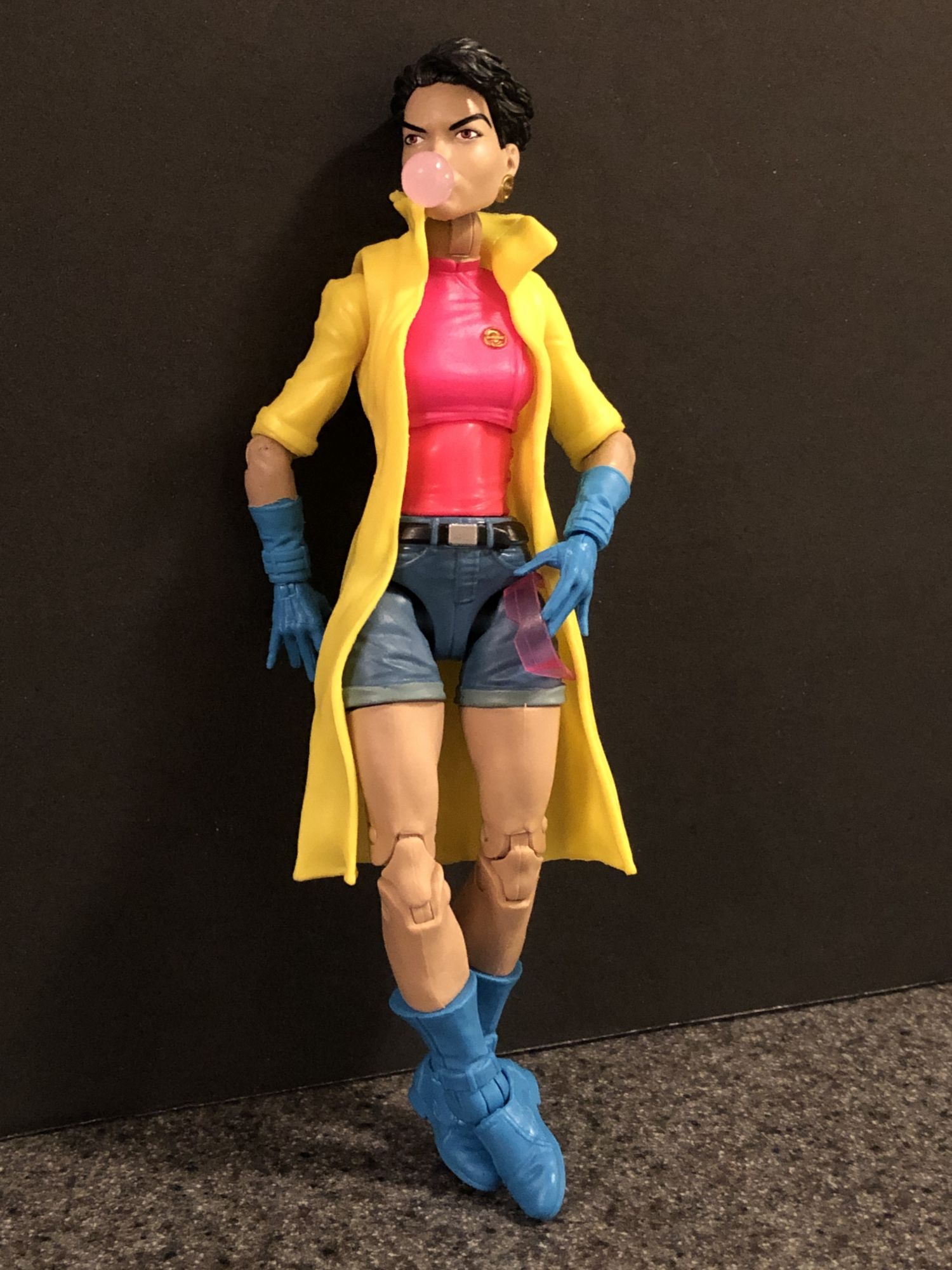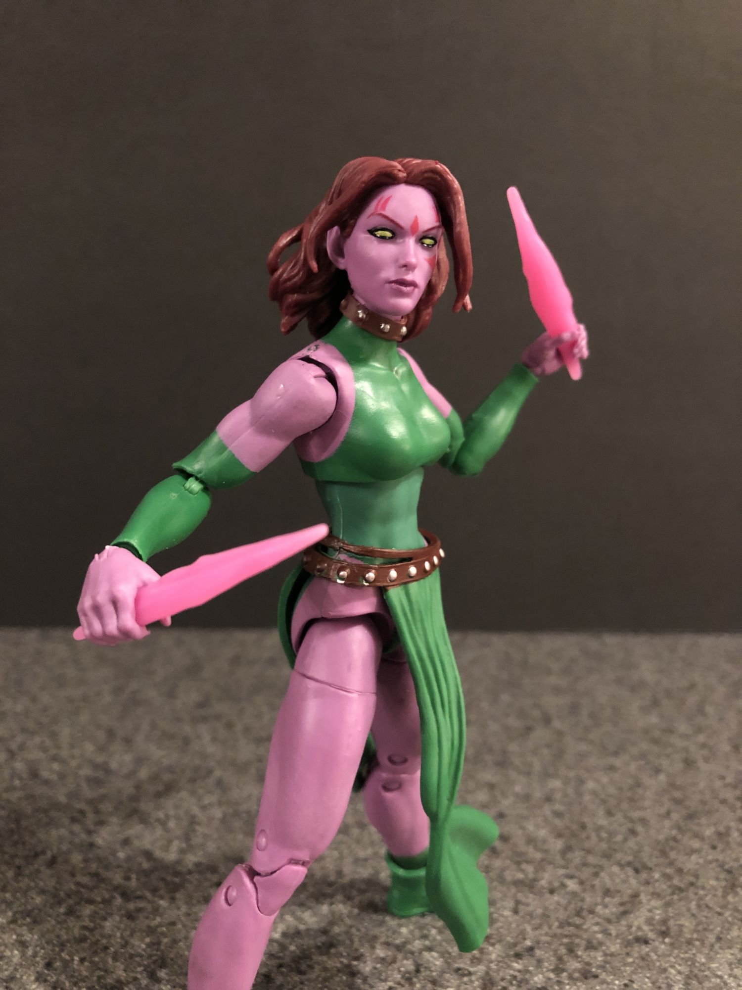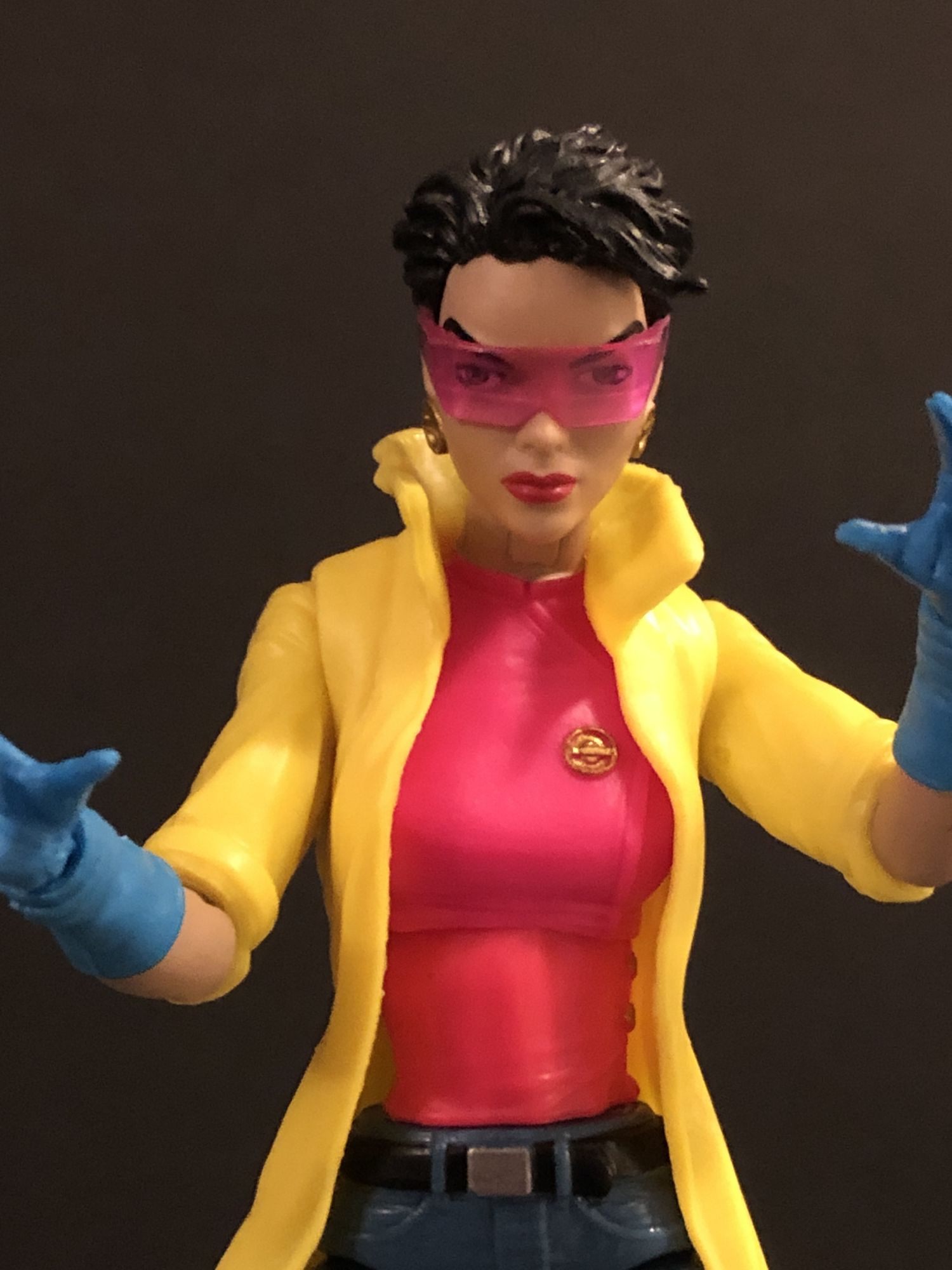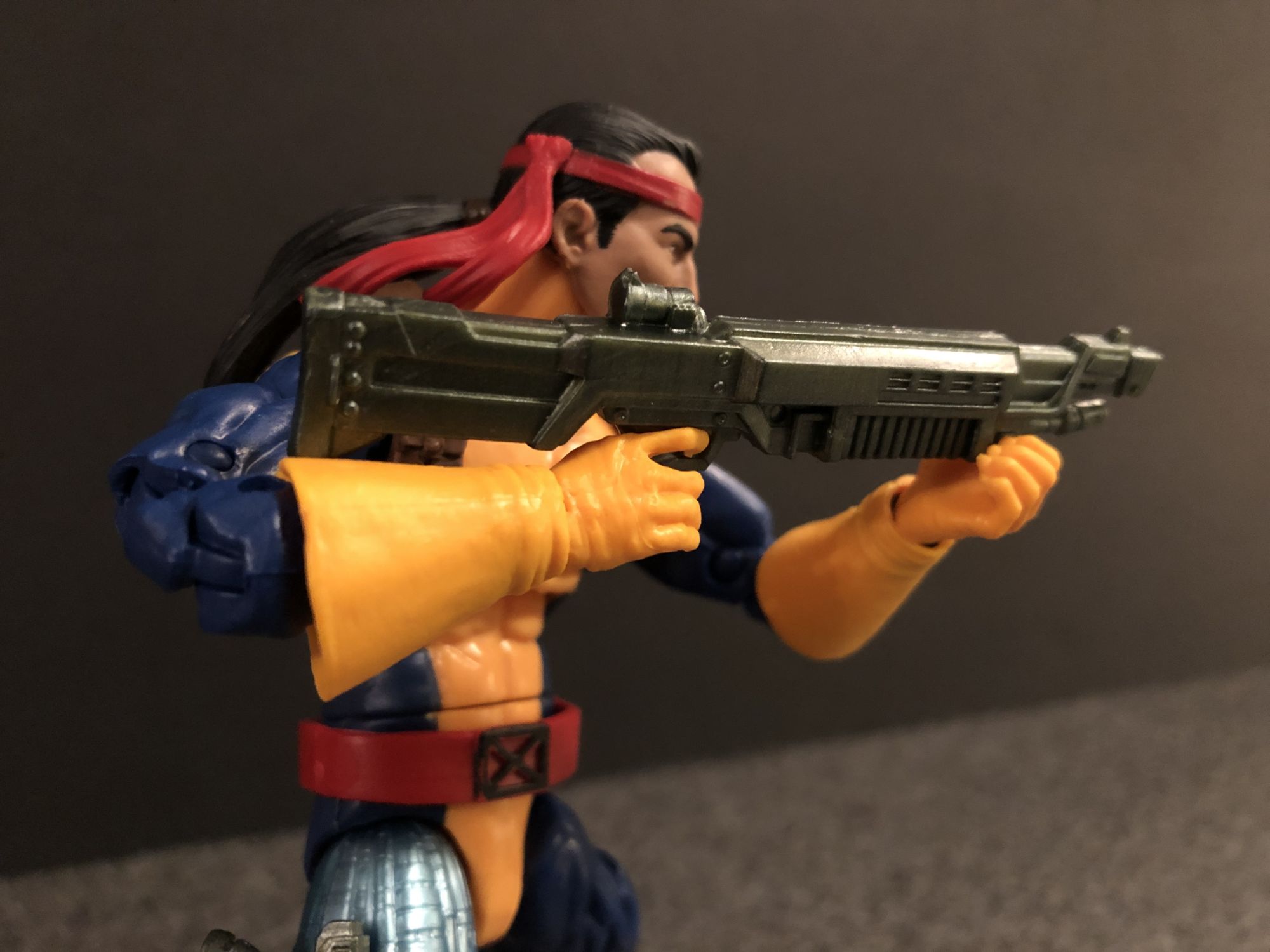 Two characters I was not excited for and was pleasantly surprised by were Skullbuster and Blink. I haven't thought about Skullbuster in years, but man did they do him justice with this figure. The deco on this figure is way better than you would think it would ever be for him, and the interchangeable heads are both great. Bulkier than he looks, he is fun to put in a menacing pose, even though his tan colored gun is silly looking. it is a little tough to get the thing into his hand, but once its in there once its no trouble after that. He is just a fun looking figure. Also better than expected is Blink. Her little energy circle is a cool addition, and I would expect us to get one with Nightcrawler when he is released too. Her skirt is a little loose on her hips and is annoying to move around, but the look of Blink is fantastic. I never thought I would need a Blink to be honest, but now I cannot imagine my mutant Marvel Legends shelf without her.