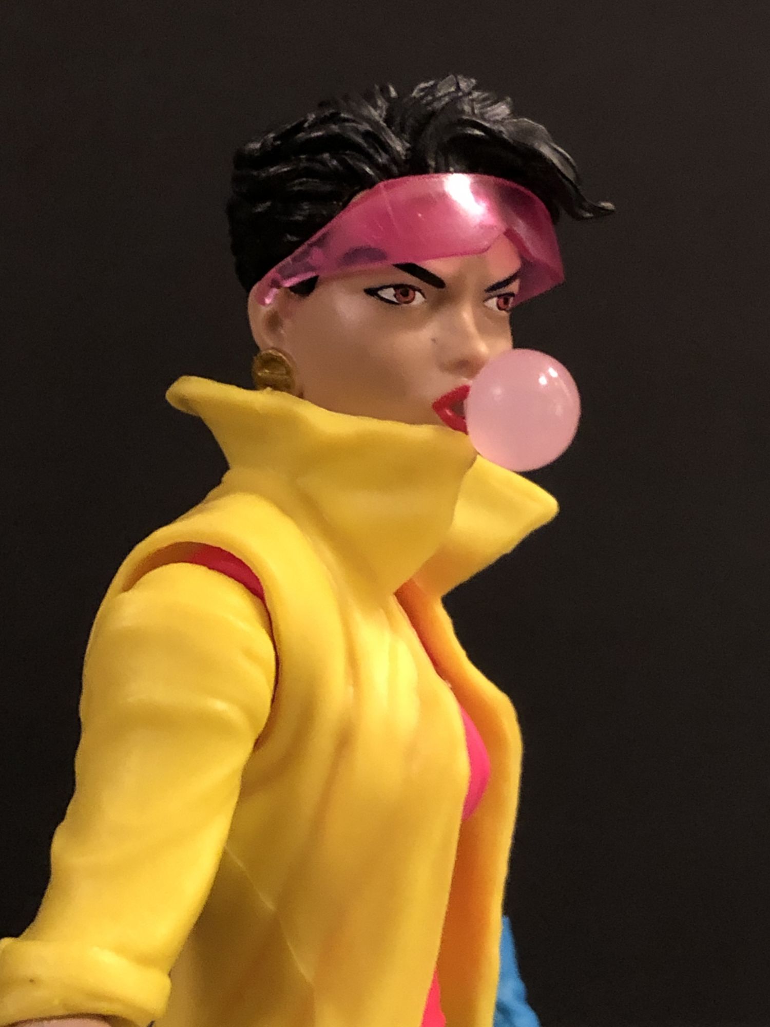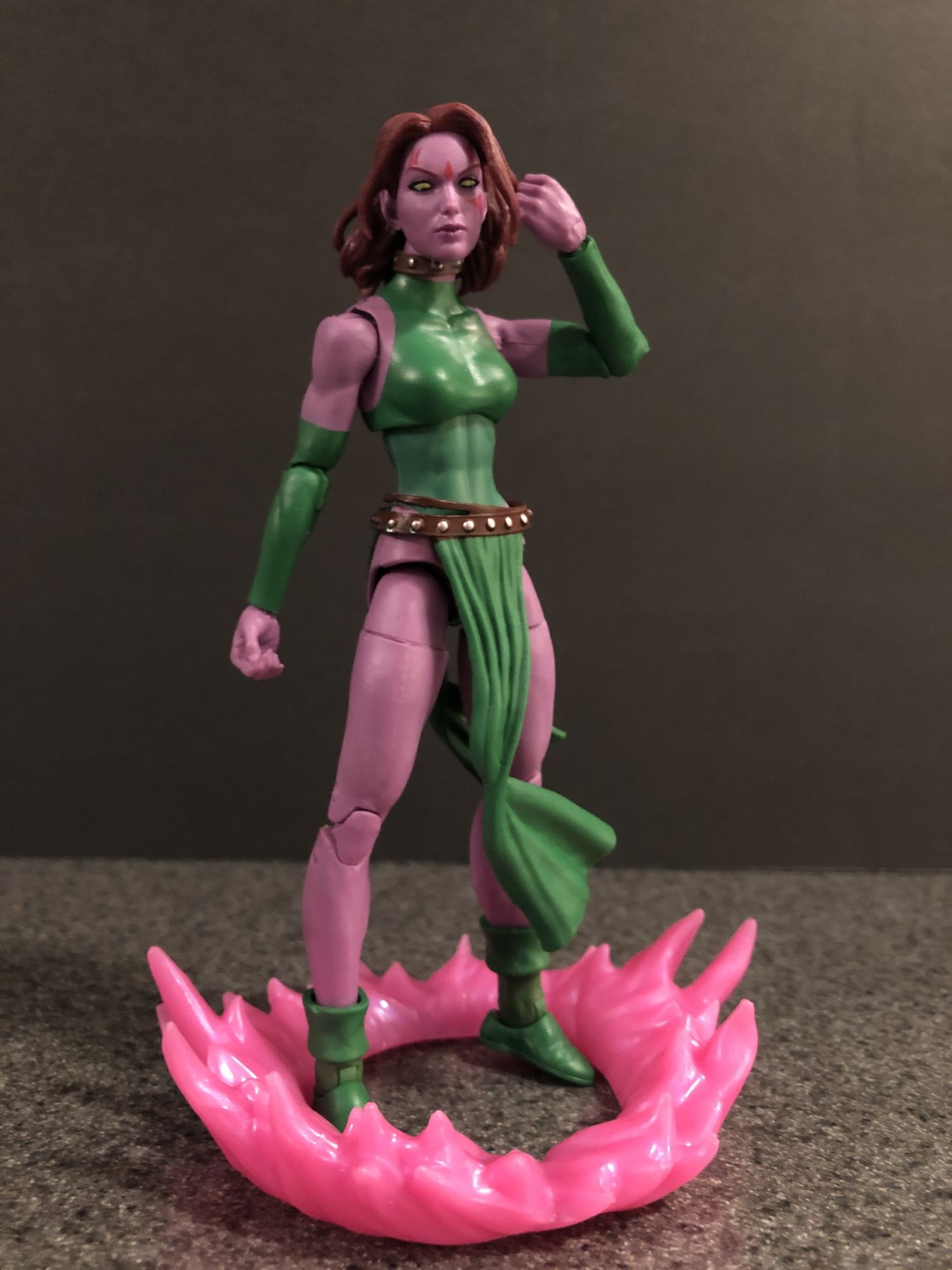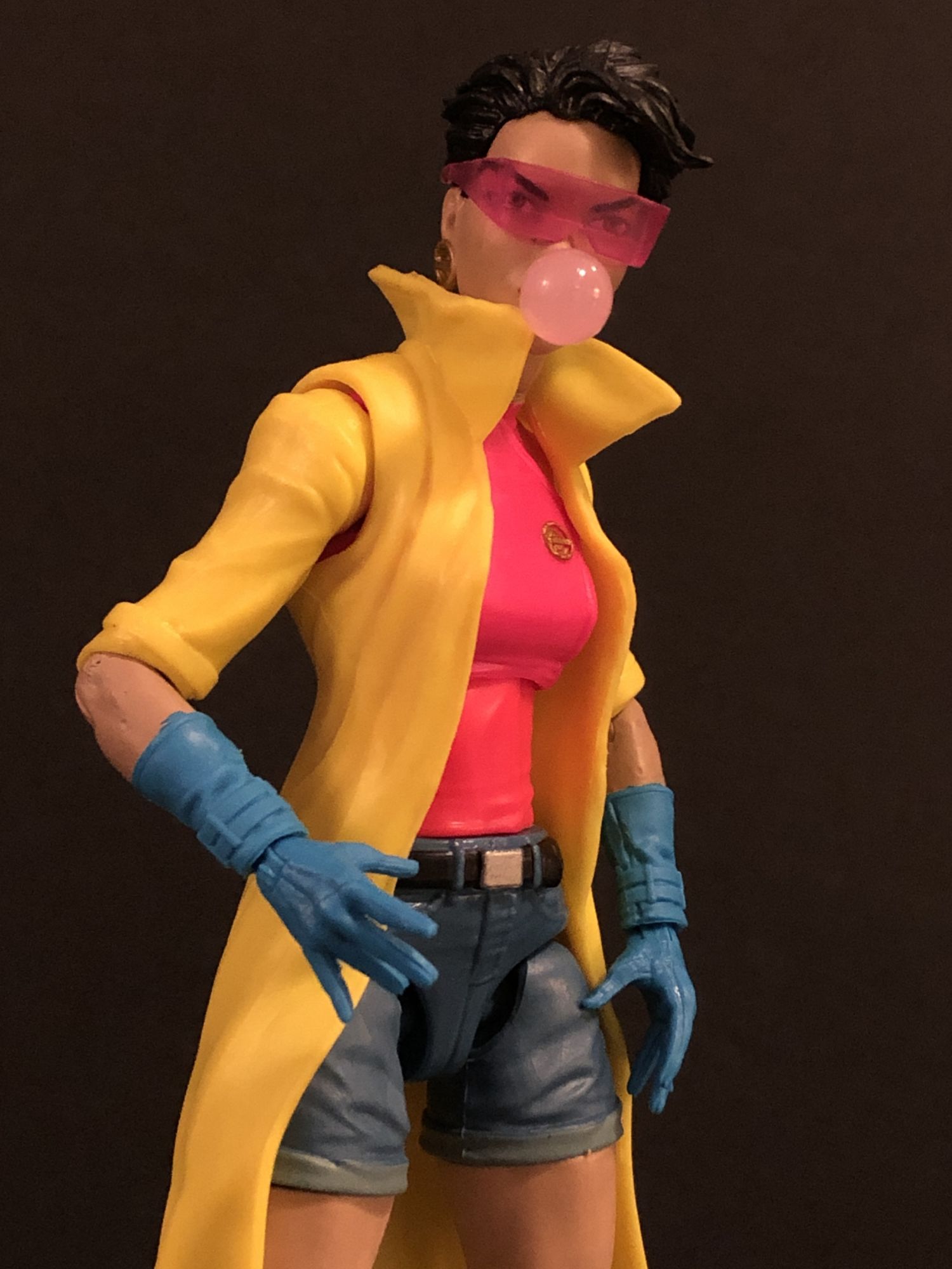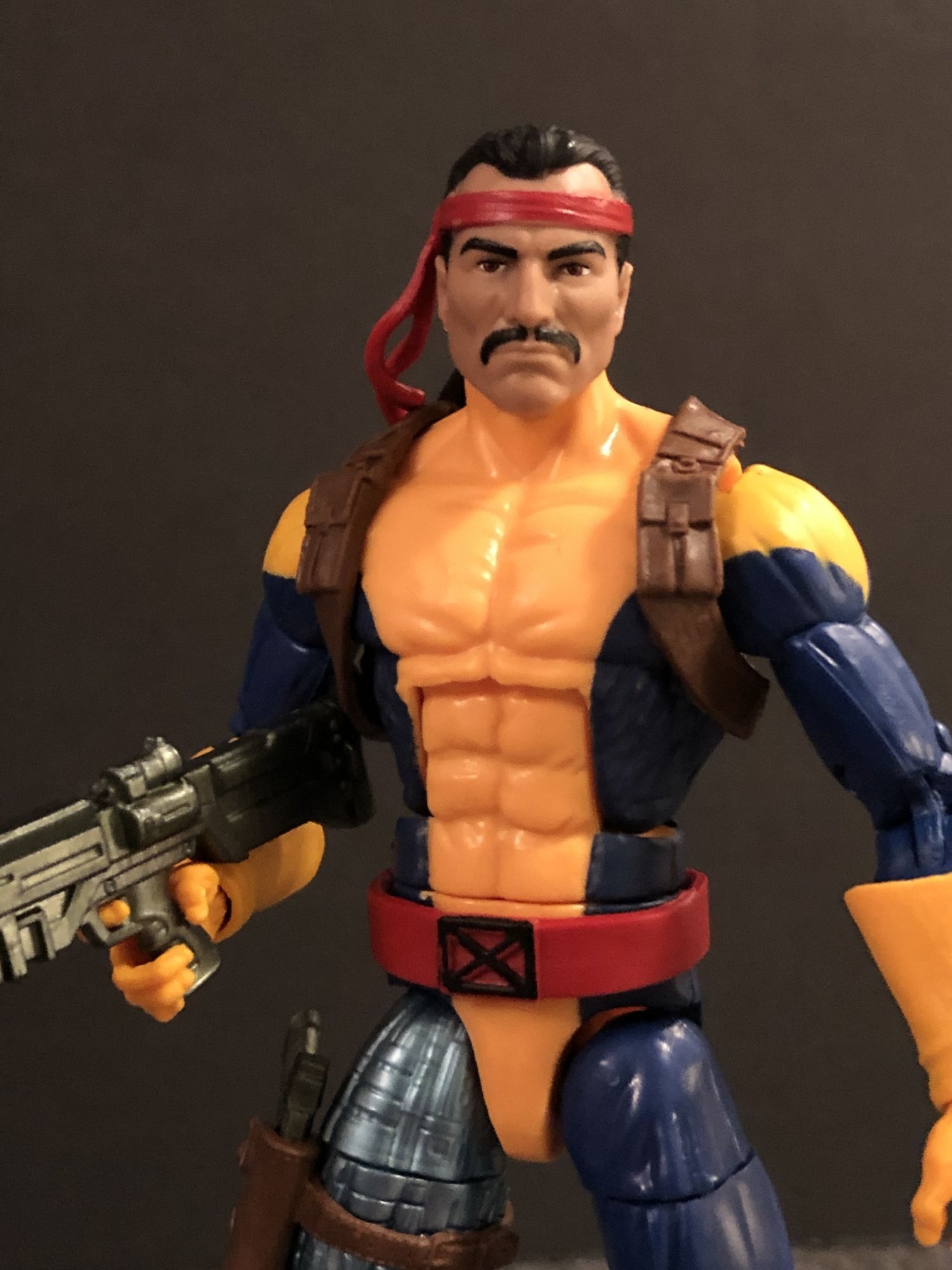 Two characters I was not excited for and was pleasantly surprised by were Skullbuster and Blink. I haven't thought about Skullbuster in years, but man did they do him justice with this figure. The deco on this figure is way better than you would think it would ever be for him, and the interchangeable heads are both great. Bulkier than he looks, he is fun to put in a menacing pose, even though his tan colored gun is silly looking. it is a little tough to get the thing into his hand, but once its in there once its no trouble after that. He is just a fun looking figure. Also better than expected is Blink. Her little energy circle is a cool addition, and I would expect us to get one with Nightcrawler when he is released too. Her skirt is a little loose on her hips and is annoying to move around, but the look of Blink is fantastic. I never thought I would need a Blink to be honest, but now I cannot imagine my mutant Marvel Legends shelf without her.