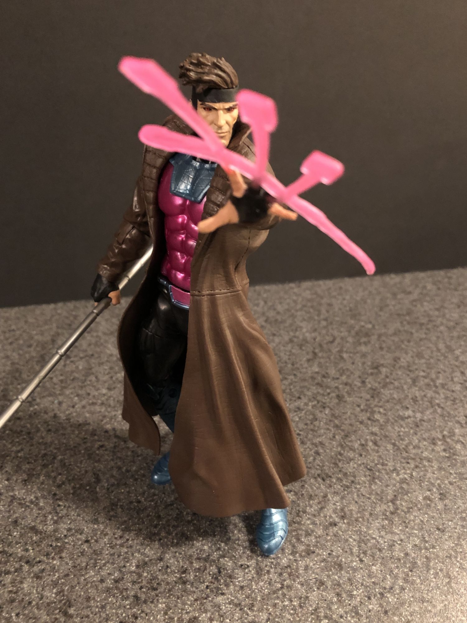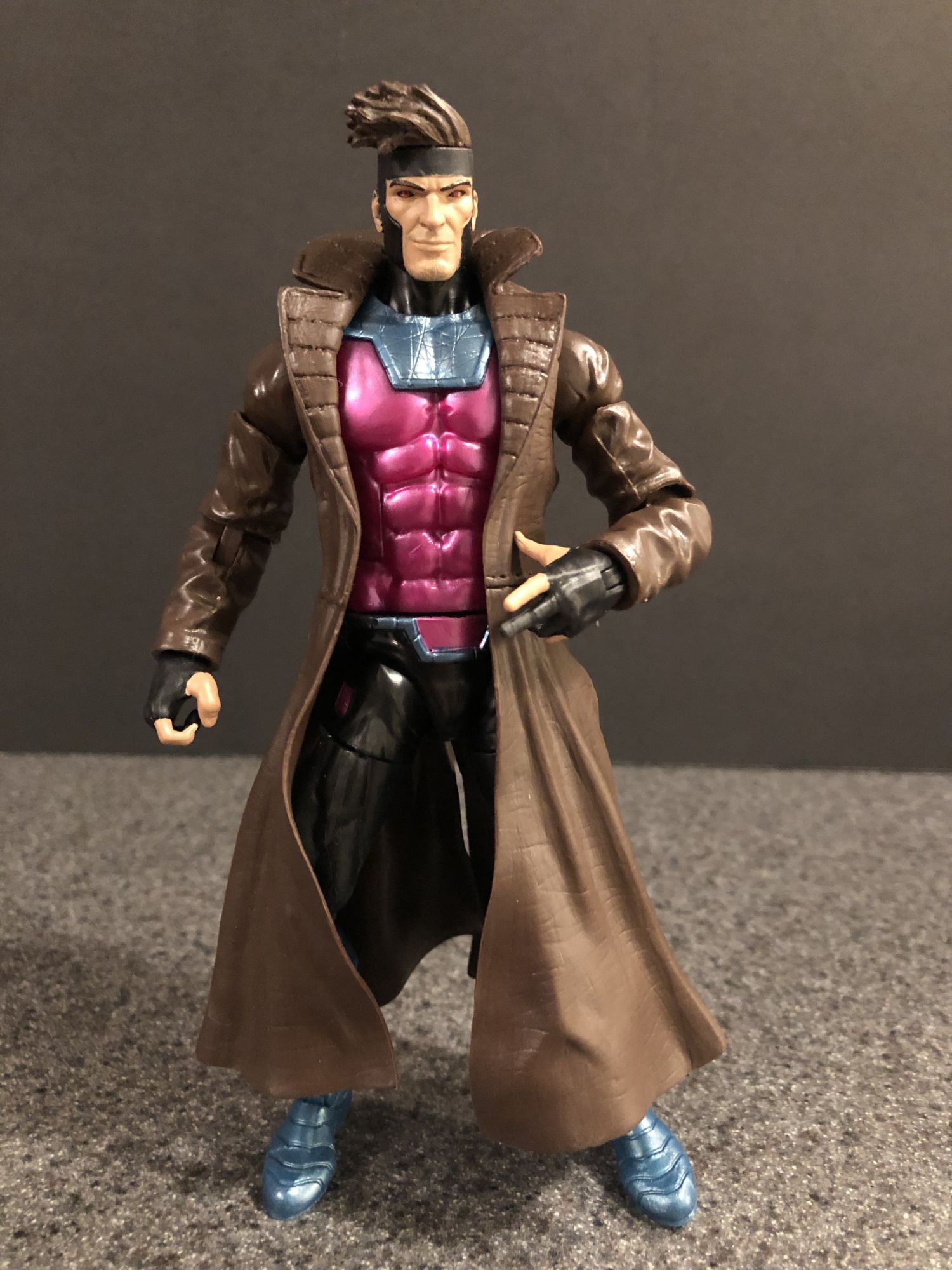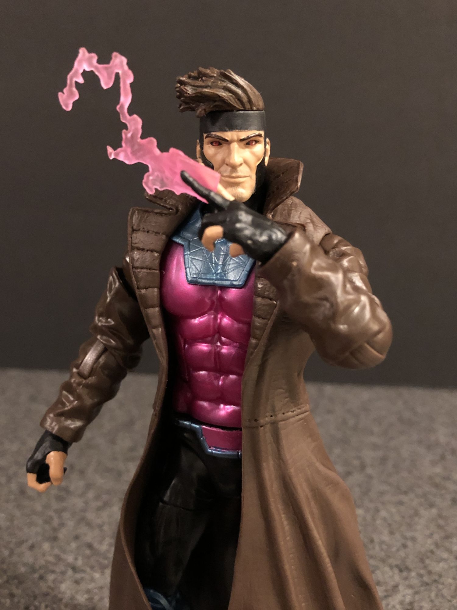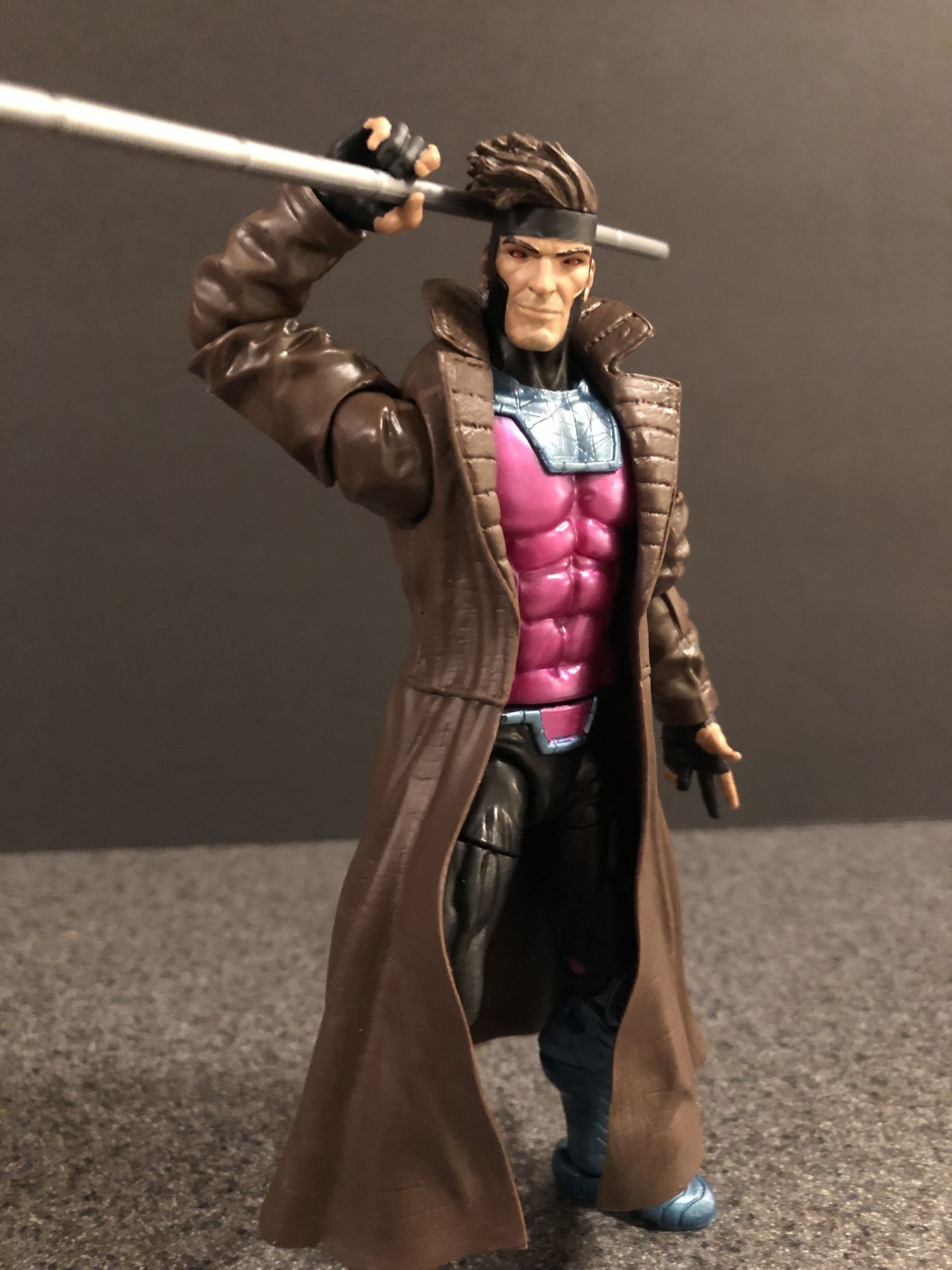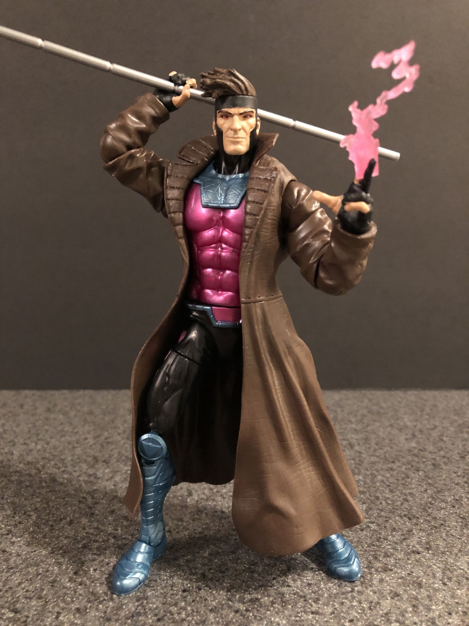 Now the heavy hitter of this Marvel Legends wave. Jubilee comes with her duster, swappable heads, and three extra sets of her pink glasses. All of it is perfect. The bubblegum head is so great, and she is so easy to pose. I never finished the old BAF from a couple years ago, and this release seems better anyway. This will be the definitive version of Jubes forever, and probably will never be topped. Gambit was the figure I was most excited for. I have always been a huge fan of the character, as I am a sucker for a thief with a heart of gold. This one, like Jubes, will not be topped. While I wish the coat was a little less stiff, it is not a dealbreaker. Everything else about this one os great. I love, love, love that they gave hi a hand that can hold his charged card between his fingers. The headsculpt with him in his head sock is awesome, his body armor is fantastic and perfectly colored, his bow staff is great. The card throwing hand is a little odd, I am not sure how I feel about that with these latest figures, but I just won't use it. It only adds extra value. I could not be happier with this one.