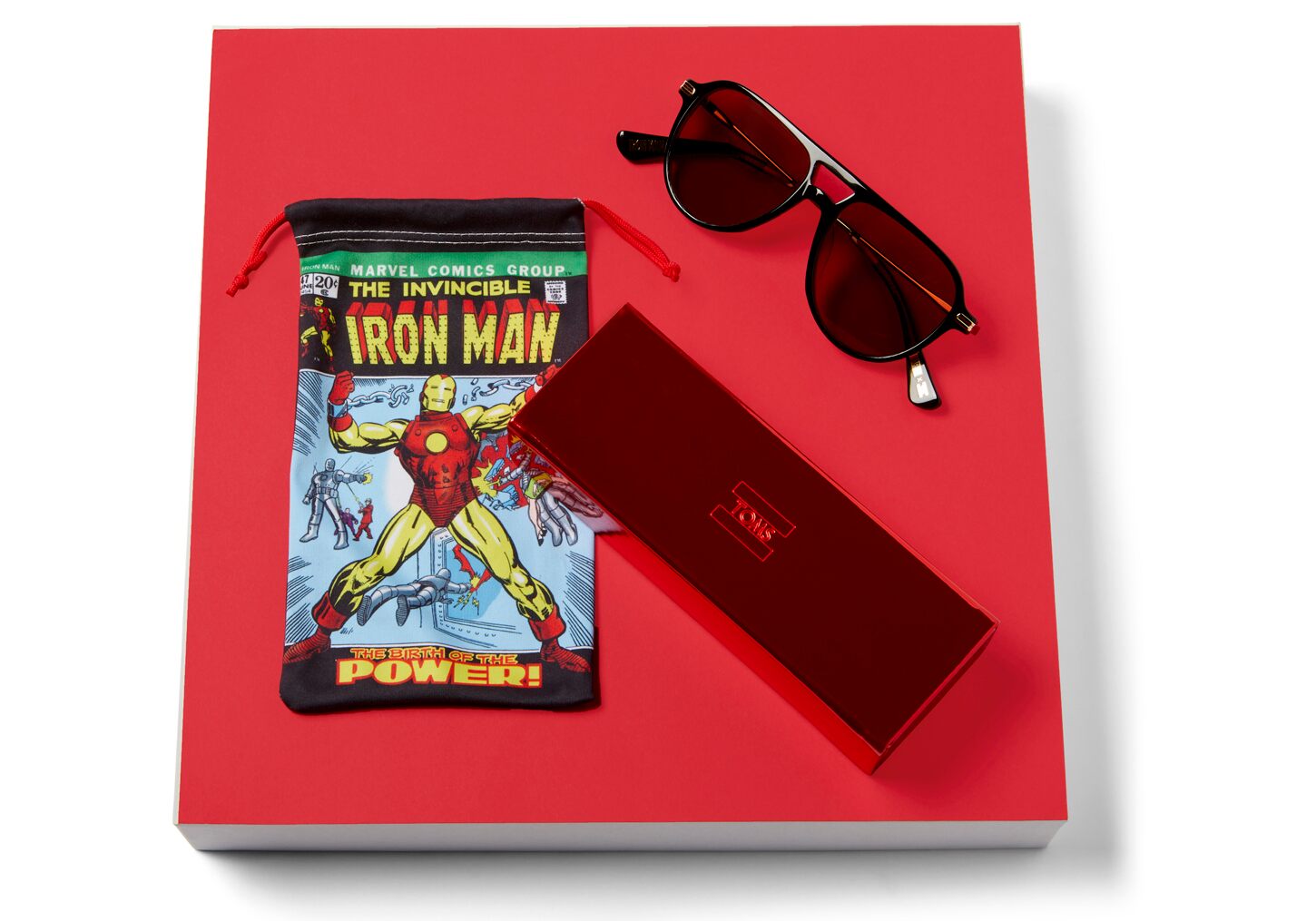 "And because the best summer sidekick is a pair of sunnies, TOMS is introducing two new Iron Man and Black Widow-themed sunwear styles, featuring action-packed artwork, color temple tips, and custom microfiber and metallic red carrying cases."