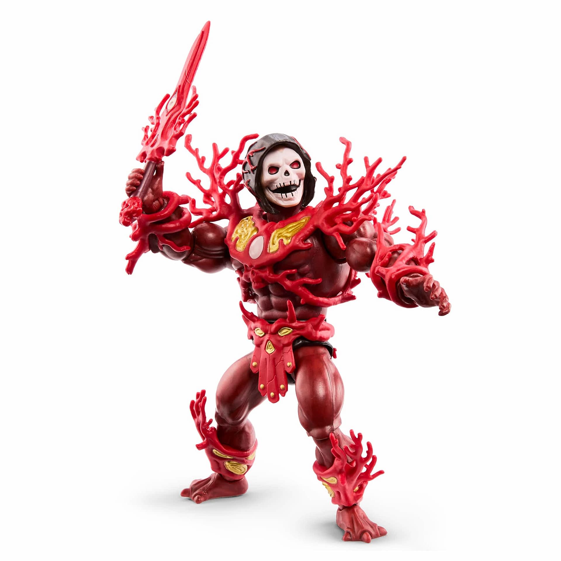 - Features intricate coral-themed armor and weapons, reimagining Skeletor’s classic villainous look