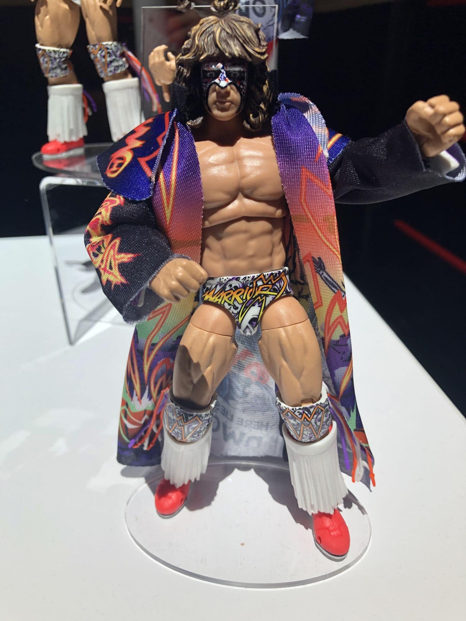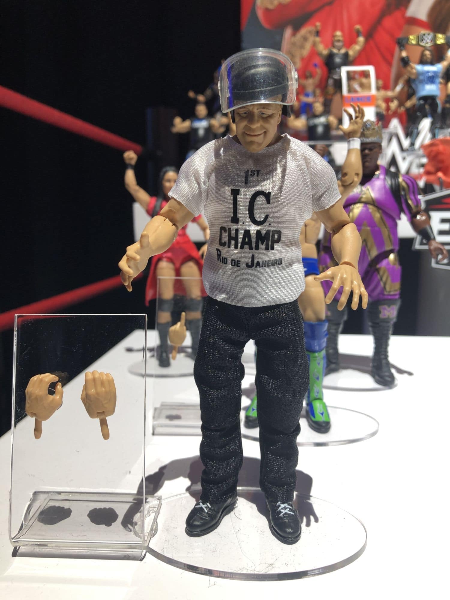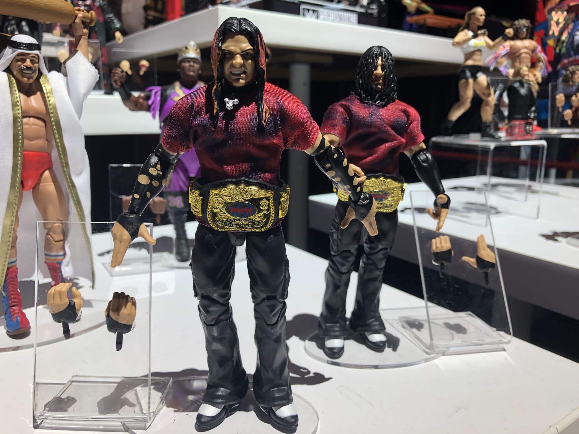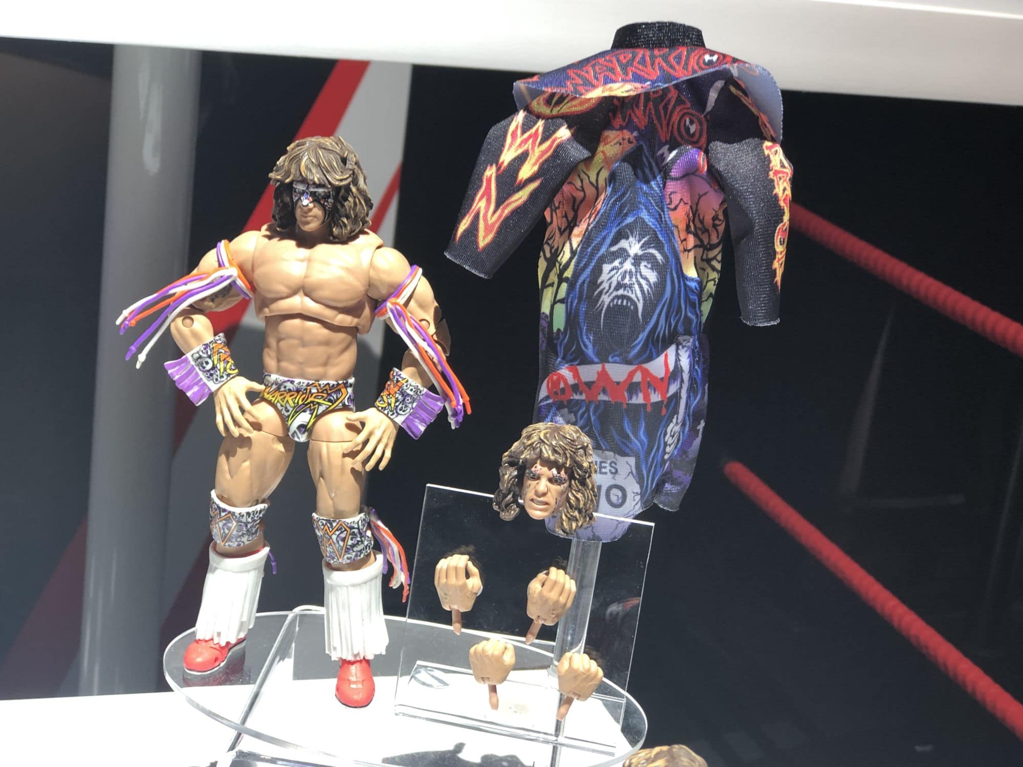First up, some new debuts in Mattel's WWE line, including Elites of King Mabel (with a chase version), Pat Patterson, Brie Bella, a new Daniel Bryan in his Seahawks style gear, a new Iron Sheik, ABA Undertaker, a new Roman Reigns, and a Braun Stroman with a cello. An Elite two-pack of Brood-era Hardy Boyz was also on display and will be a Ringside Collectibles exclusive. Four new Retro figures were shown off, including Randy Orton, Samoa Joe, a repaint of Macho Man, and a Goldust with removable wig. The big news though is the launch of Ultimates. These will be the most articulated WWE figures Mattel has ever done and will include multiple sets of gear and accessories, interchangeable hands and heads, and more. The first two are The Ultimate Warrior and Ronda Rousey. The third will be Bret Hart, and forth this year will be Shinsuke Nakamura.