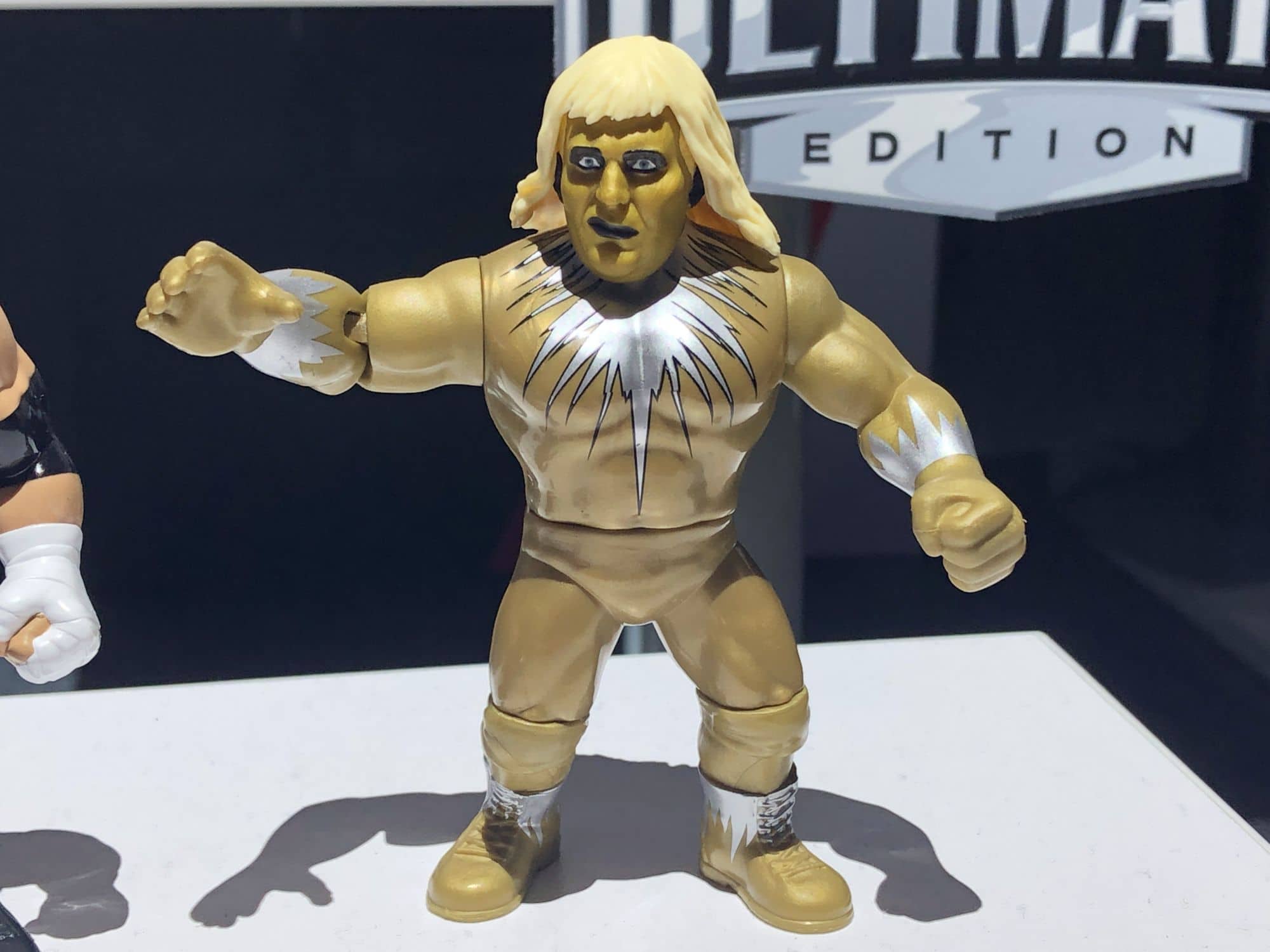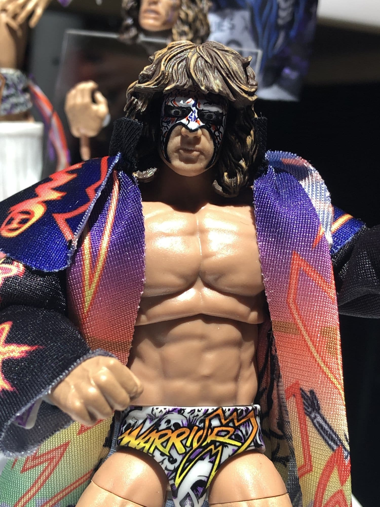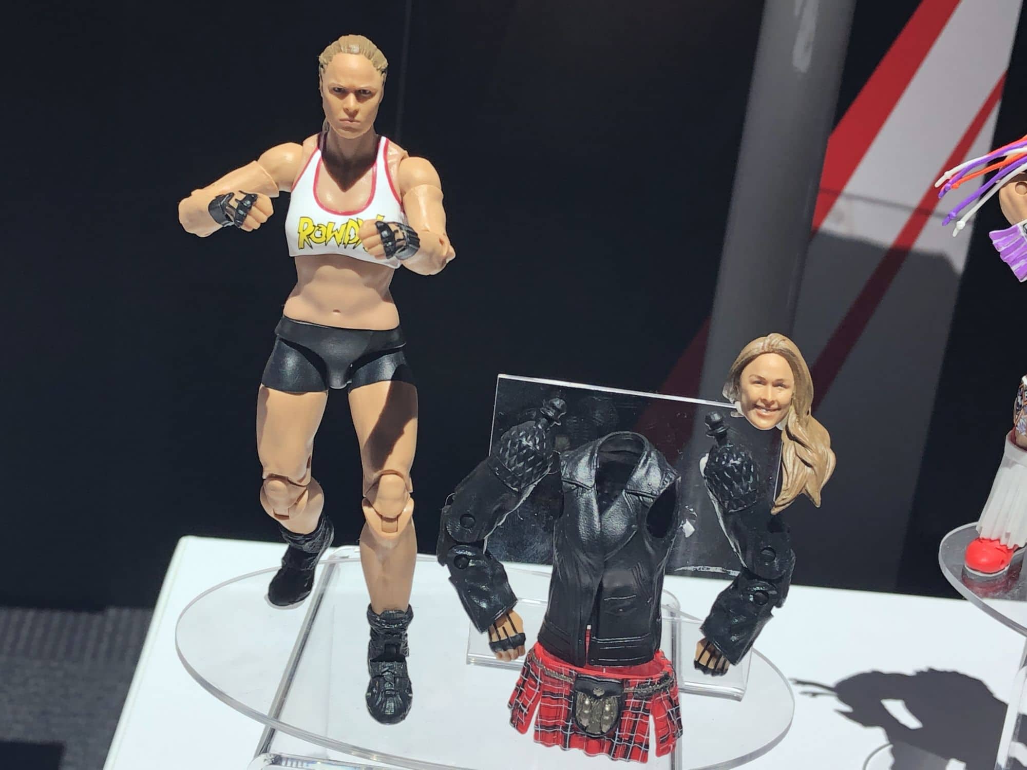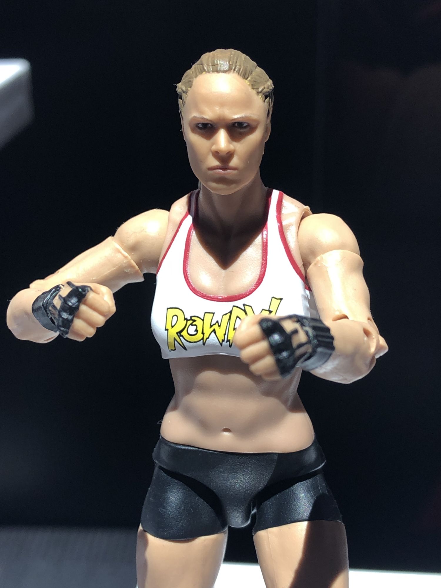 First up, some new debuts in Mattel's WWE line, including Elites of King Mabel (with a chase version), Pat Patterson, Brie Bella, a new Daniel Bryan in his Seahawks style gear, a new Iron Sheik, ABA Undertaker, a new Roman Reigns, and a Braun Stroman with a cello. An Elite two-pack of Brood-era Hardy Boyz was also on display and will be a Ringside Collectibles exclusive. Four new Retro figures were shown off, including Randy Orton, Samoa Joe, a repaint of Macho Man, and a Goldust with removable wig. The big news though is the launch of Ultimates. These will be the most articulated WWE figures Mattel has ever done and will include multiple sets of gear and accessories, interchangeable hands and heads, and more. The first two are The Ultimate Warrior and Ronda Rousey. The third will be Bret Hart, and forth this year will be Shinsuke Nakamura.