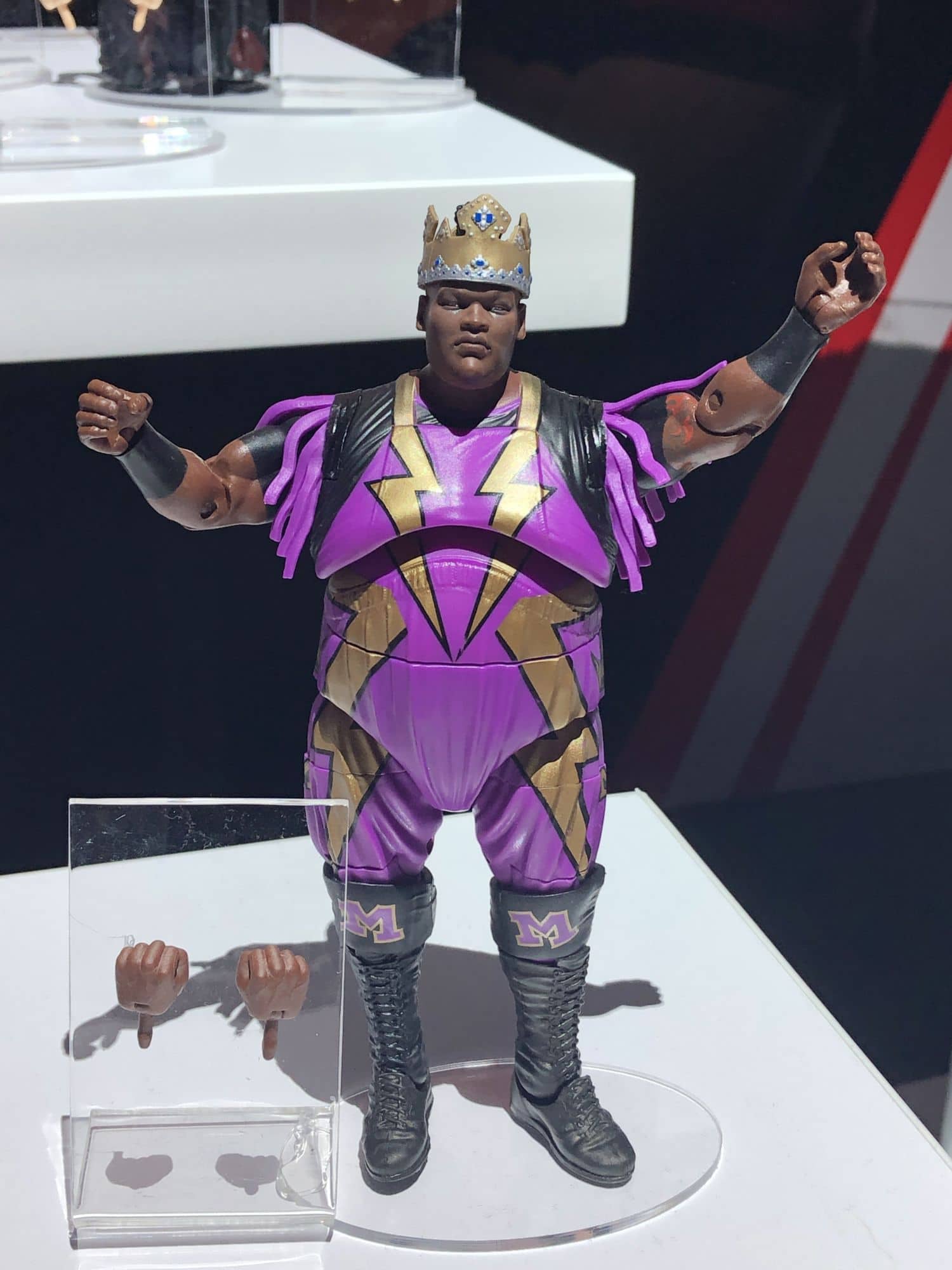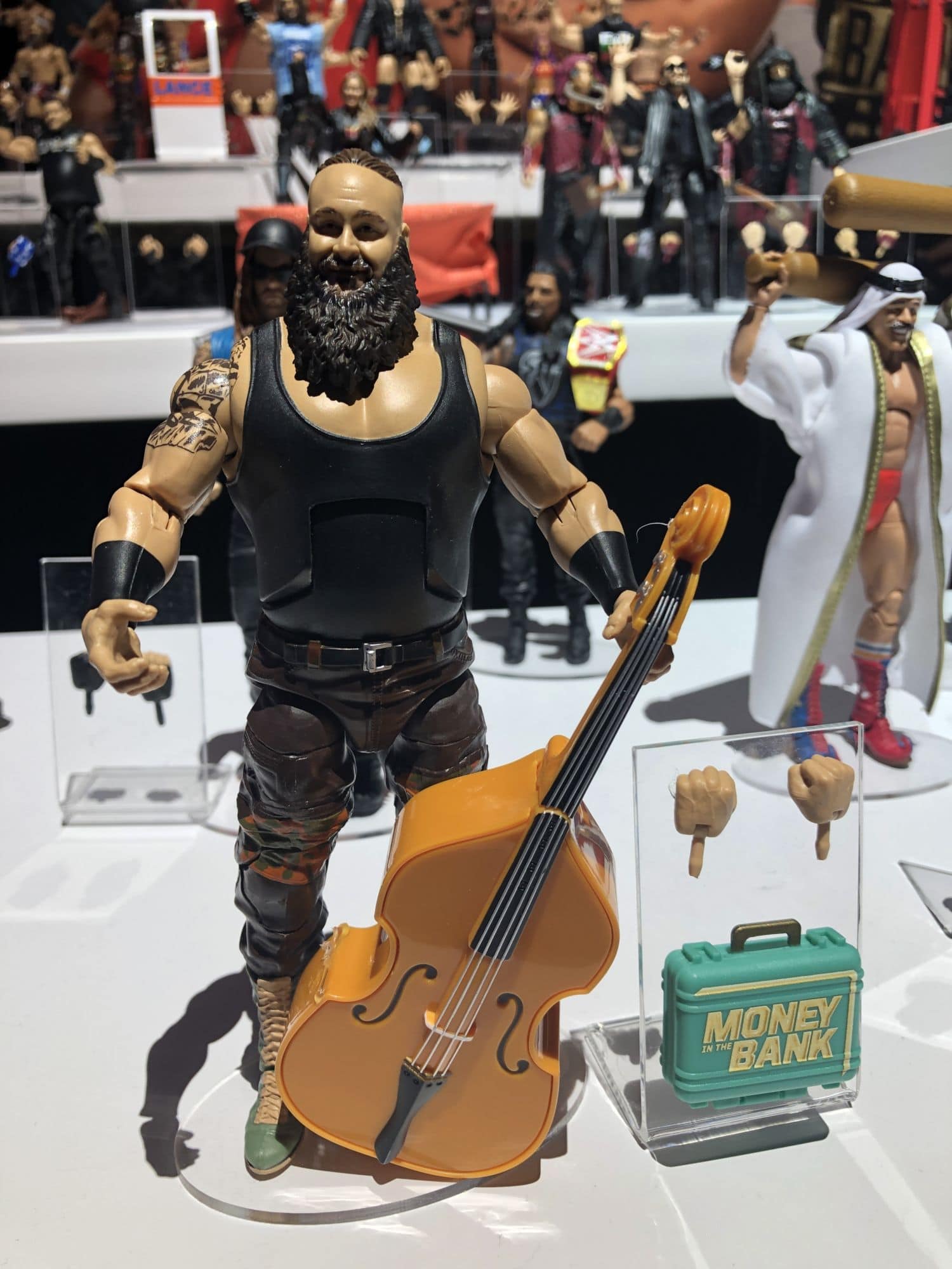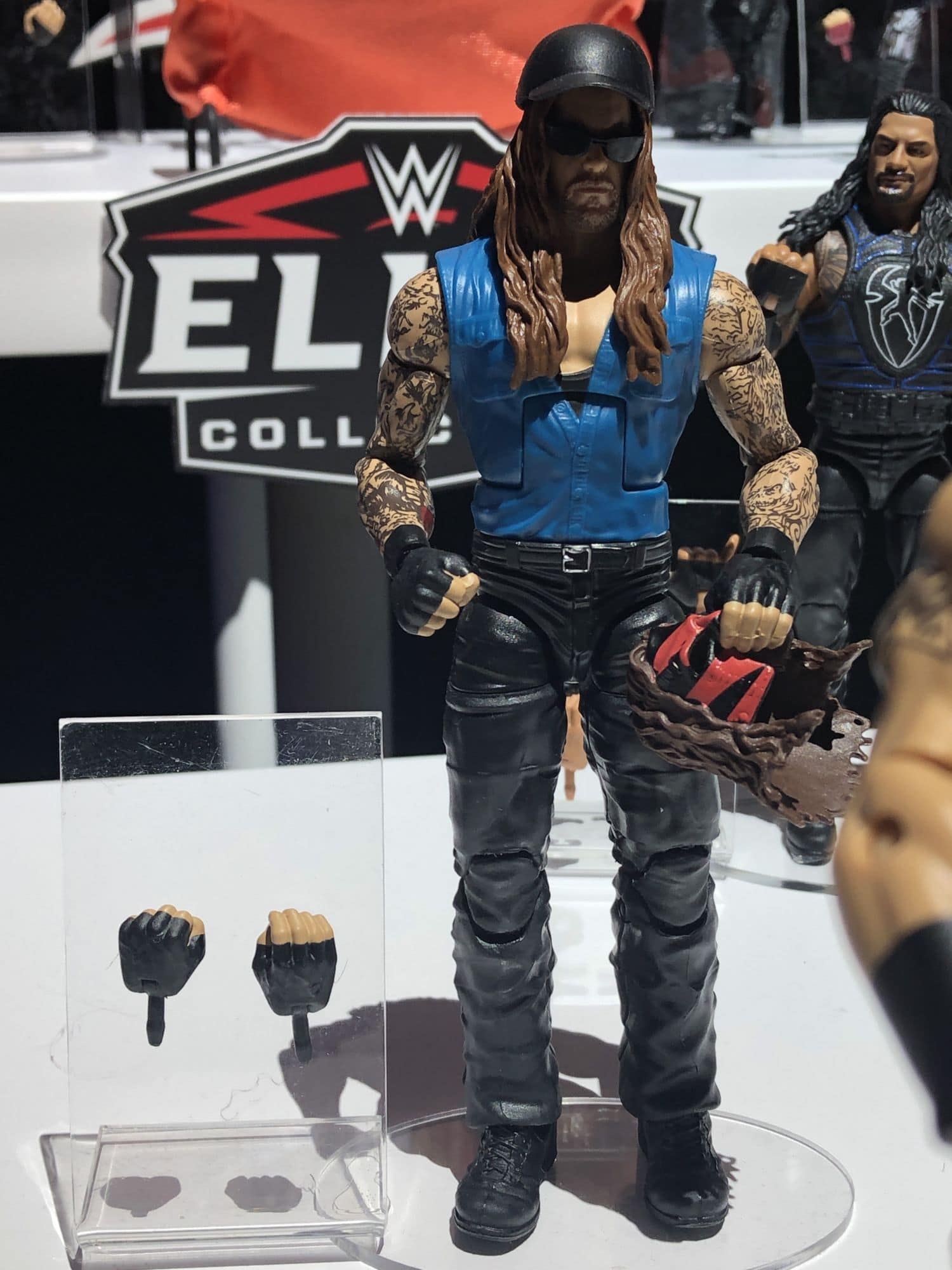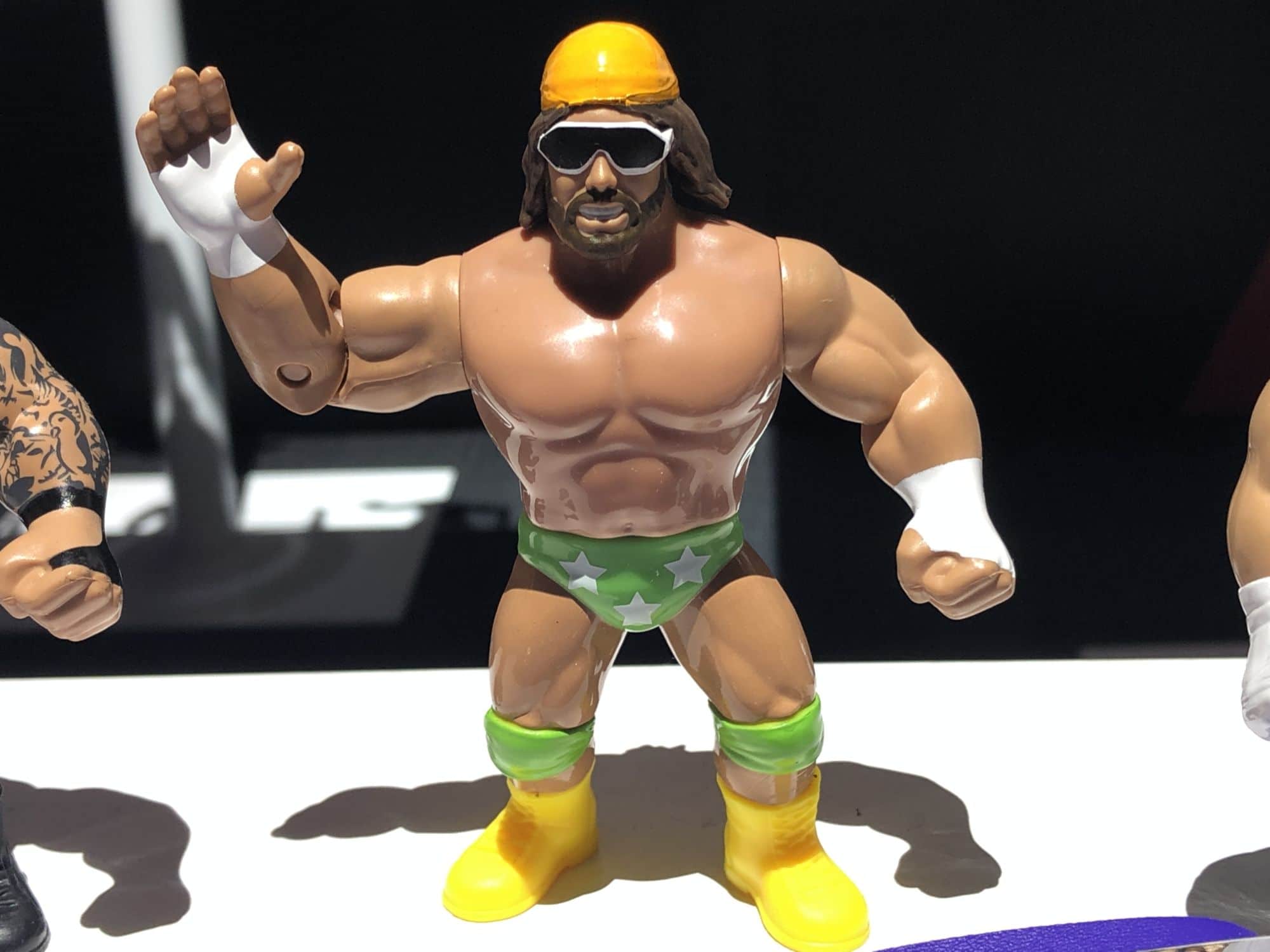 First up, some new debuts in Mattel's WWE line, including Elites of King Mabel (with a chase version), Pat Patterson, Brie Bella, a new Daniel Bryan in his Seahawks style gear, a new Iron Sheik, ABA Undertaker, a new Roman Reigns, and a Braun Stroman with a cello. An Elite two-pack of Brood-era Hardy Boyz was also on display and will be a Ringside Collectibles exclusive. Four new Retro figures were shown off, including Randy Orton, Samoa Joe, a repaint of Macho Man, and a Goldust with removable wig. The big news though is the launch of Ultimates. These will be the most articulated WWE figures Mattel has ever done and will include multiple sets of gear and accessories, interchangeable hands and heads, and more. The first two are The Ultimate Warrior and Ronda Rousey. The third will be Bret Hart, and forth this year will be Shinsuke Nakamura.