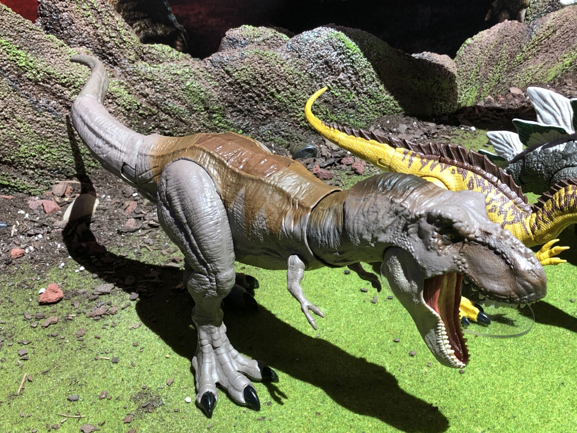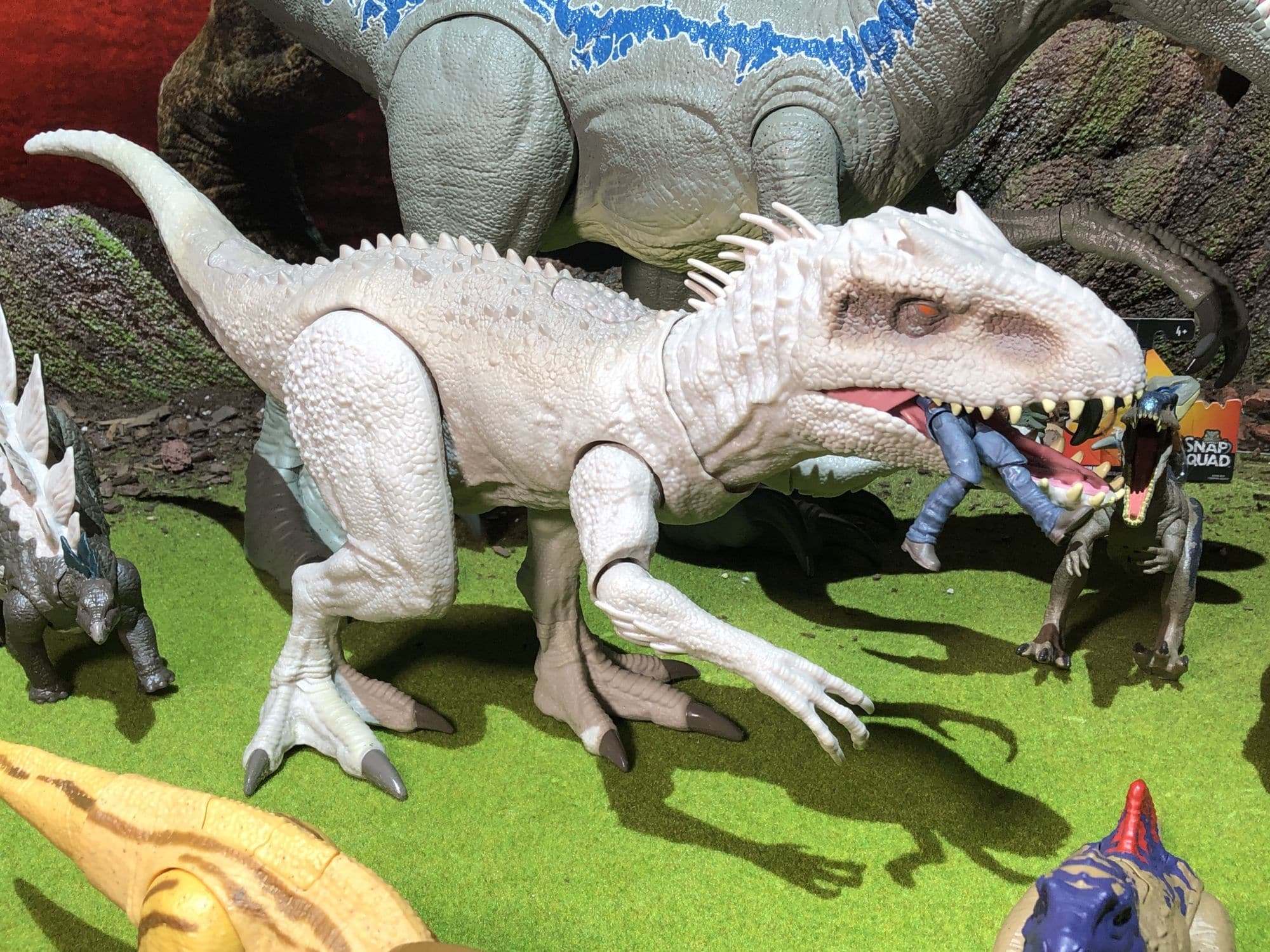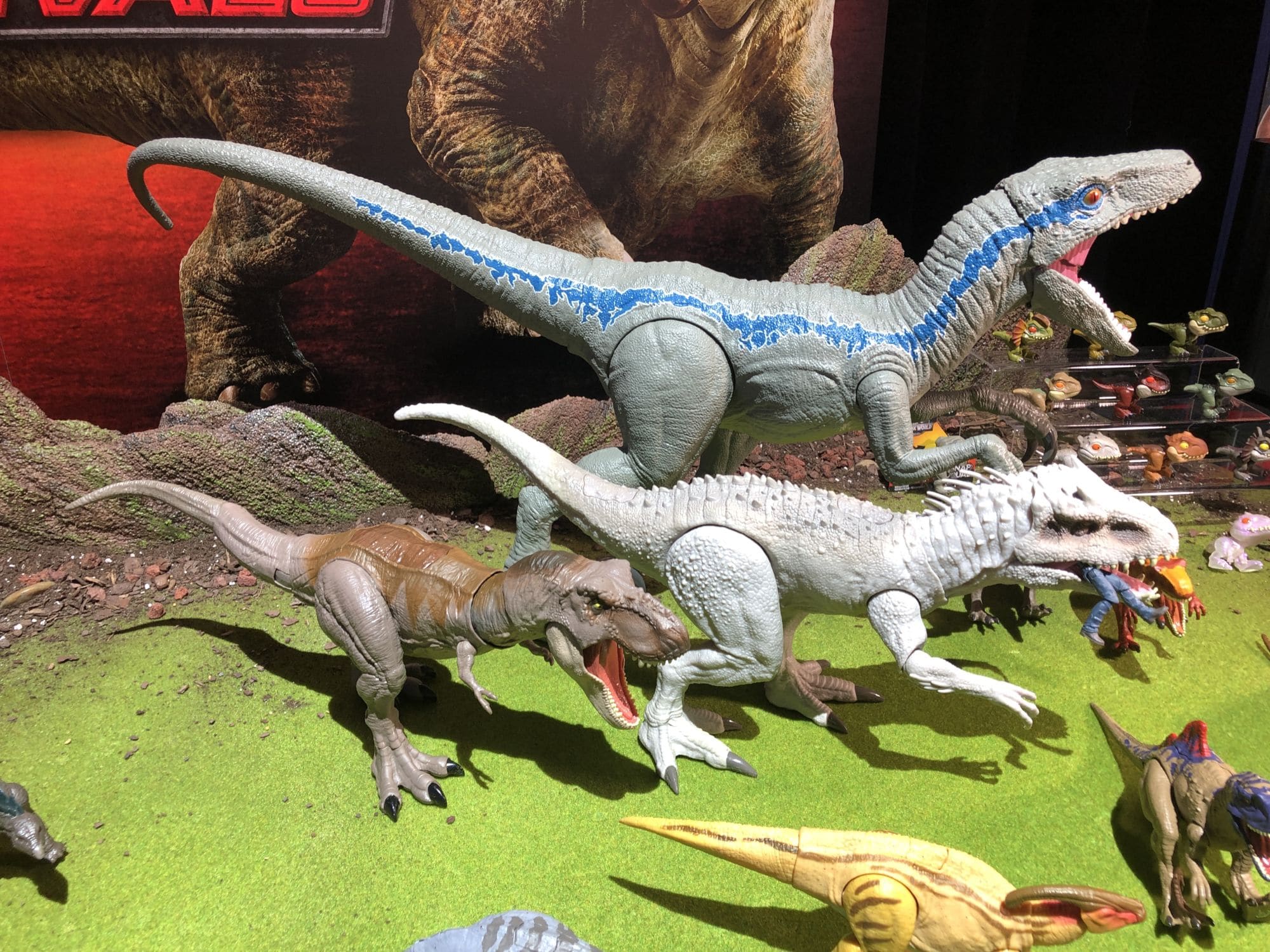 Jurassic World has become a huge hit for Mattel, and tons of new dinos were on display. Kinda neat: the blue Triceratops is a callback to an old unreleased version of one from a previous line. Kinda cool. Besides that, the repainted T-Rex looks great, the Indominous Rex is spectacular, and the colossal version of Blue is amazing. No six-inch human figures on display, but they are still coming I was told.
