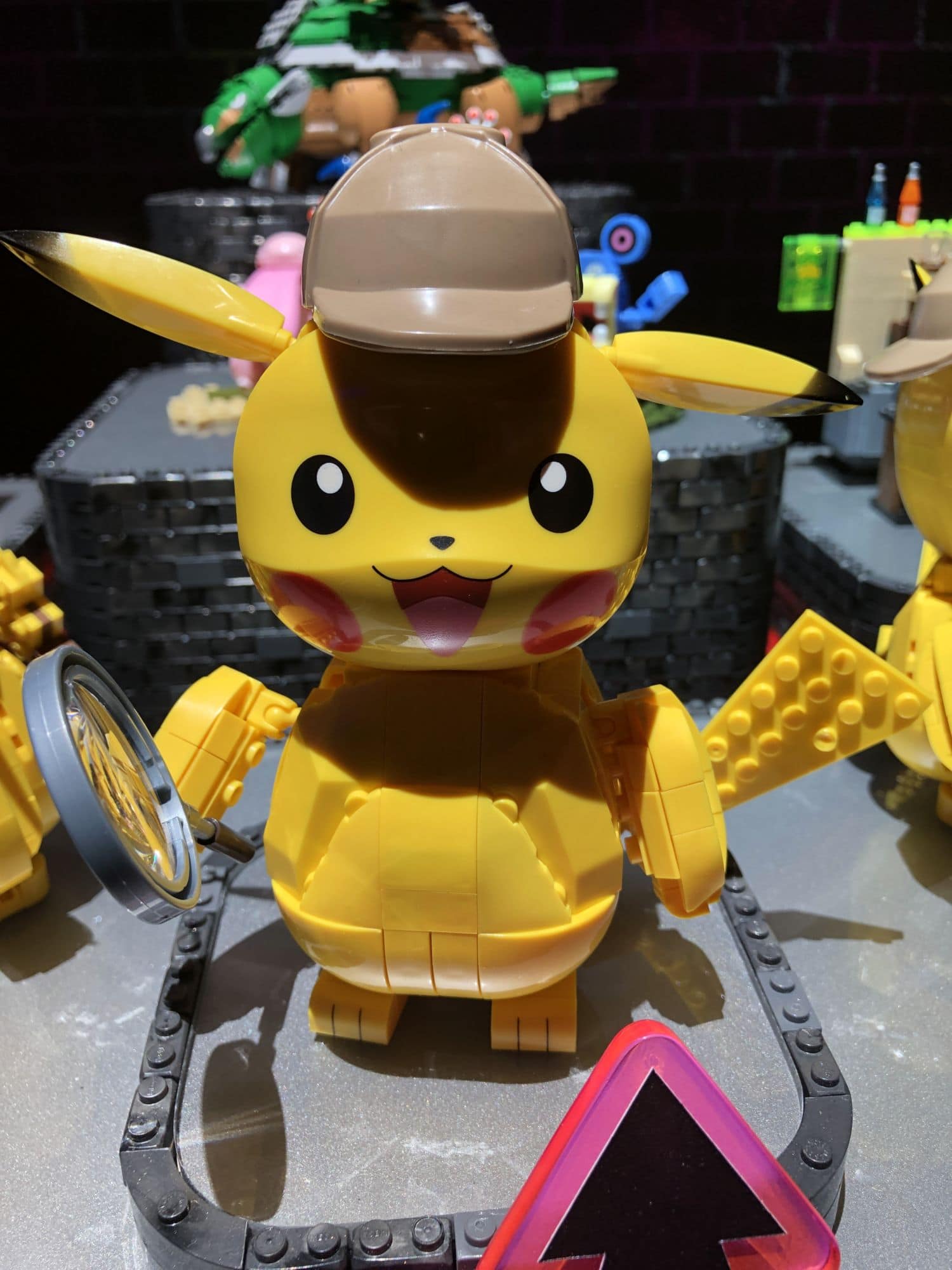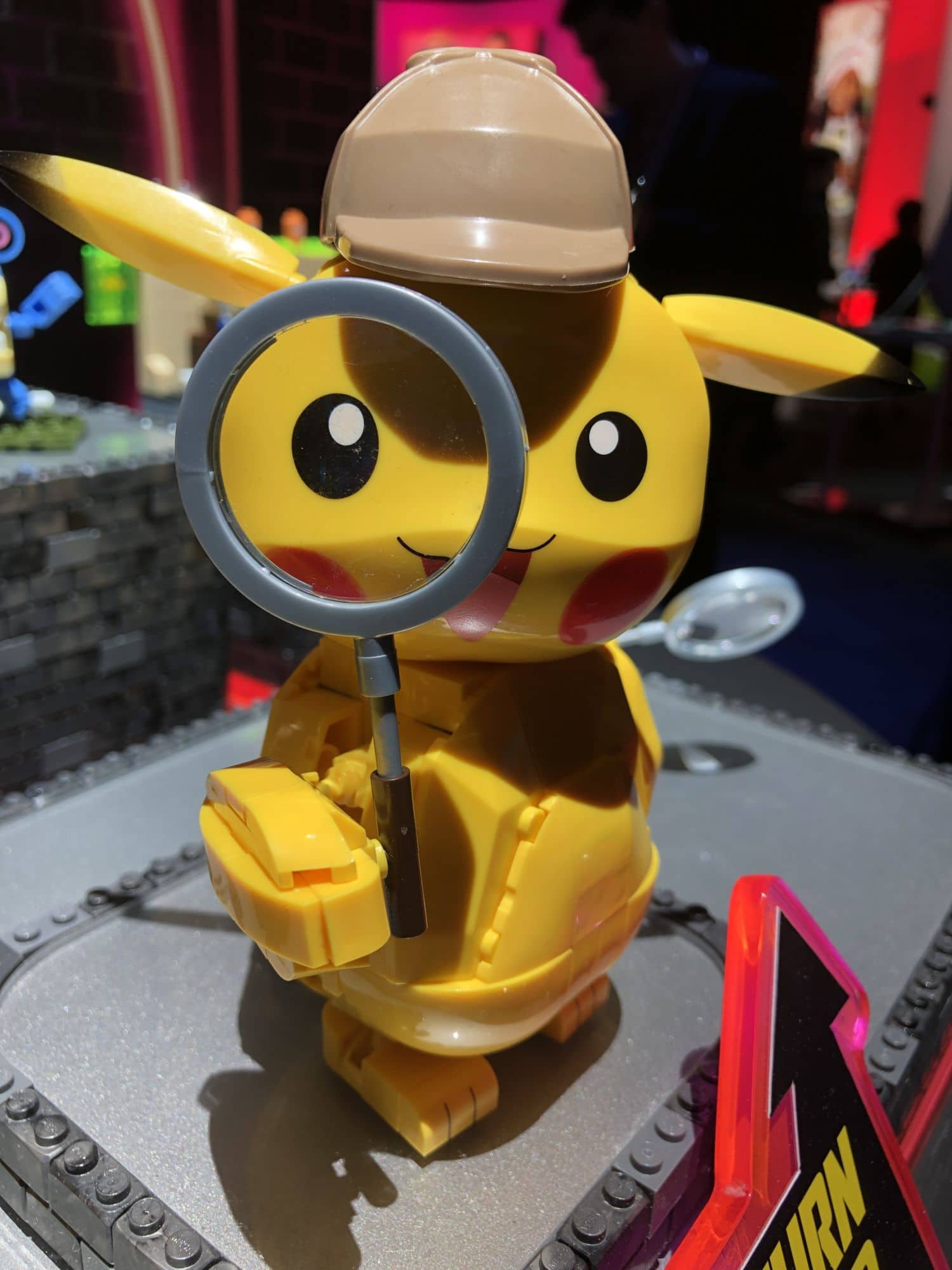 Mega Construx will have building sets in support of Detective Pikachu, including a giant Pikachu that raises its arm so he can look through a magnifying glass to look for clues. Other Pokemon will join him in the smaller sets, like his detective office. Look for these in April.