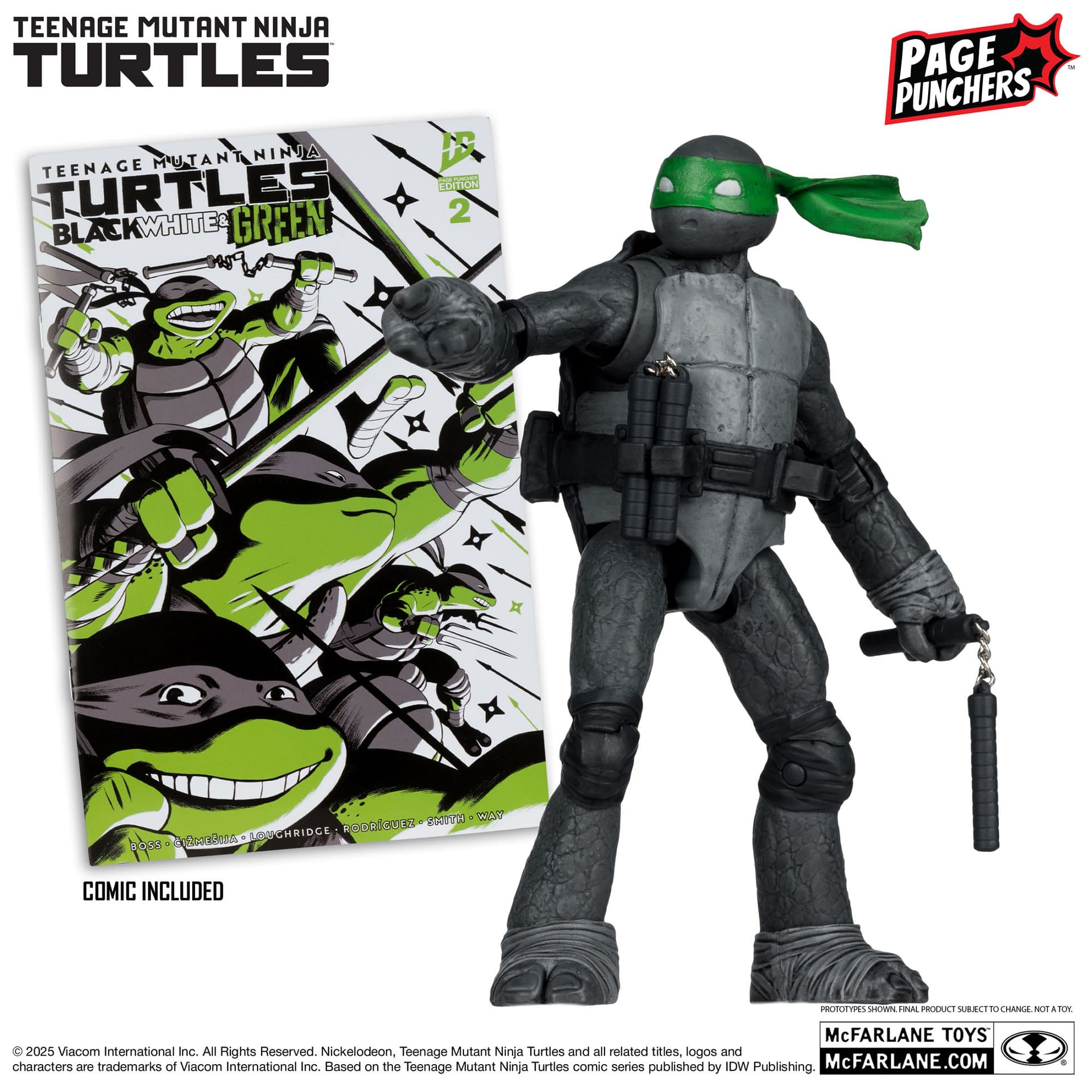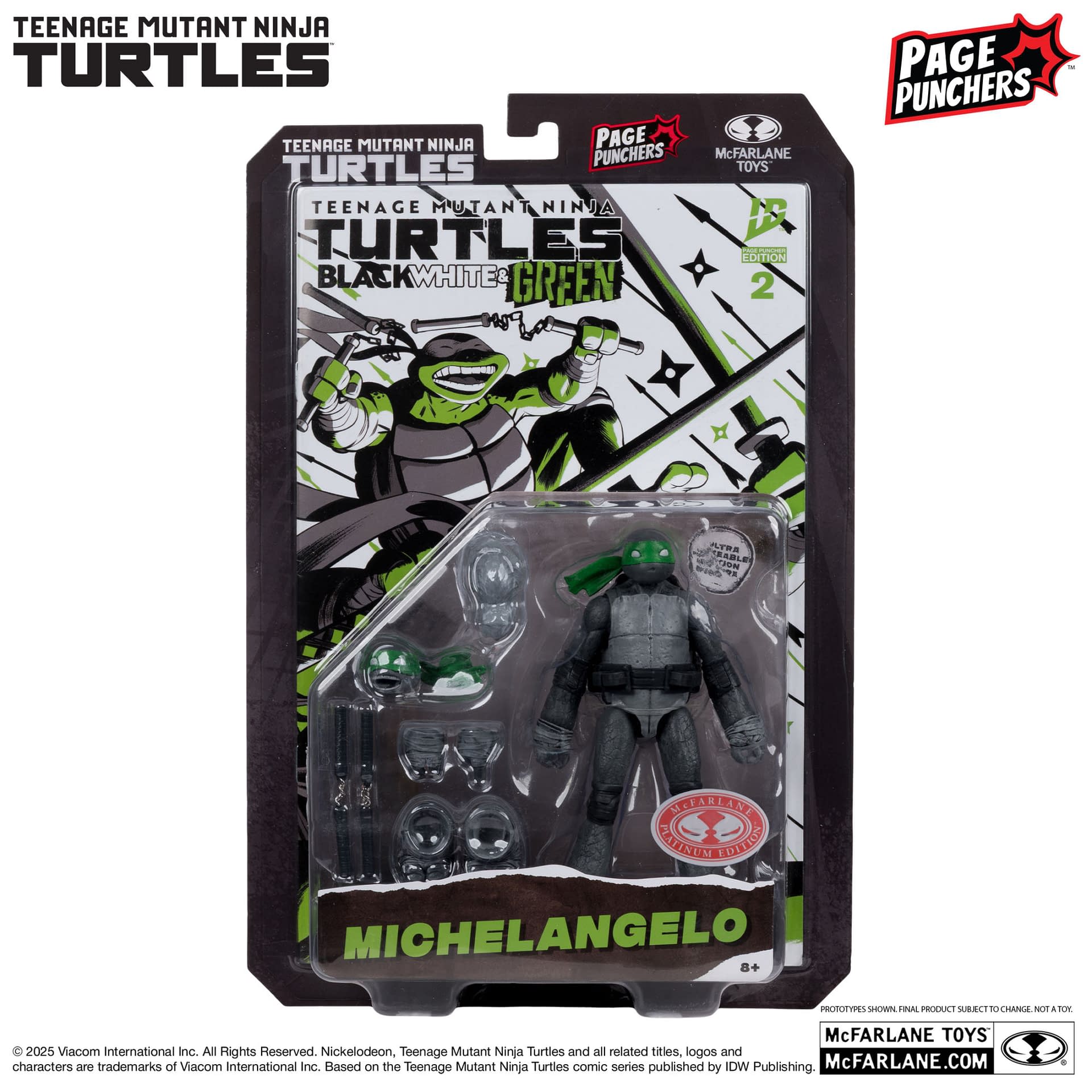 - McFarlane Toys unveils a Red Platinum Edition TMNT: Black, White & Green Michelangelo action figure.