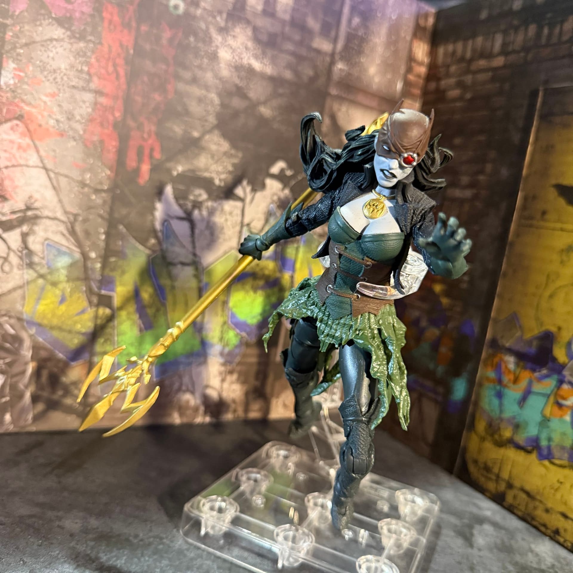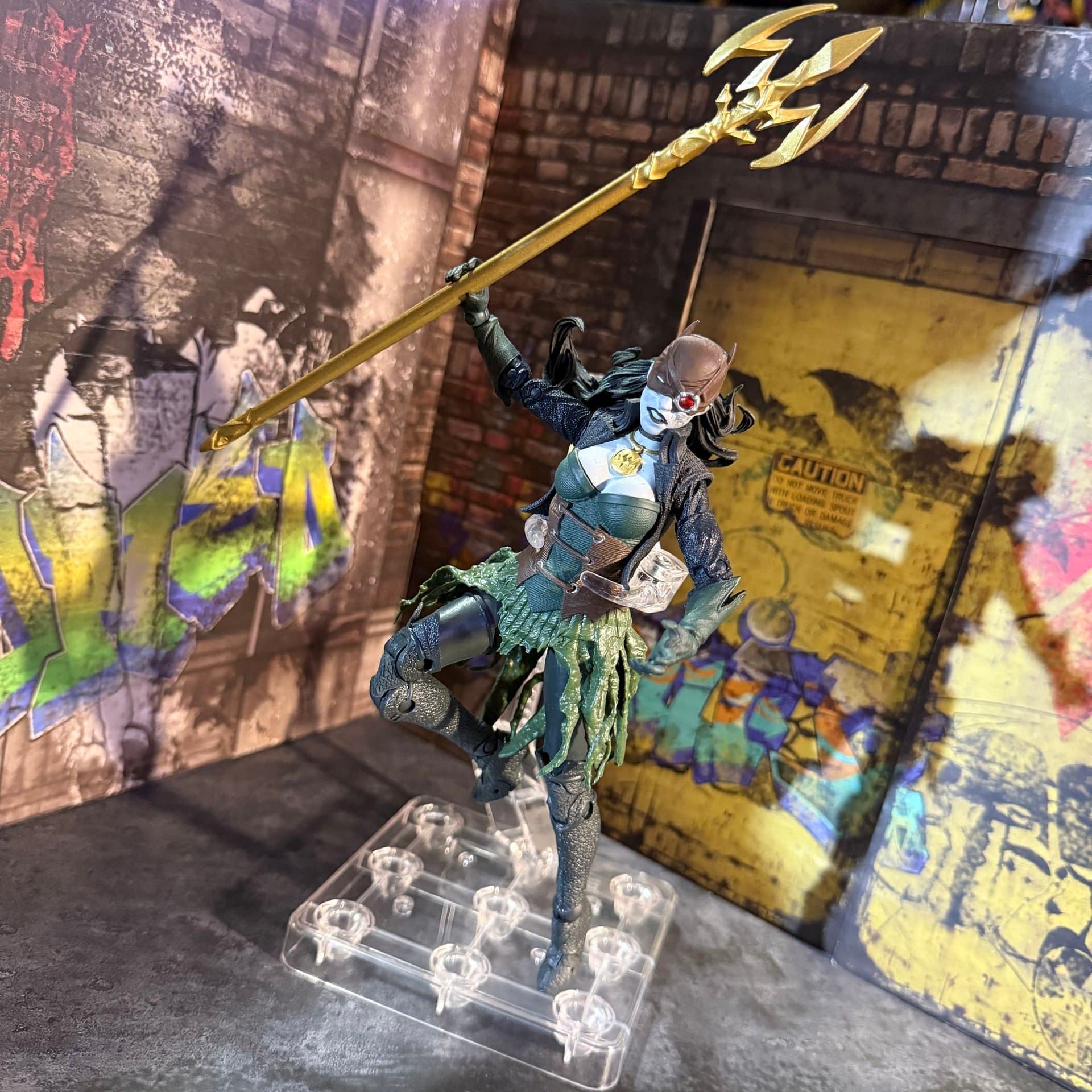 The entire Dark Multiverse storyline at DC Comics was something truly impressive, and seeing these twisted versions of Batman come to life was a treat. McFarlane Toys was sure to craft up a great figure for The Drowned for the DC Multiverse. Just like most of these figures at the beginning, they focus more on detail rather than articulation, so she is hard to pose. Her included display stand is a must, as she is kind of top-heavy, but it is possible. However, The Drowned is nicely detailed, showing off Bryce Wayne's stitched Atlantean body with a trident, capturing her descent to madness. This figure is not up for purchase from retailers, but fans can get a 3" Page Punchers version right now, which also comes with a comic book.