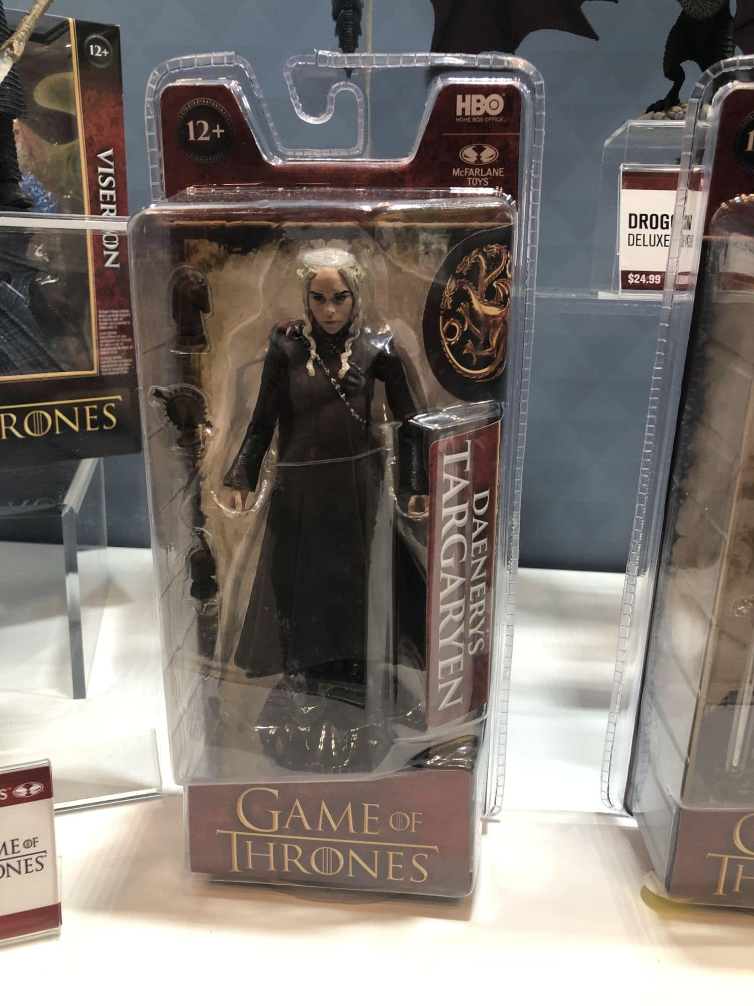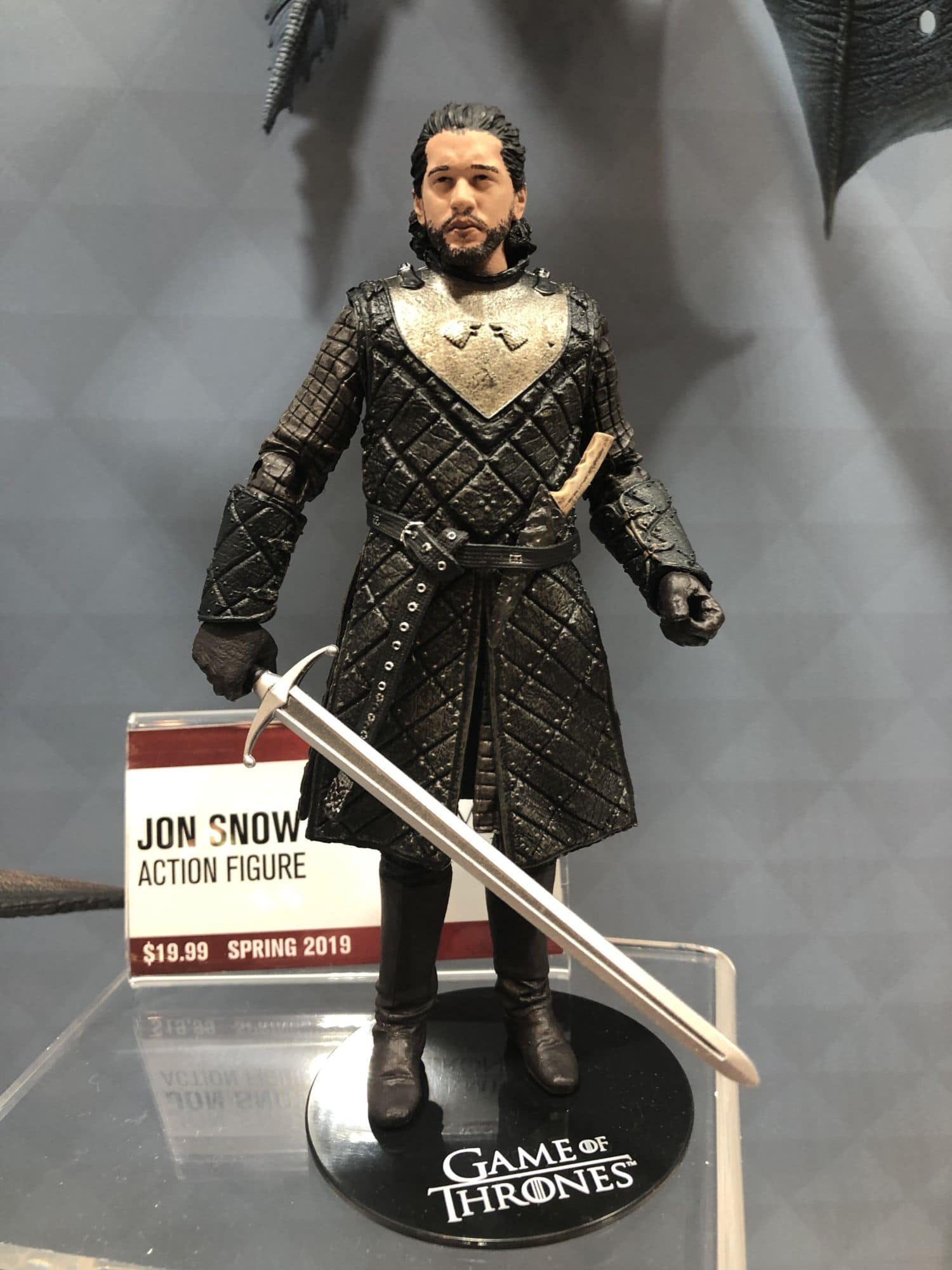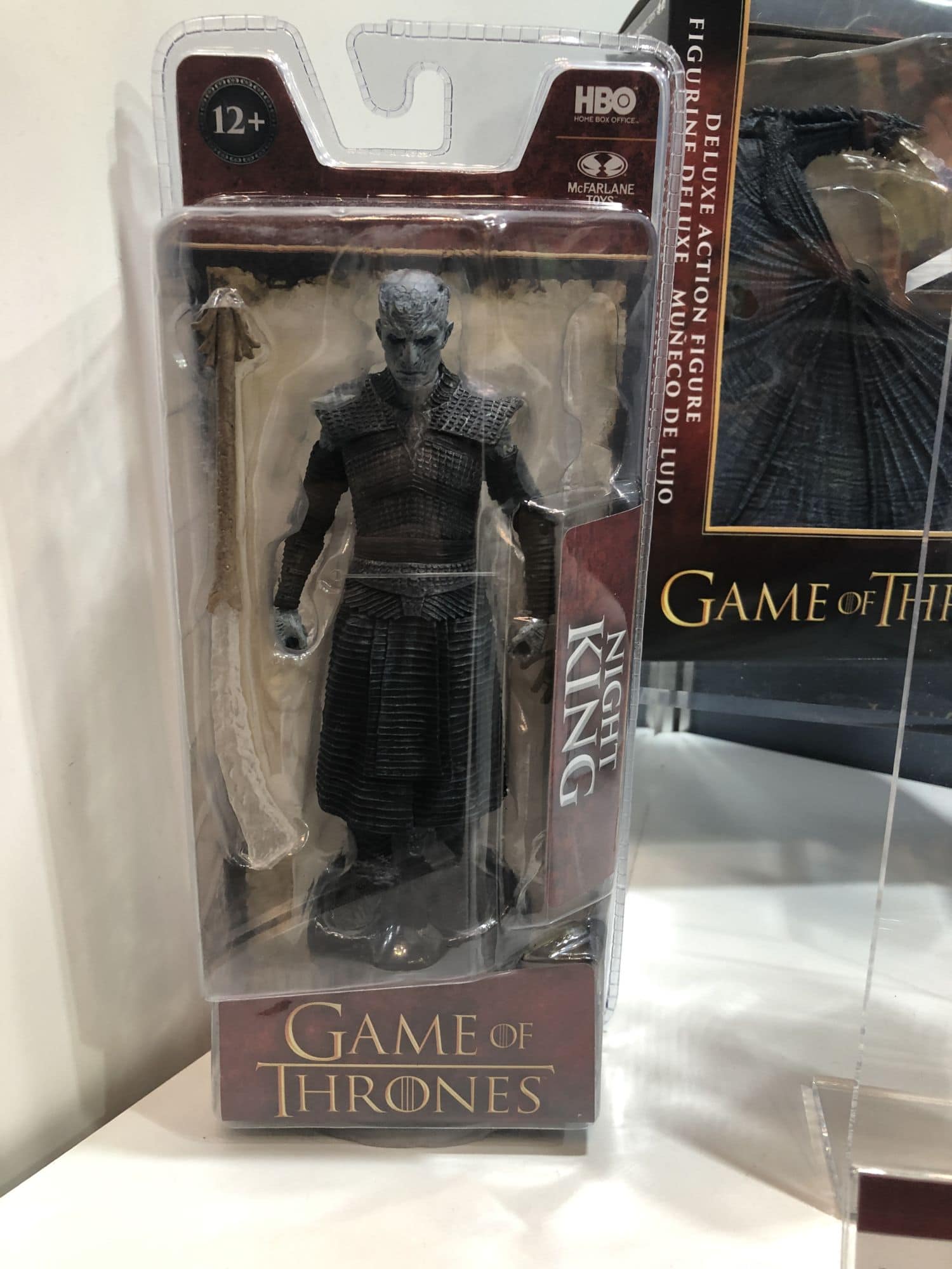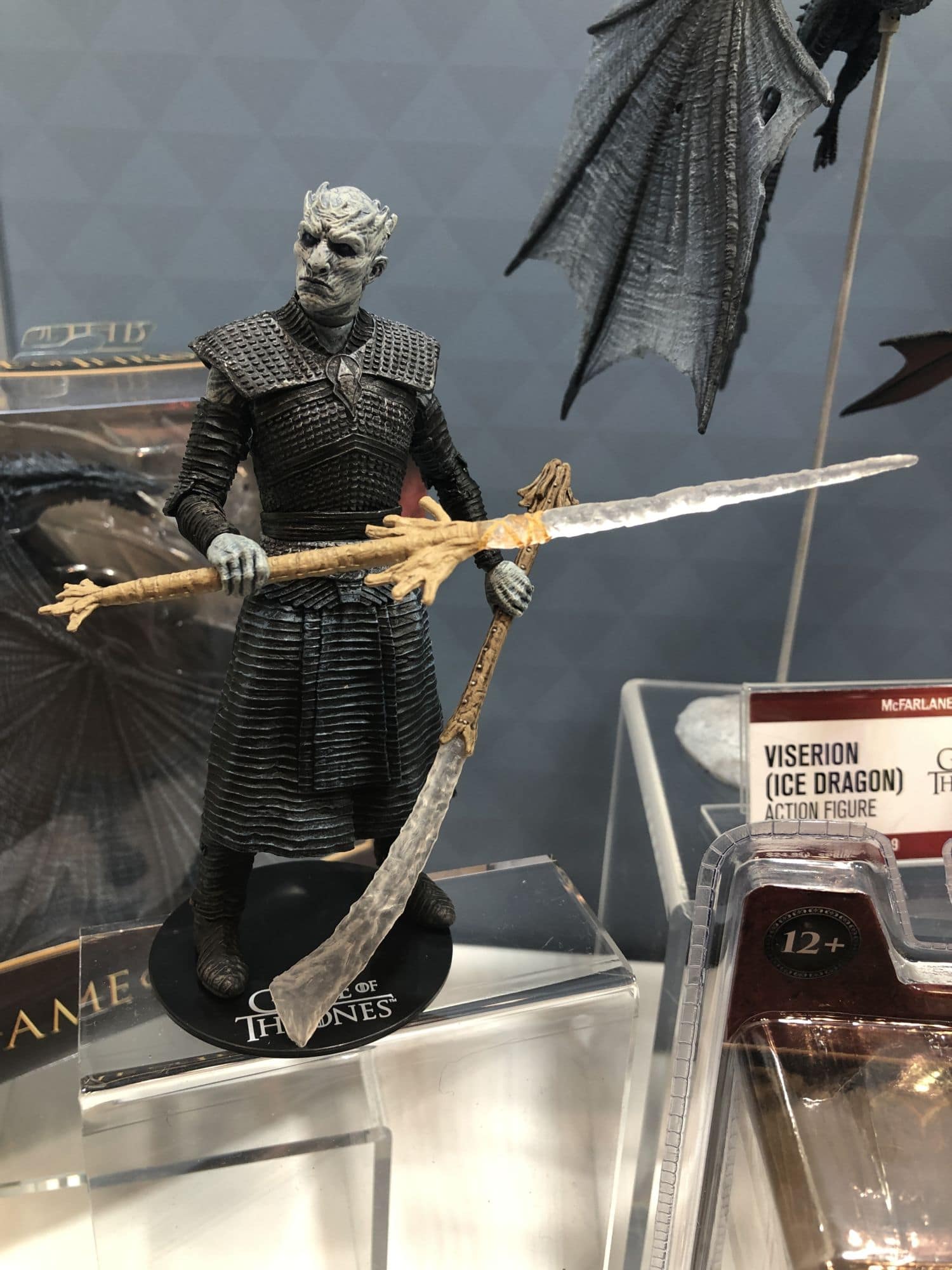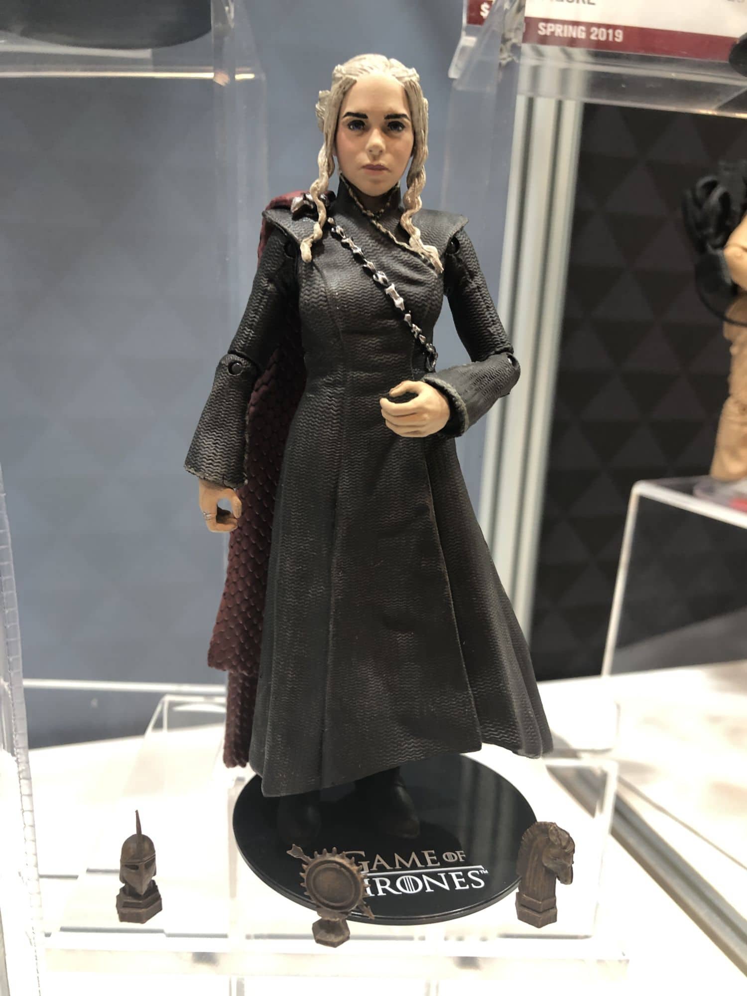 Speaking of the Game of Thrones line, these look incredible. Packaged samples of their first wave were on display, including the Night King, Jon Snow, Arya Stark, and Daenerys Targaryen. Two dragons will also be available, although Drogon will be available at a later date than the rest of the figures in April.