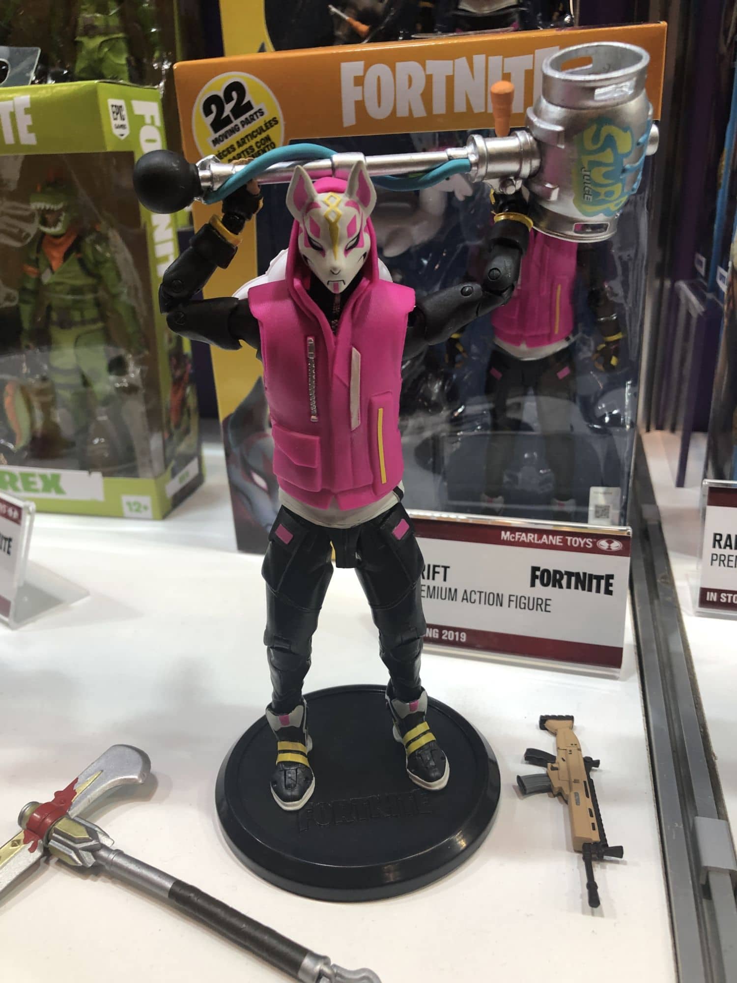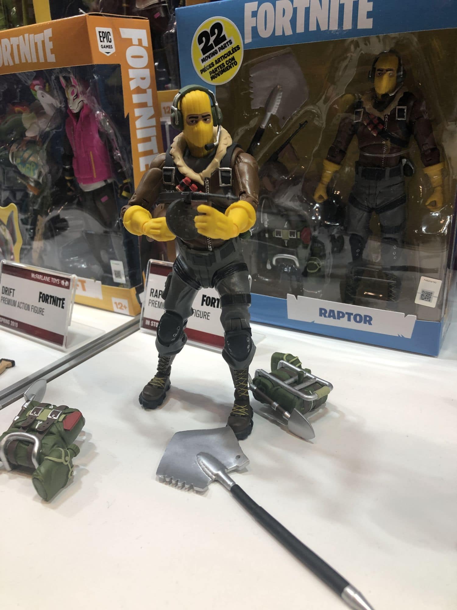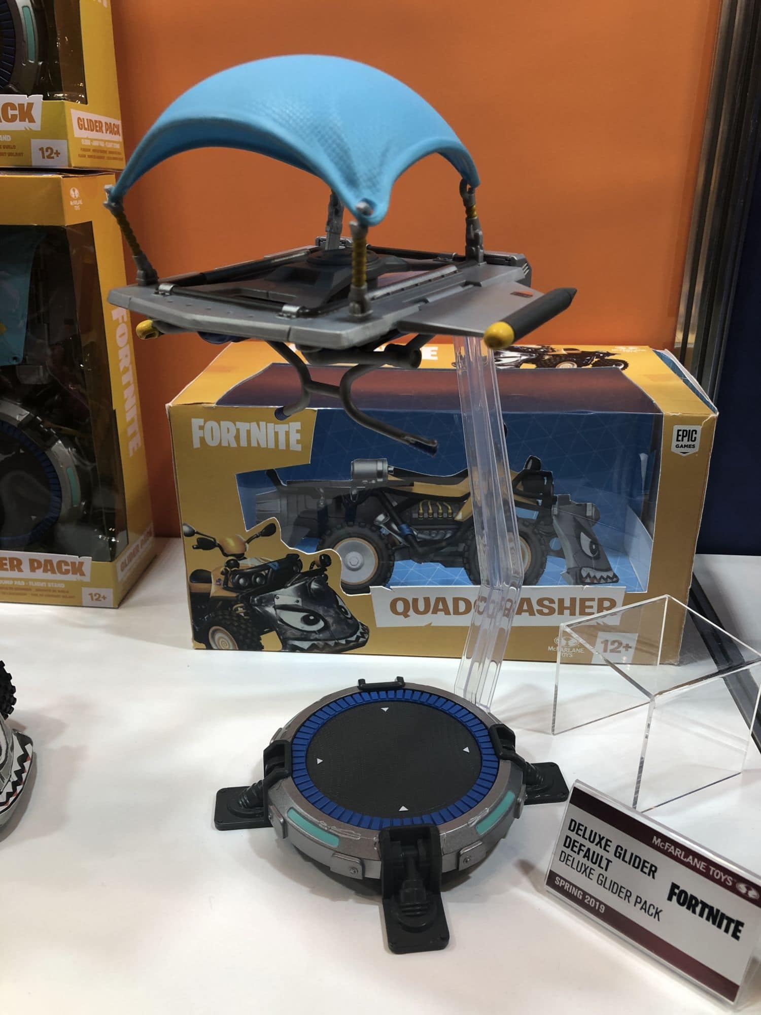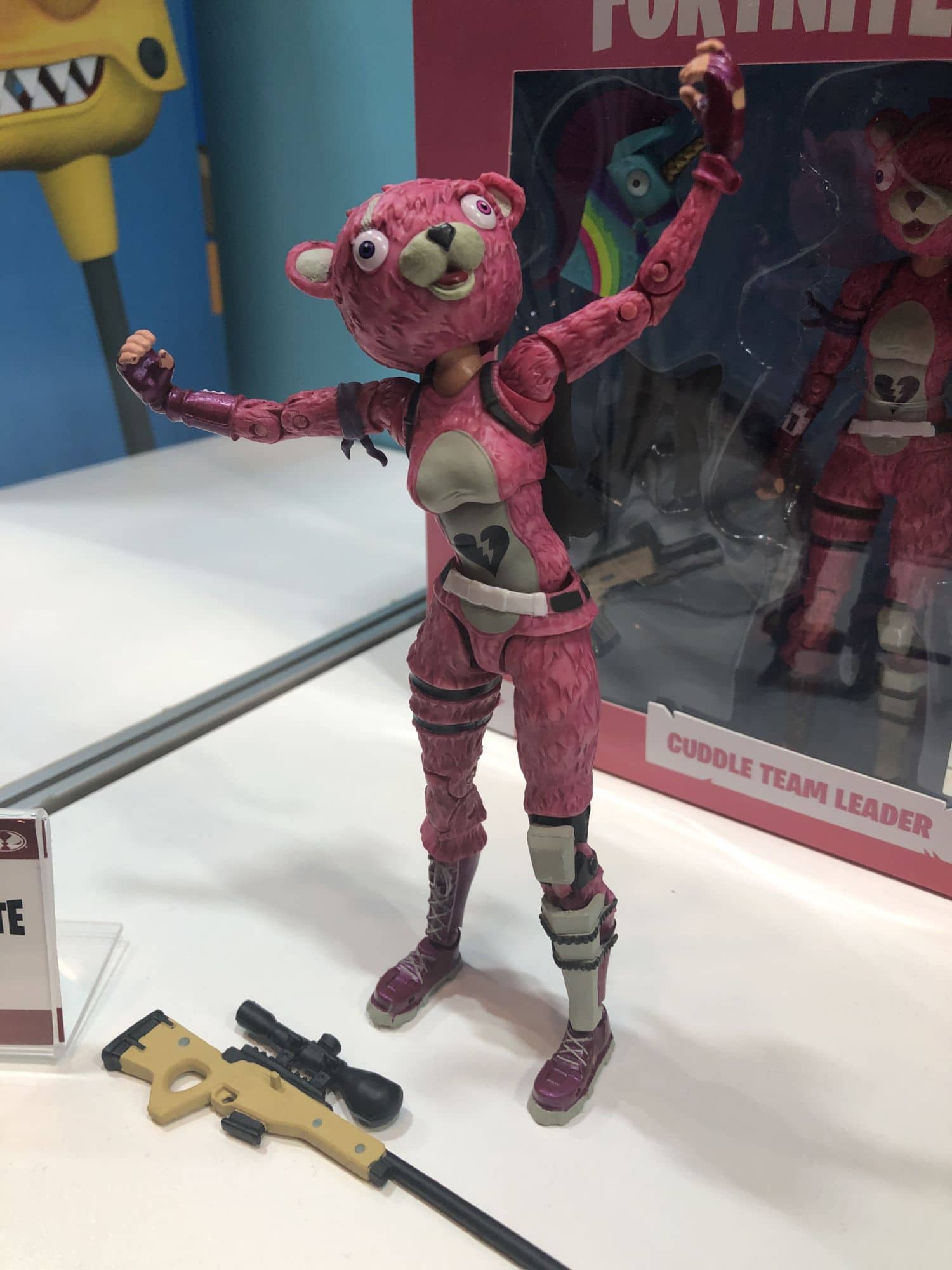 Of course, the biggest displays were saved for Fortnite. They have many, many new figures on the way, and they like to stay up to date and such by releasing figures at the same time the game has new seasons debut. Also coming to the line are vehicles, like the awesome glider pack! Or the quadcrasher! Or the shopping cart? Yep, a shopping cart! They also had the first two bigger scale figures on display, along with a new giant role play item: a slurp hammer.