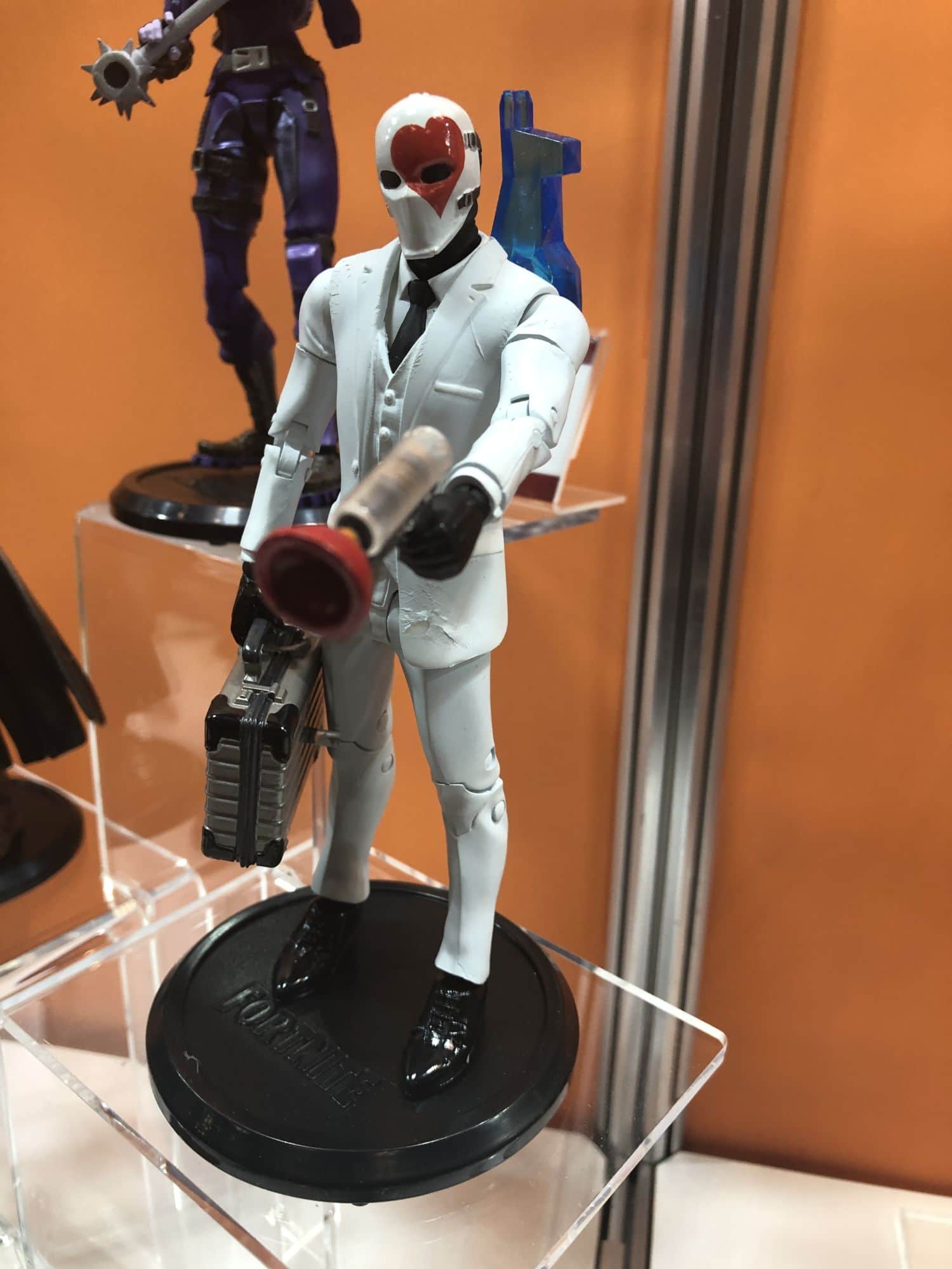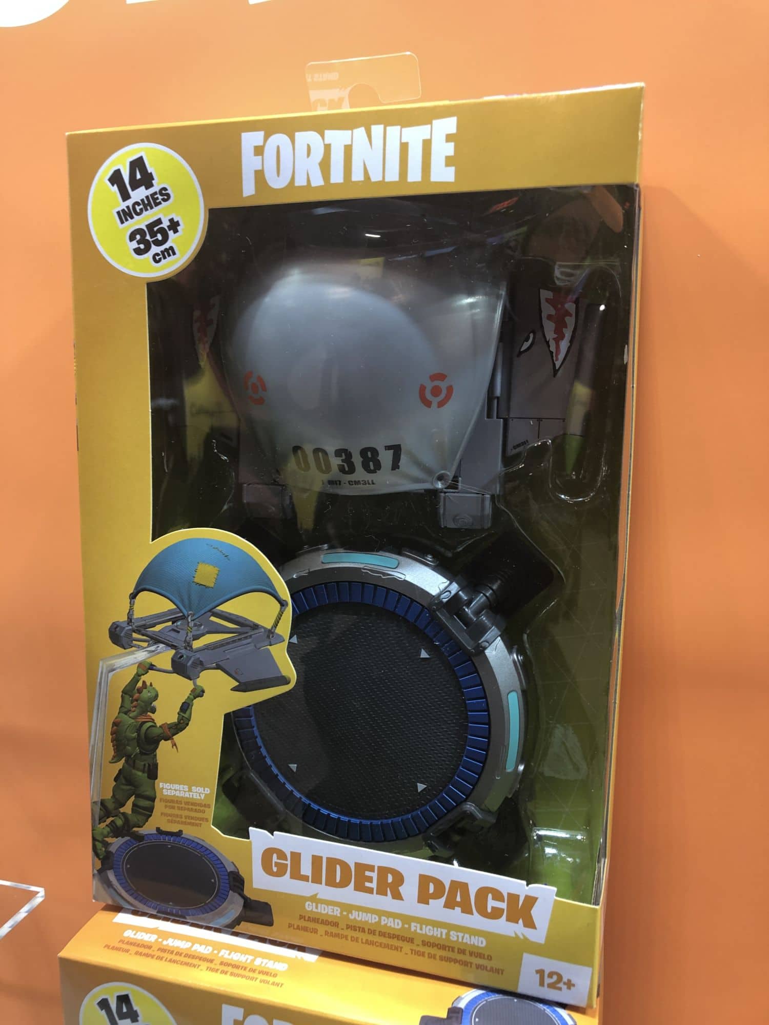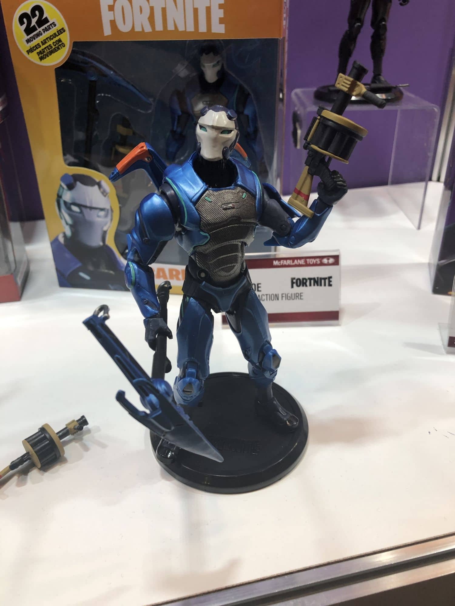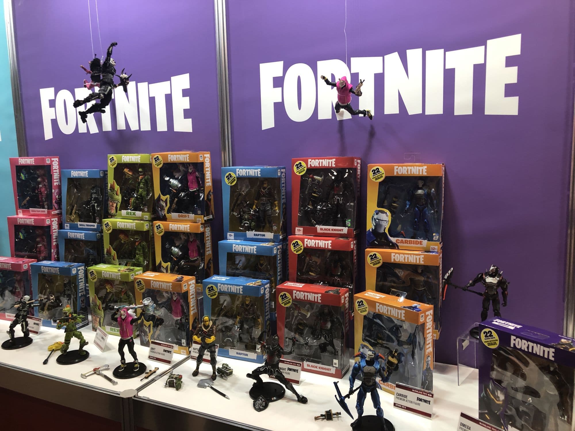 Of course, the biggest displays were saved for Fortnite. They have many, many new figures on the way, and they like to stay up to date and such by releasing figures at the same time the game has new seasons debut. Also coming to the line are vehicles, like the awesome glider pack! Or the quadcrasher! Or the shopping cart? Yep, a shopping cart! They also had the first two bigger scale figures on display, along with a new giant role play item: a slurp hammer.