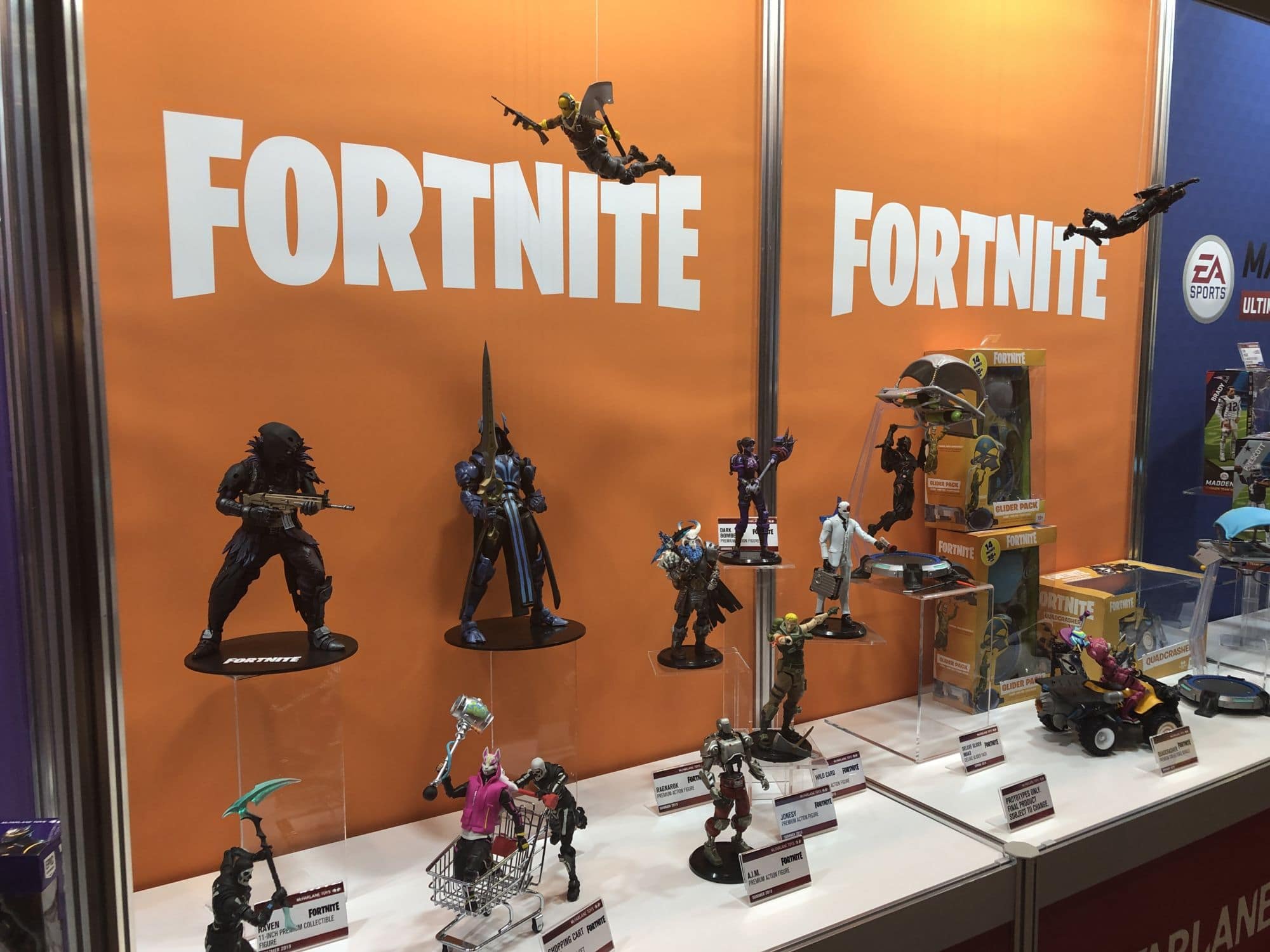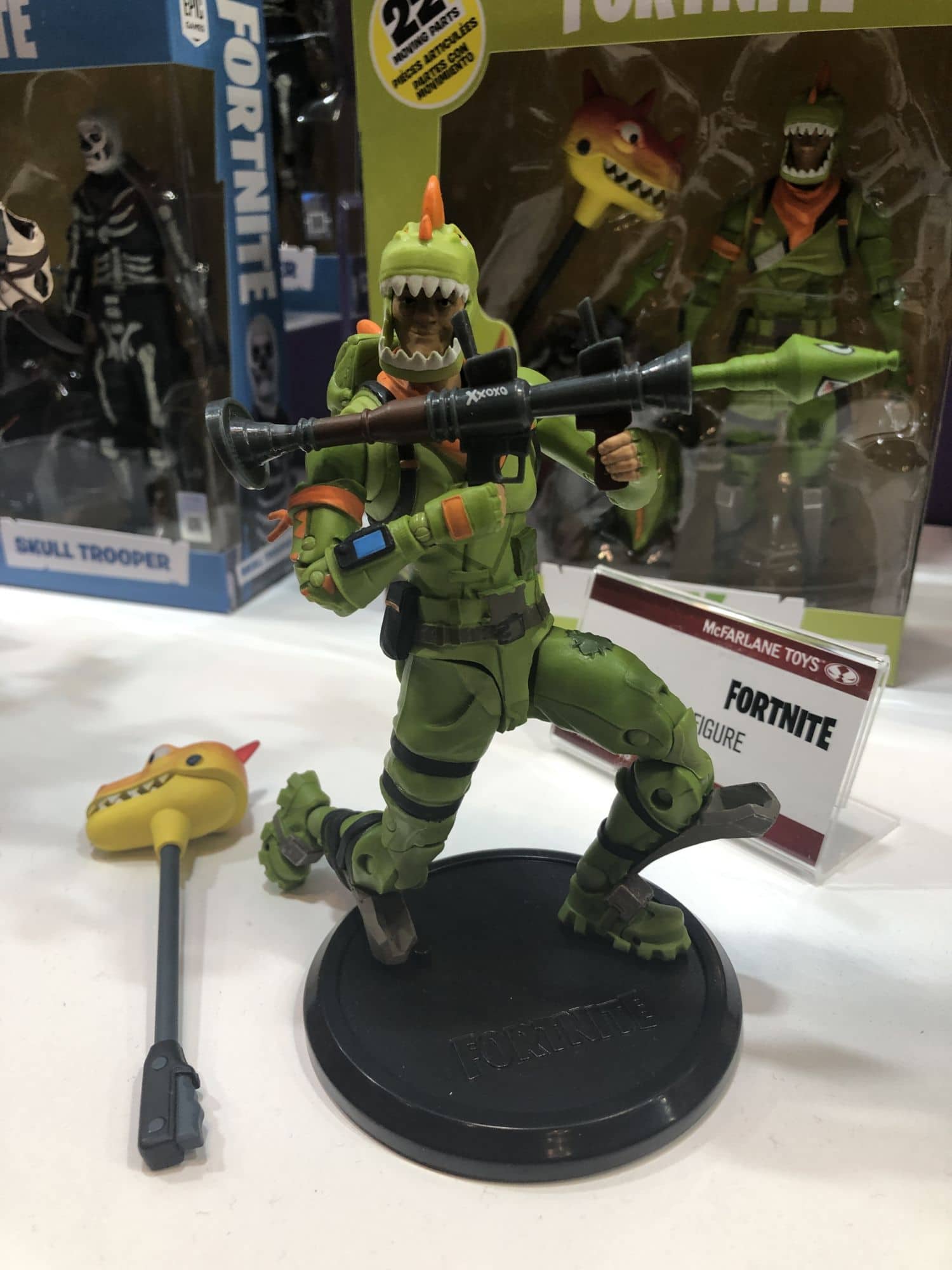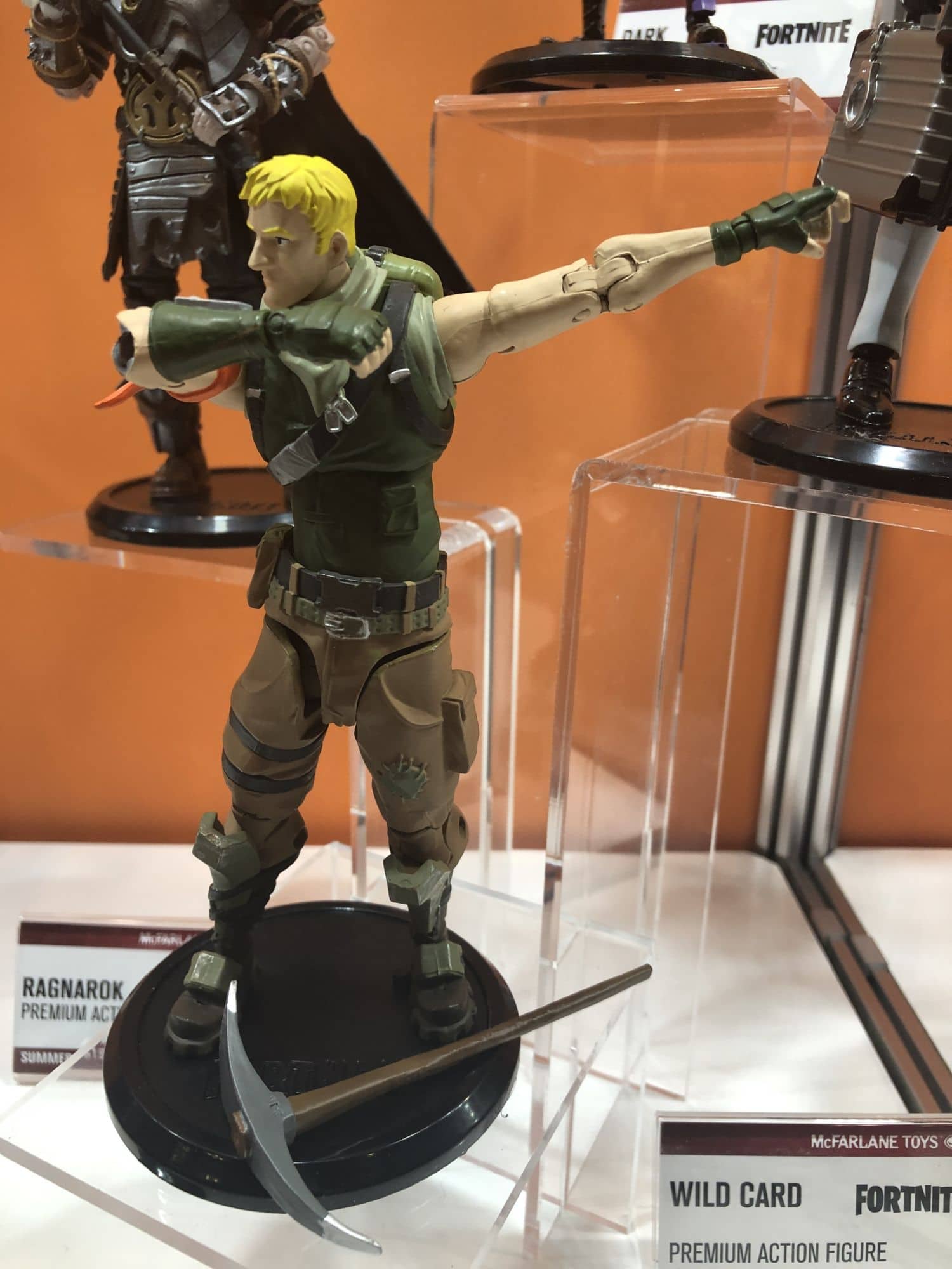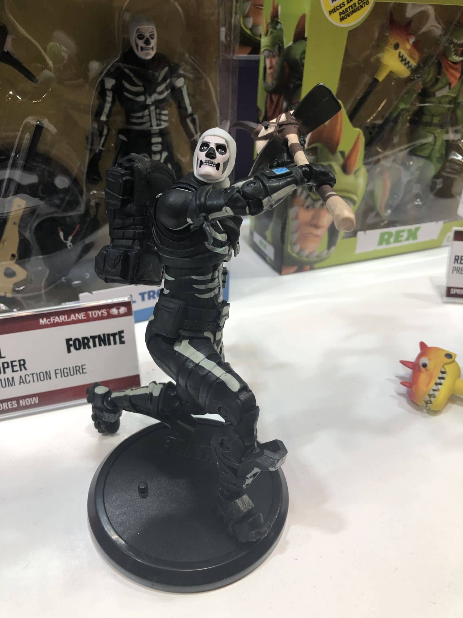 Of course, the biggest displays were saved for Fortnite. They have many, many new figures on the way, and they like to stay up to date and such by releasing figures at the same time the game has new seasons debut. Also coming to the line are vehicles, like the awesome glider pack! Or the quadcrasher! Or the shopping cart? Yep, a shopping cart! They also had the first two bigger scale figures on display, along with a new giant role play item: a slurp hammer.