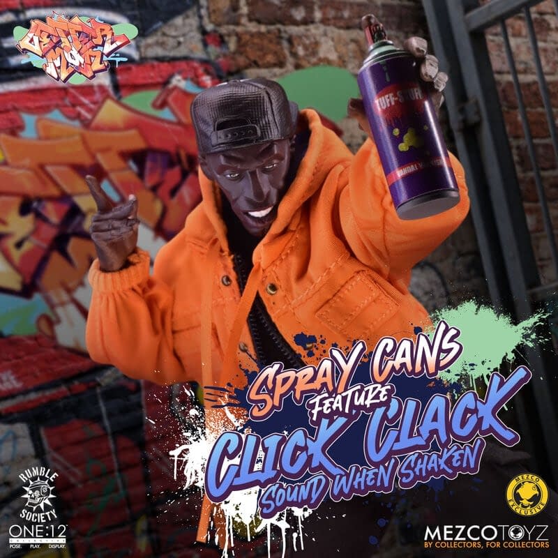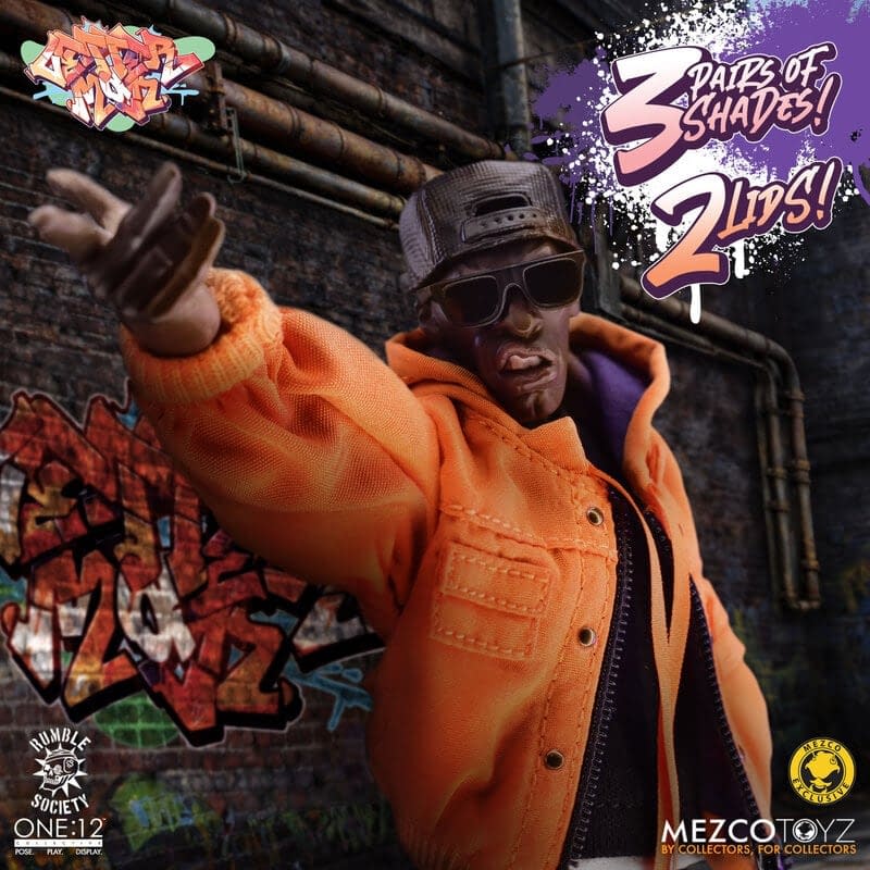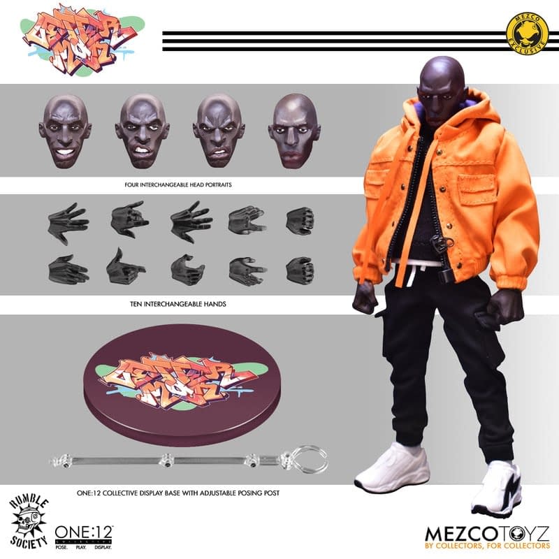 Hoodz: Letterman is taking back the streets with a brand new One:12 Collective figure that is ready for some action. This figure captures the stylings of the Hoodz series for a new generation with an impressive new 6" figure that has fabric clothing, swappable kicks, and so much more. Mezco Toyz has given Letterman four interchangeable heads, ten extra hands, spray paint cans, shades, extra hats, a crowbar, and a messenger bag. This figure is ready to join Vapor and kick off the return of the Hoodz line for $116, and fans can join the waitlist now.